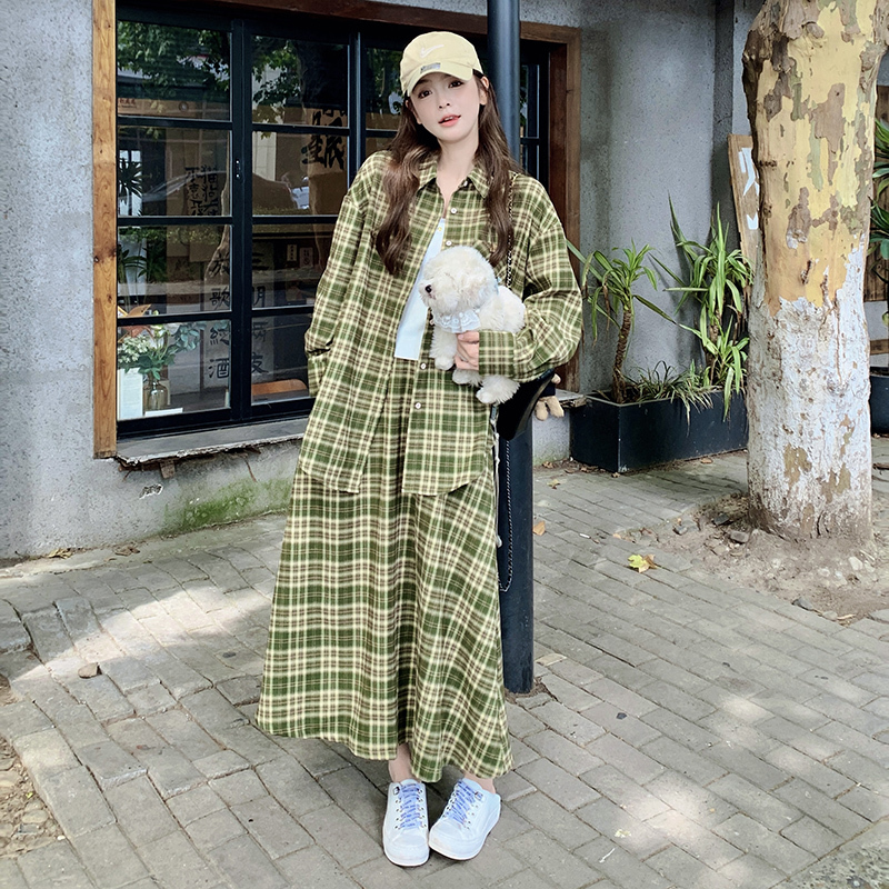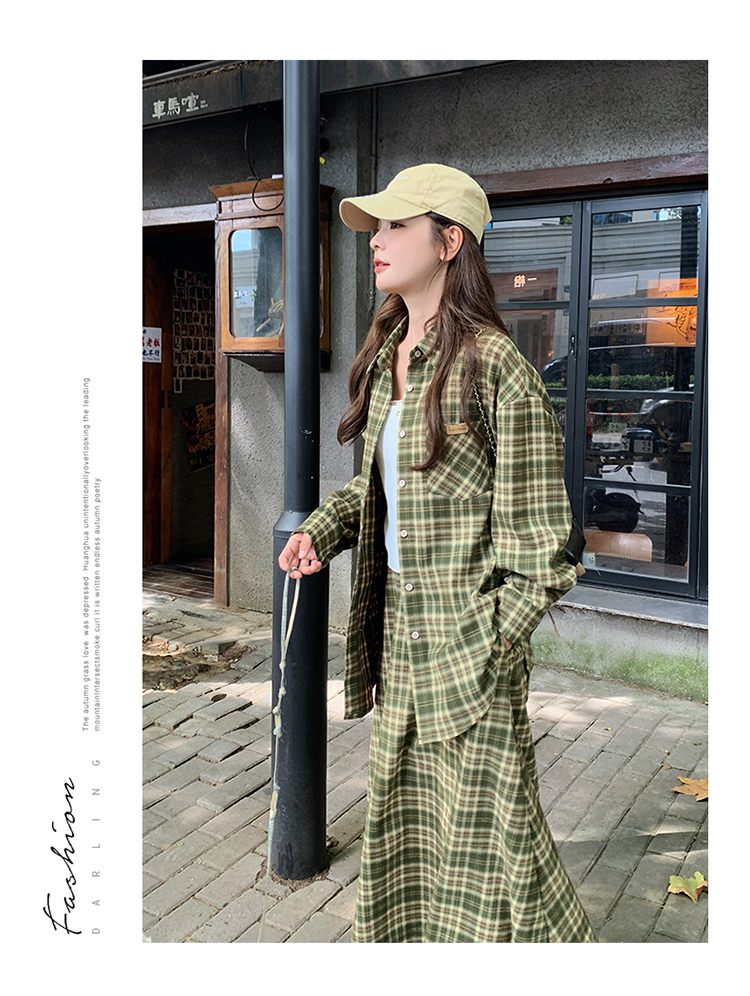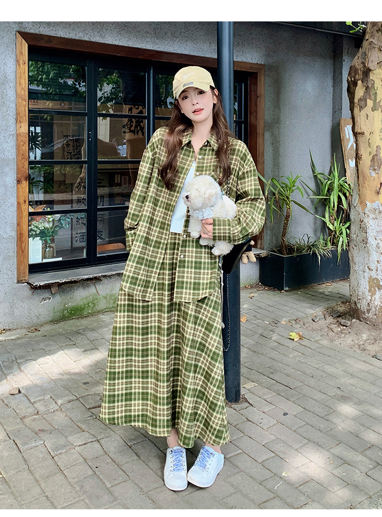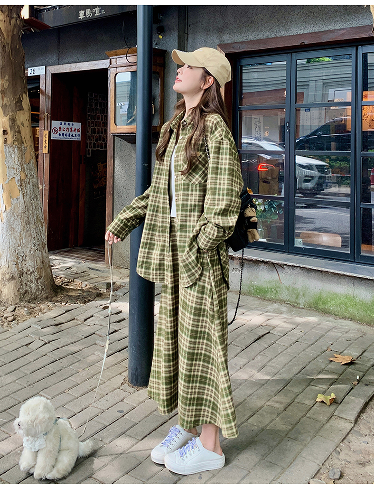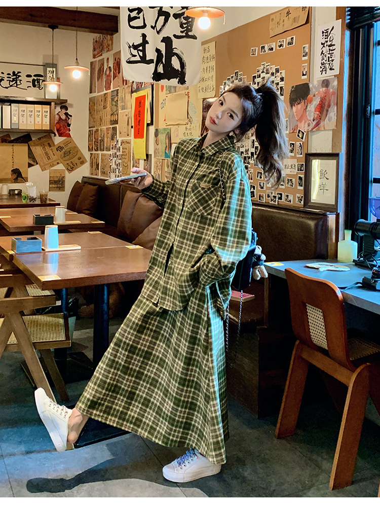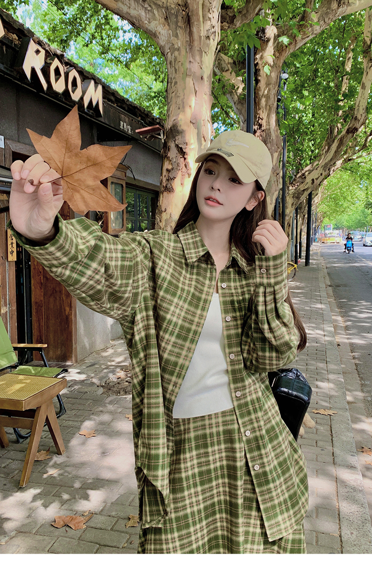 獨家訂製│2件式 韓系甜酷風格紋襯衫+A字裙(10H6993)