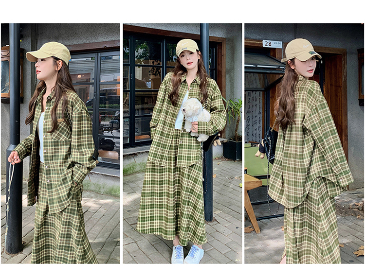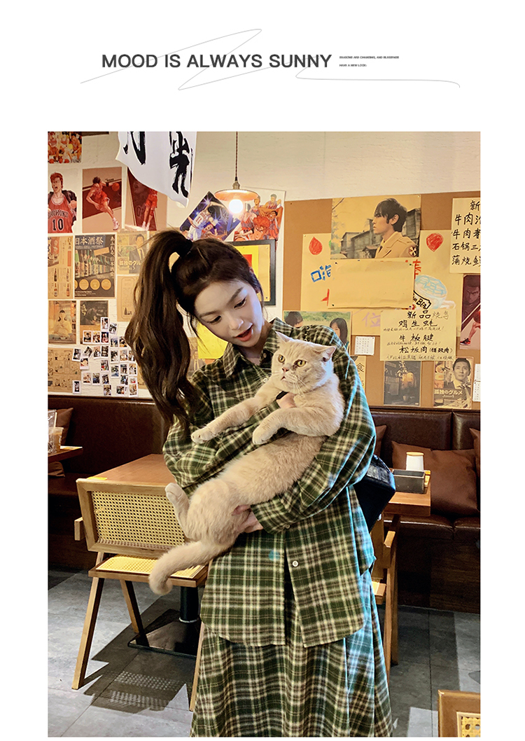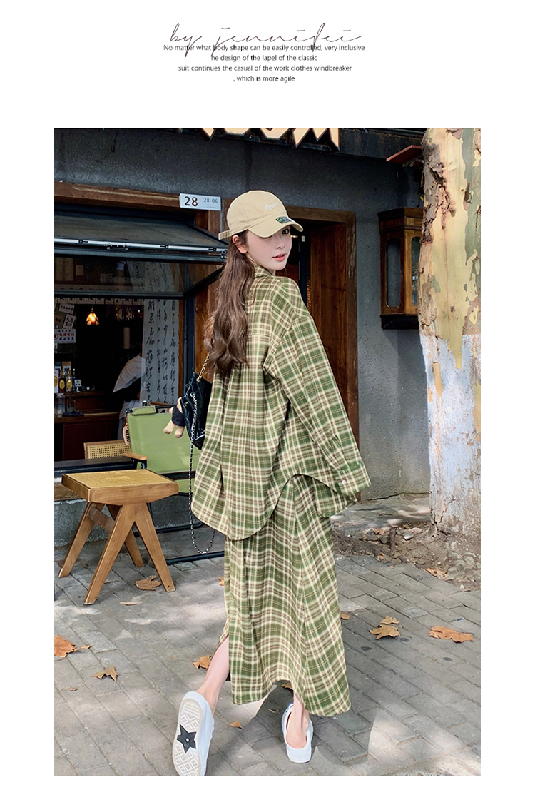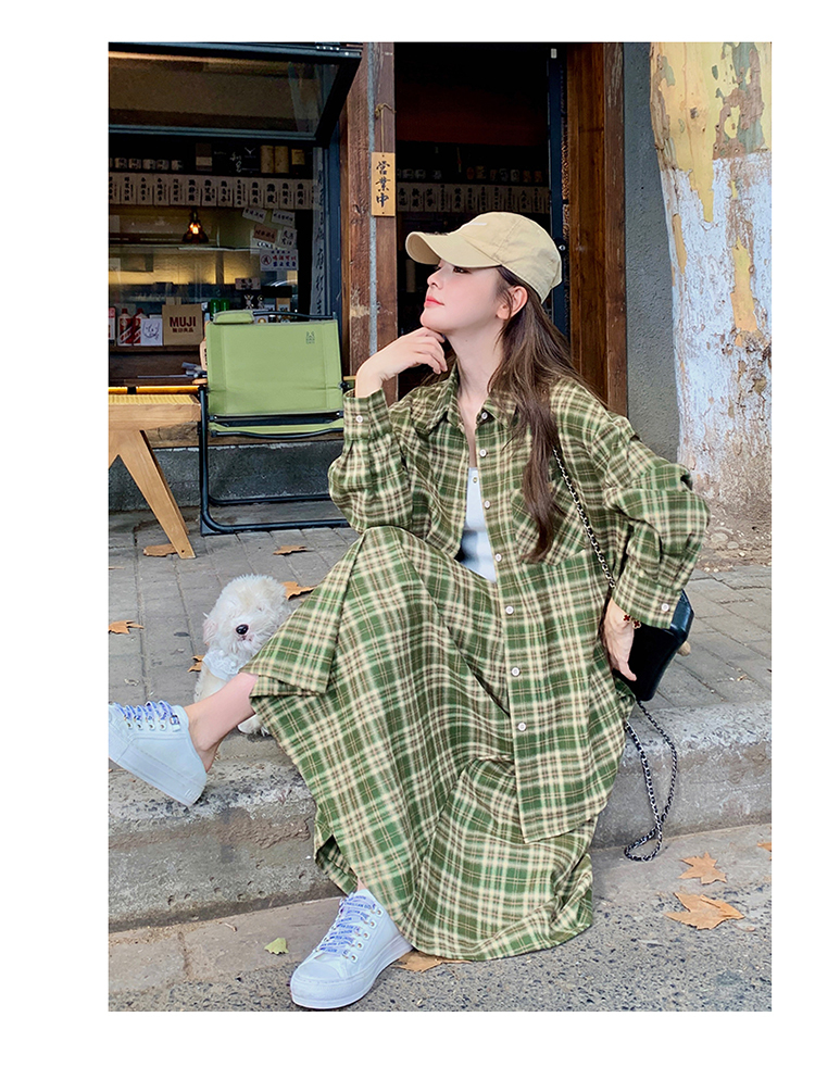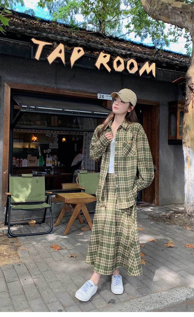 獨家訂製│2件式 韓系甜酷風格紋襯衫+A字裙(10H6993)