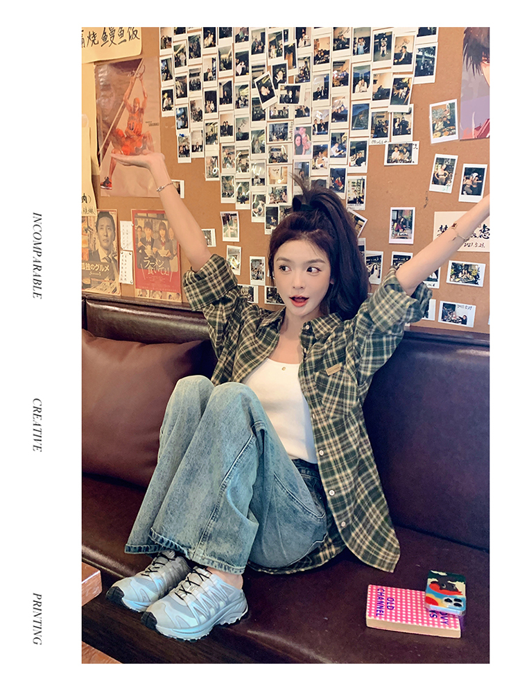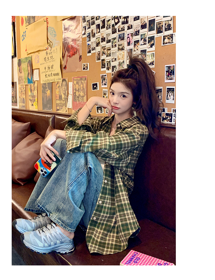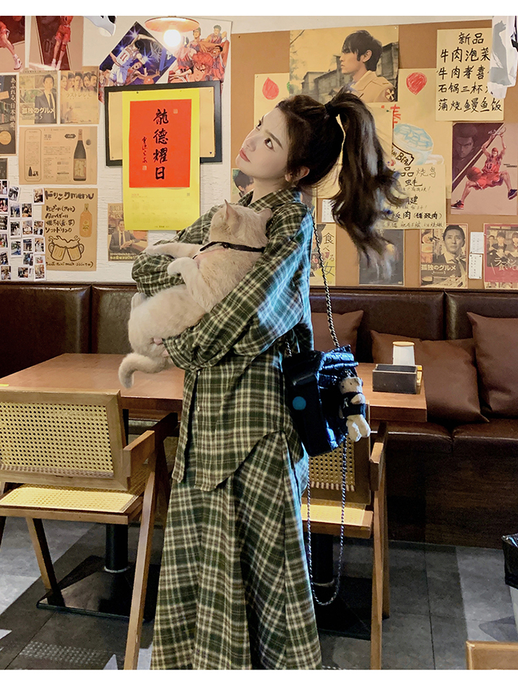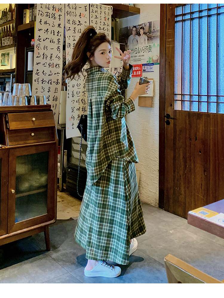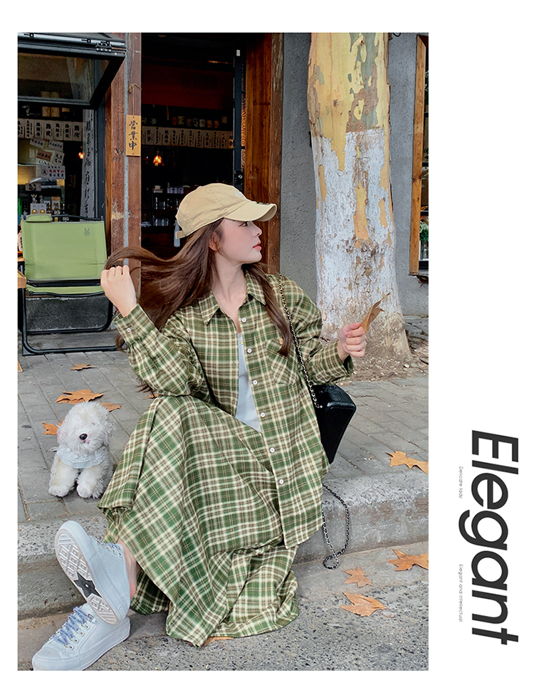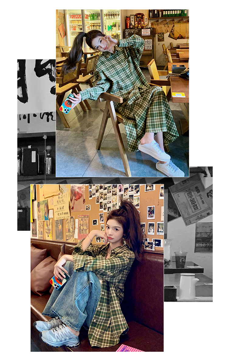 獨家訂製│2件式 韓系甜酷風格紋襯衫+A字裙(10H6993)