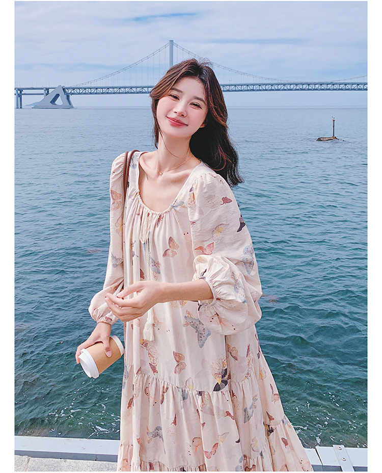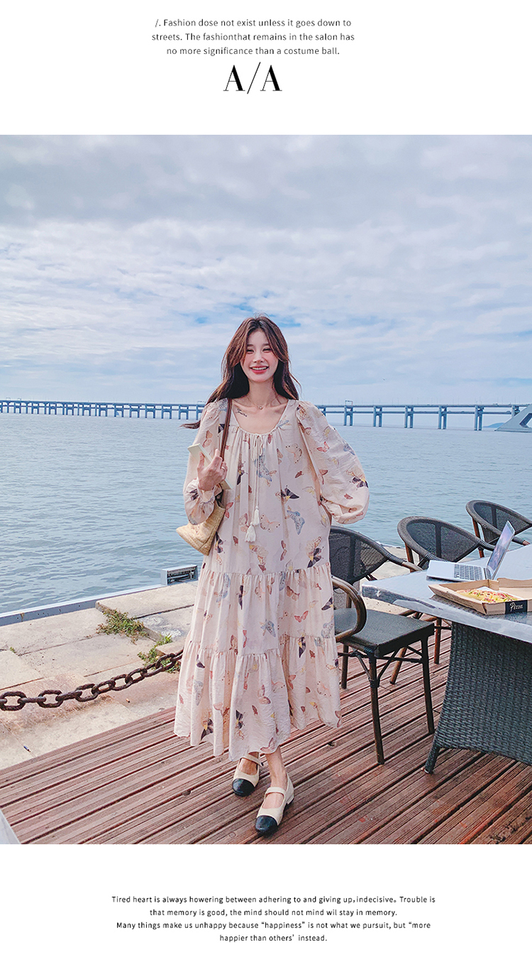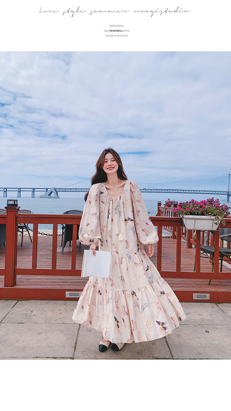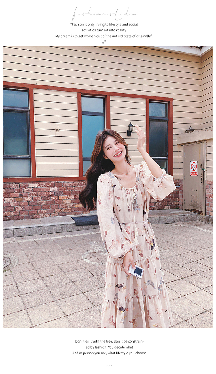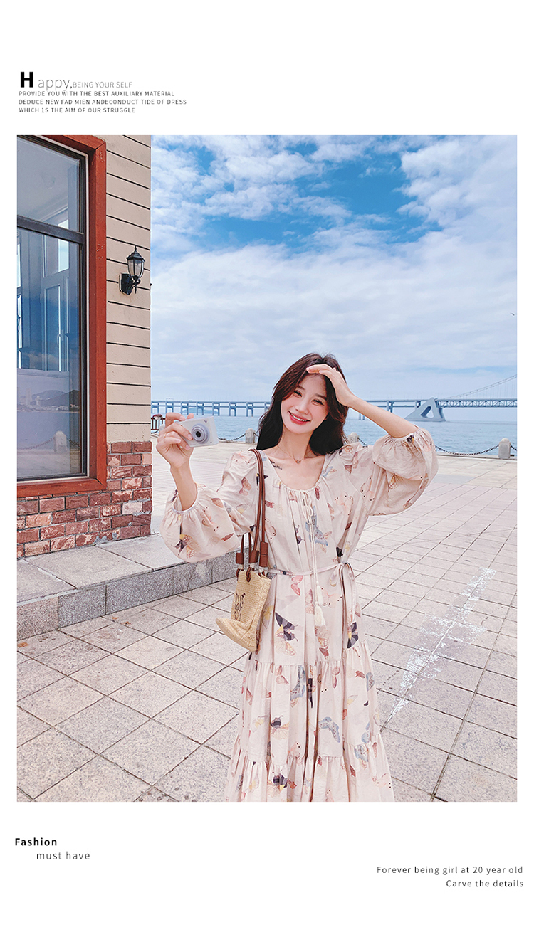 獨家訂製│韓系氣質感綁帶印花連衣裙(10H7002)