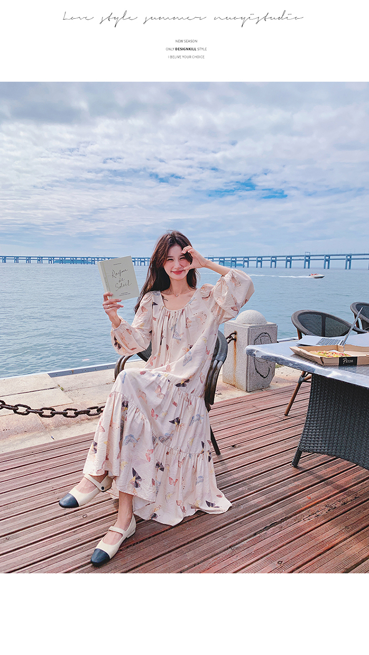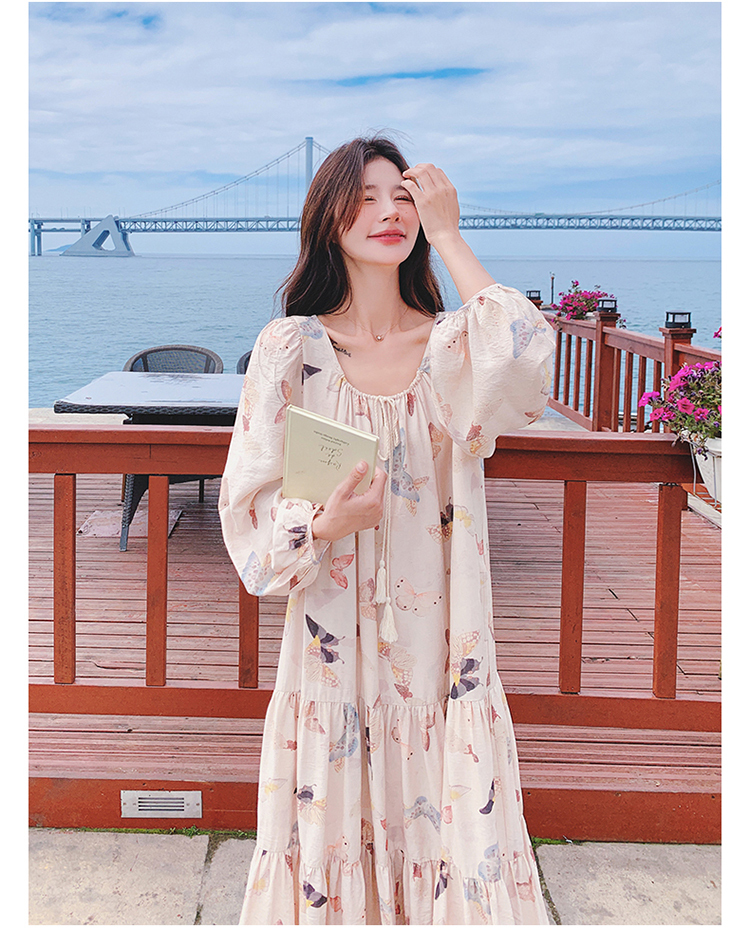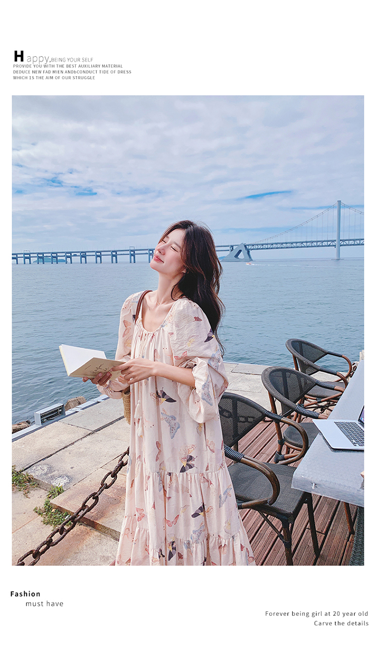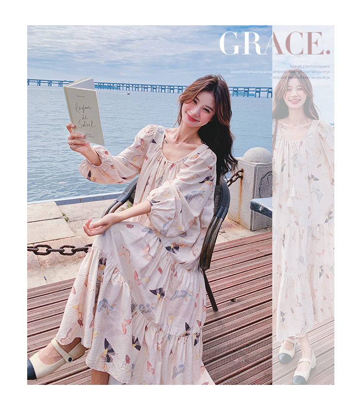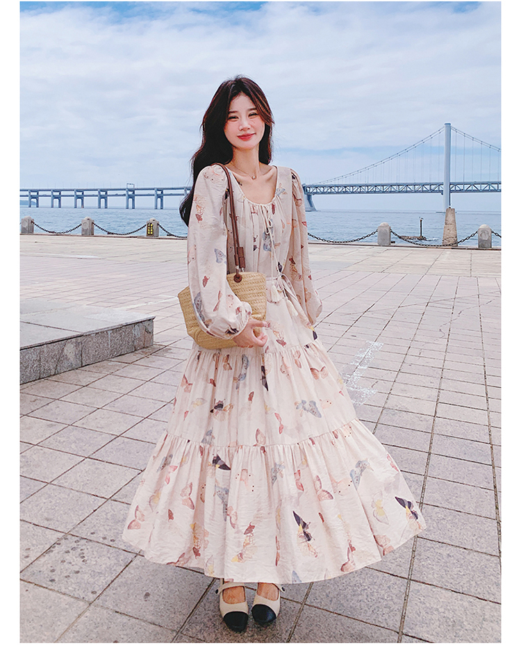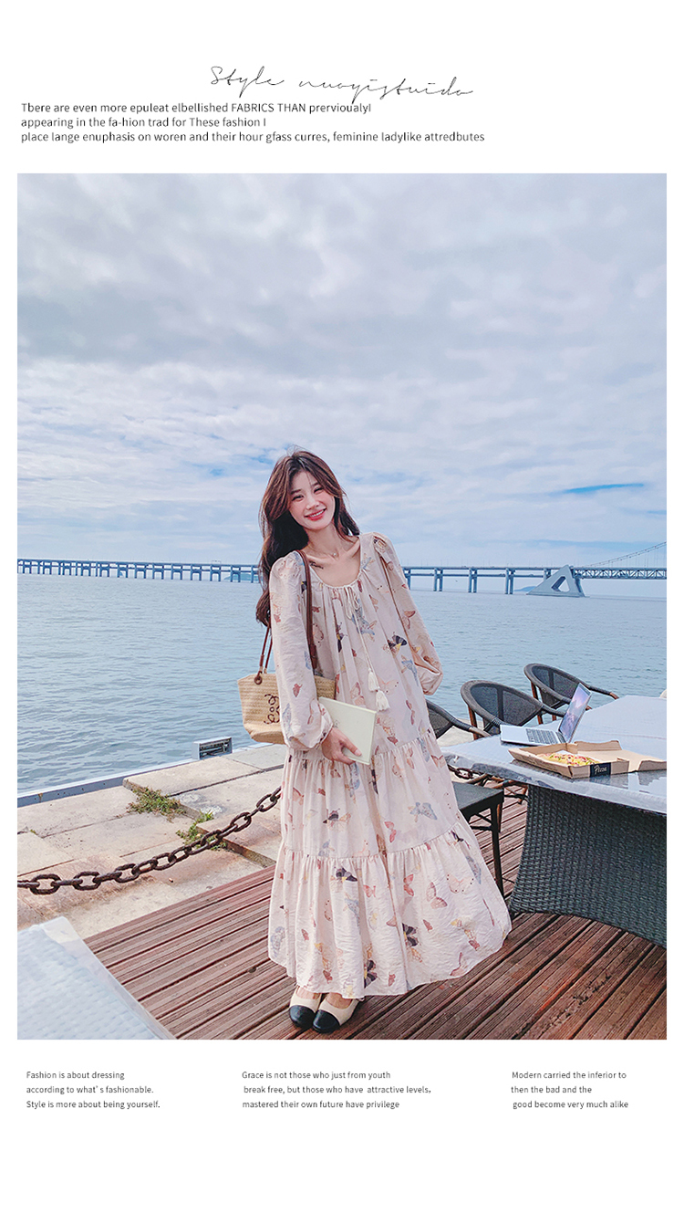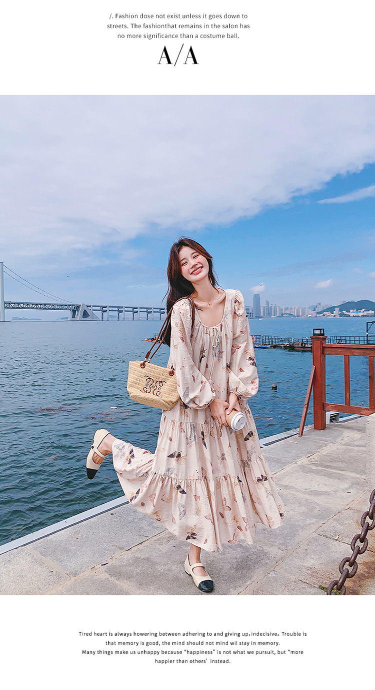 獨家訂製│韓系氣質感綁帶印花連衣裙(10H7002)