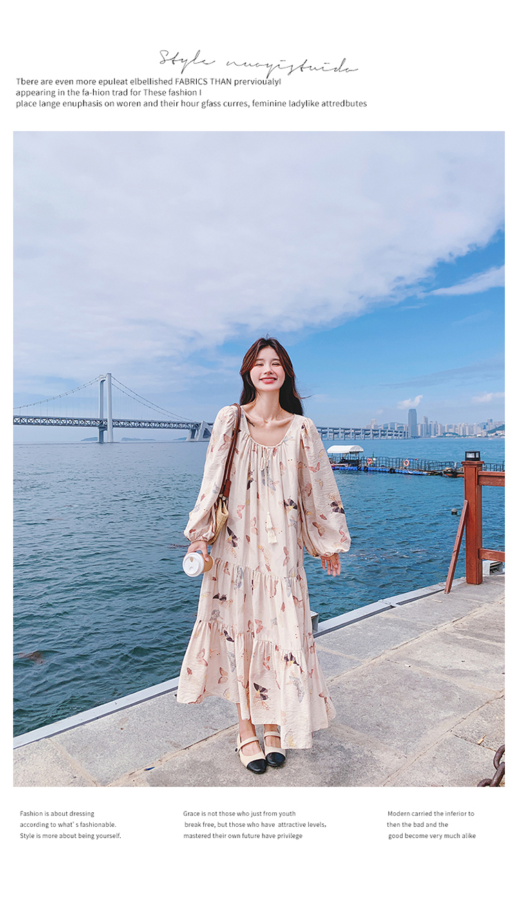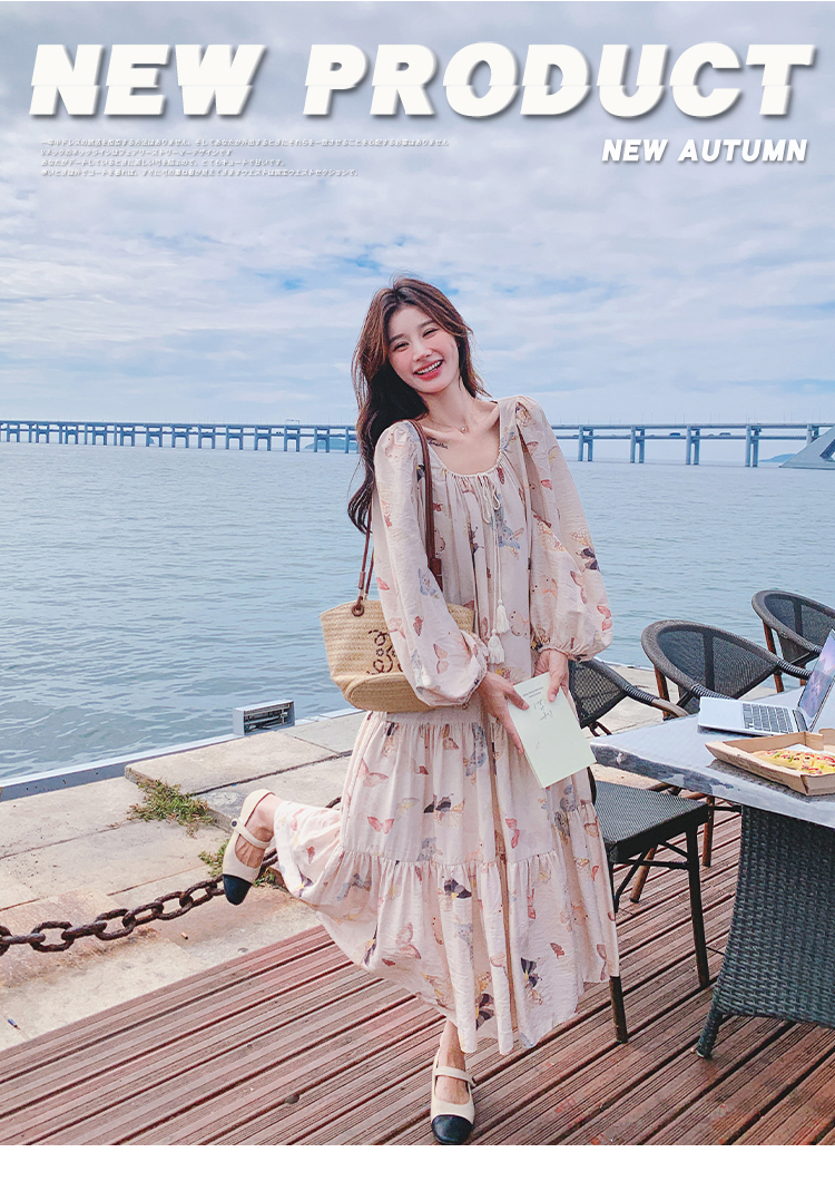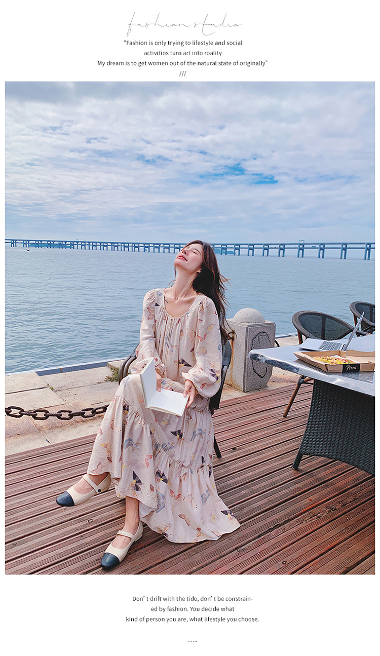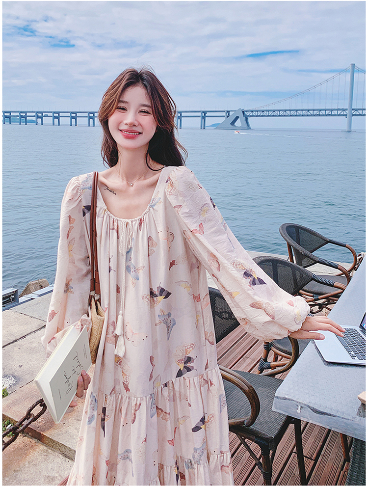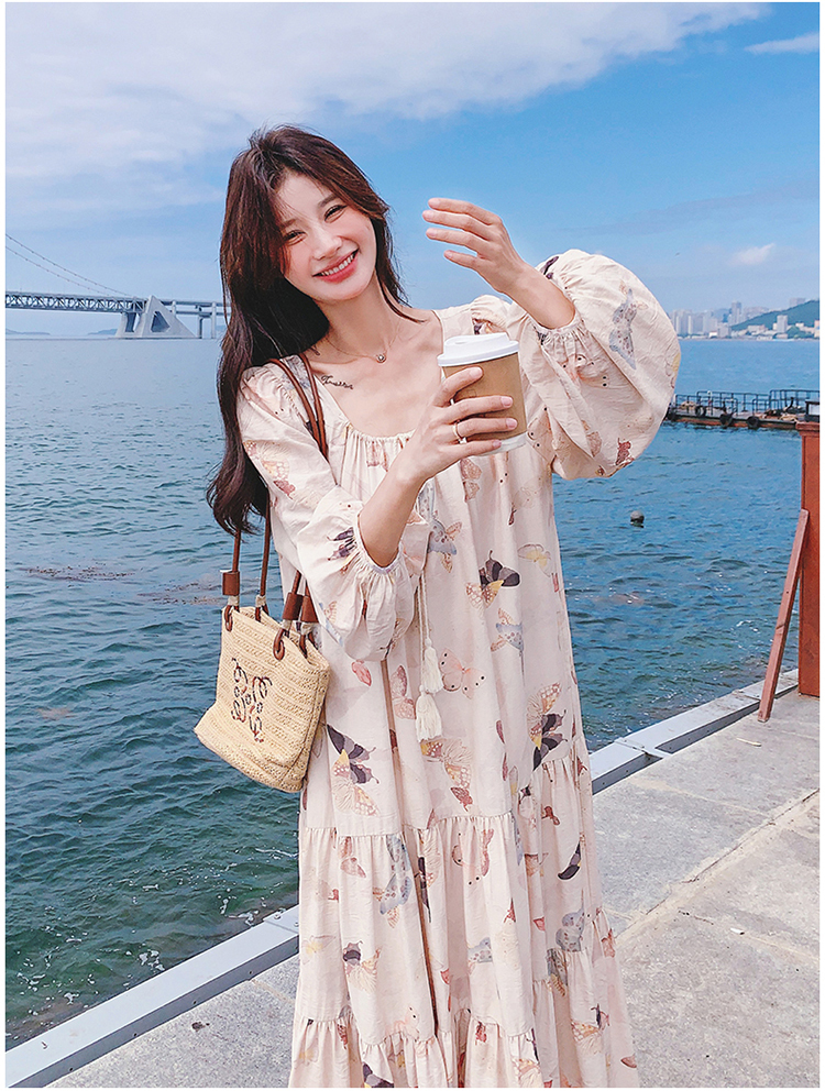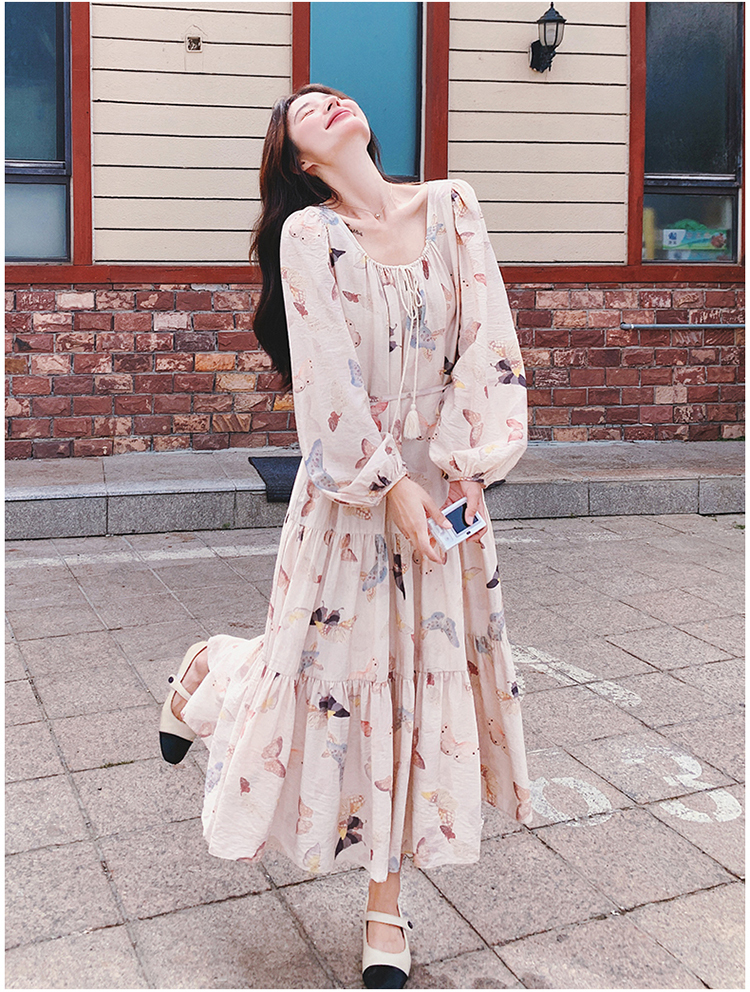 獨家訂製│韓系氣質感綁帶印花連衣裙(10H7002)