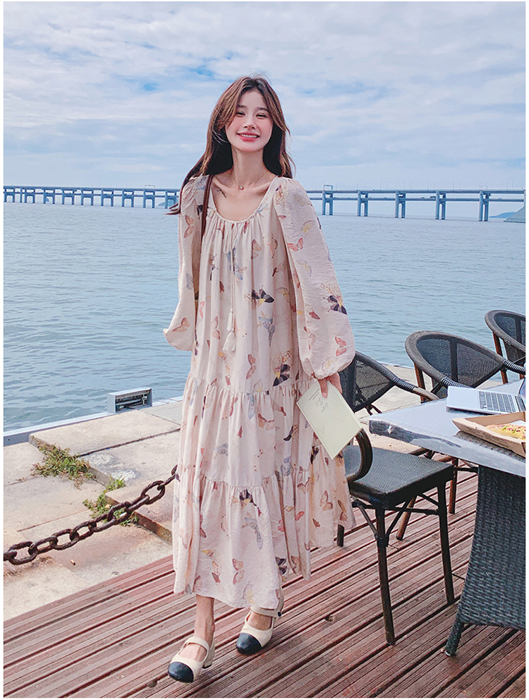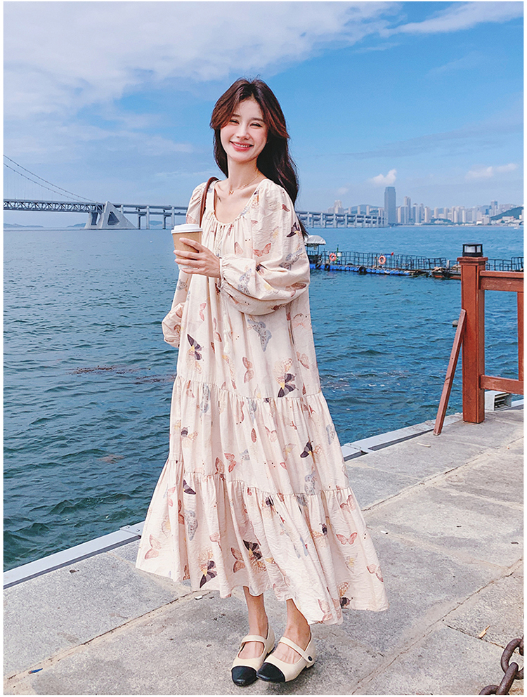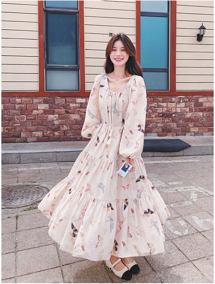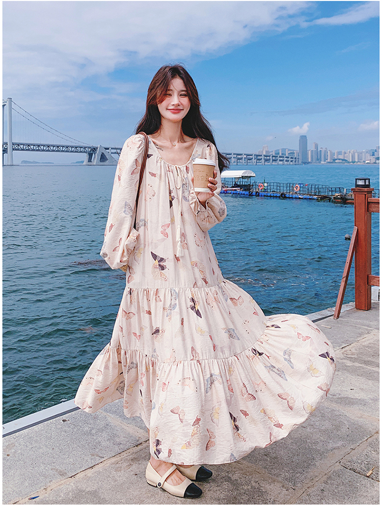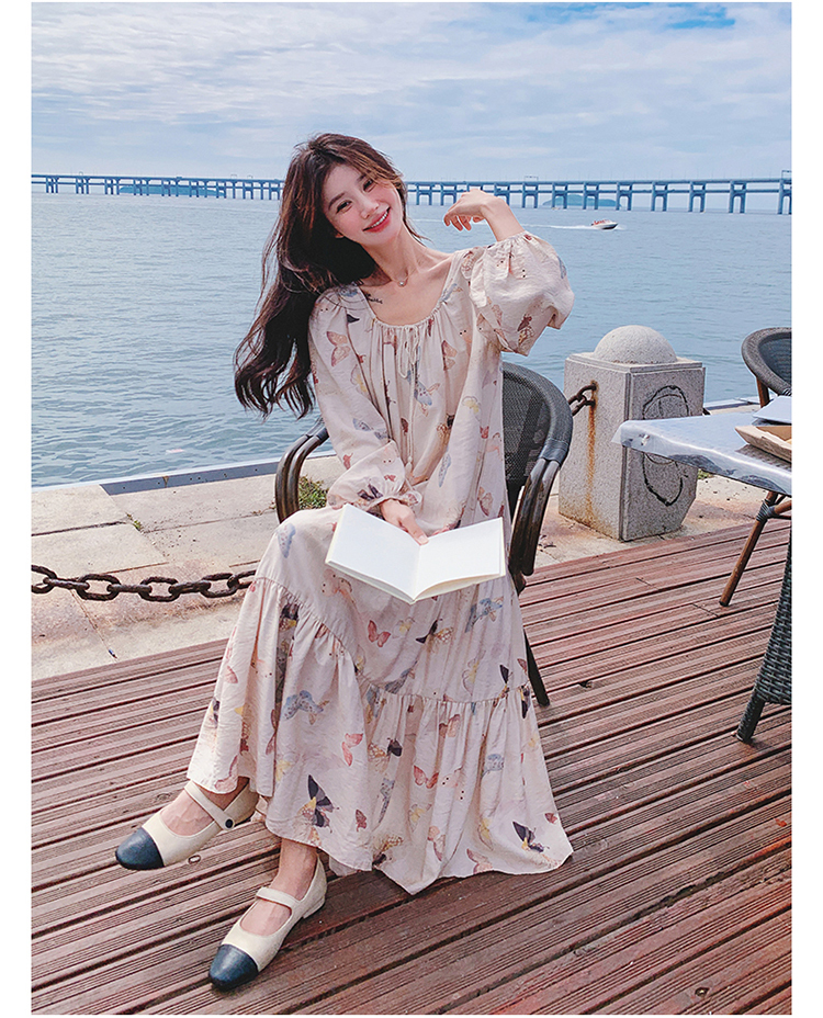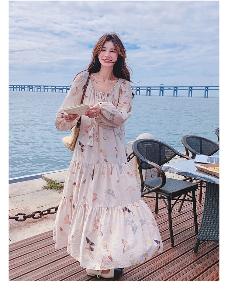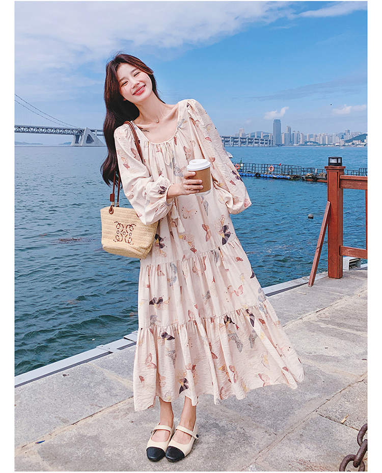 獨家訂製│韓系氣質感綁帶印花連衣裙(10H7002)