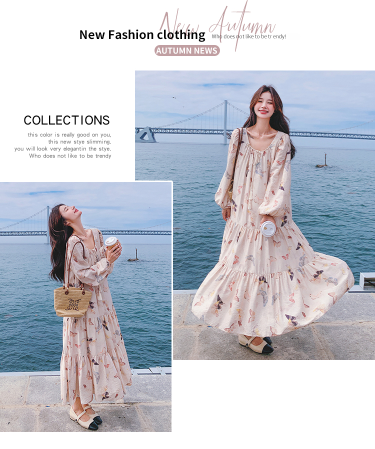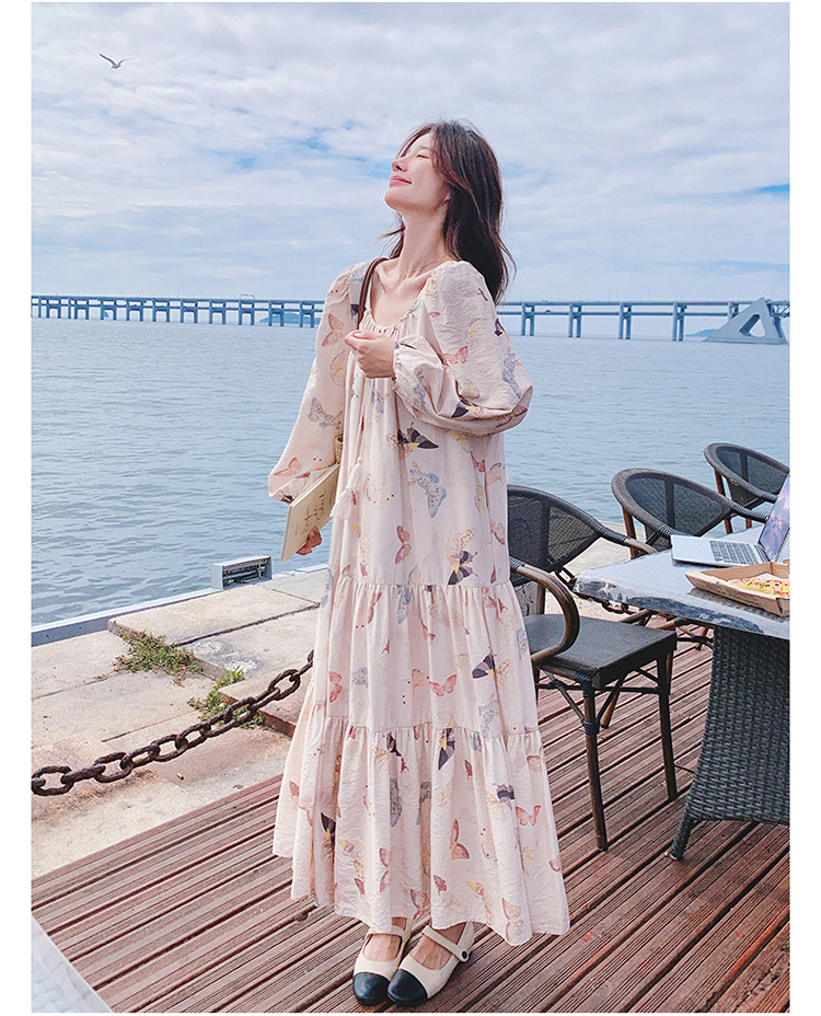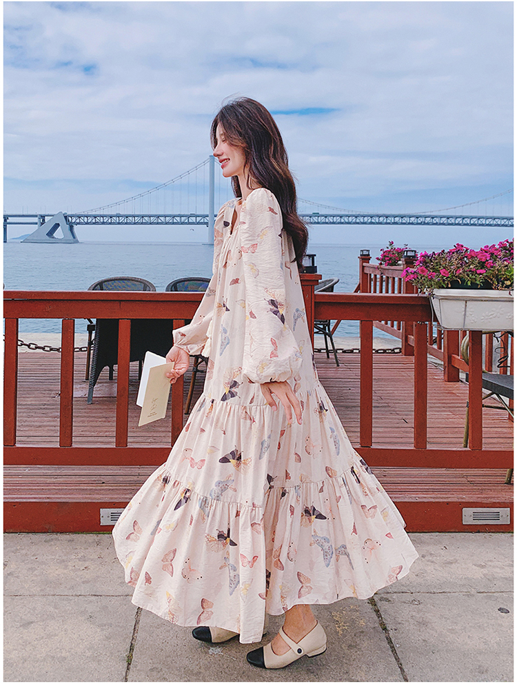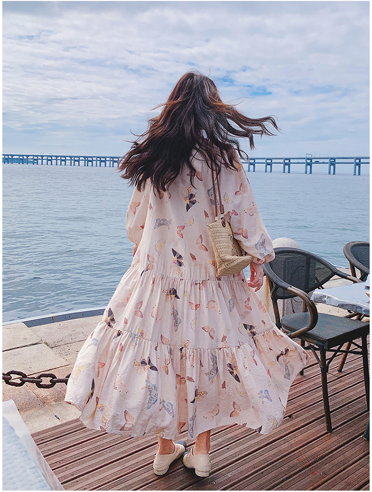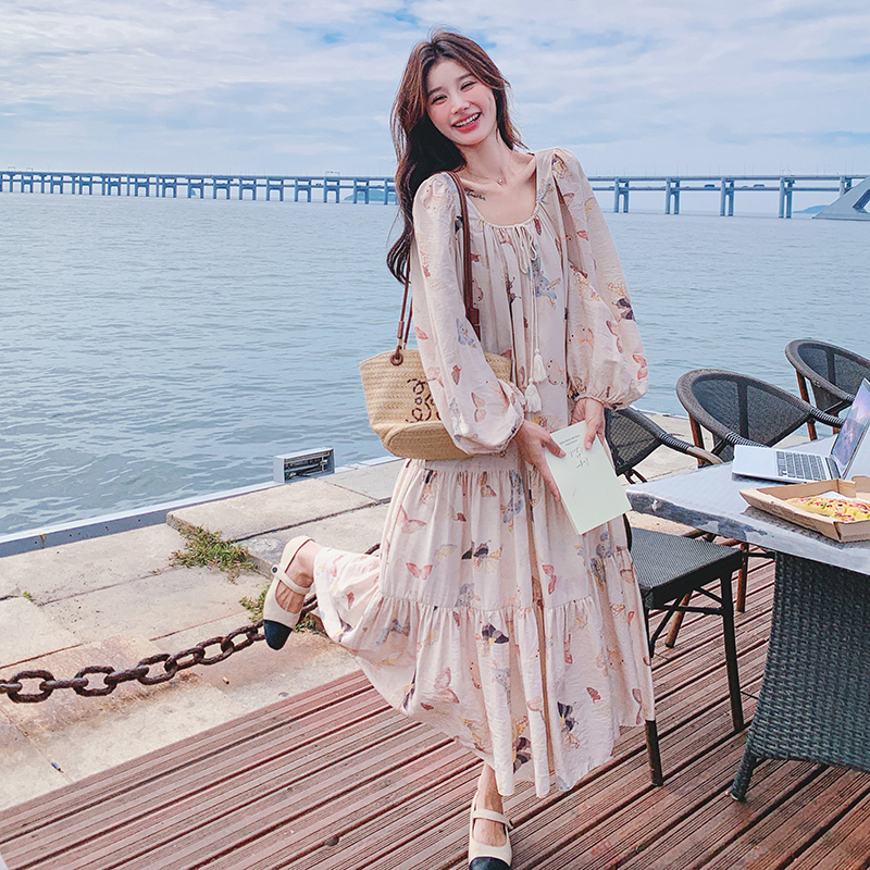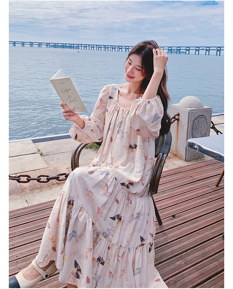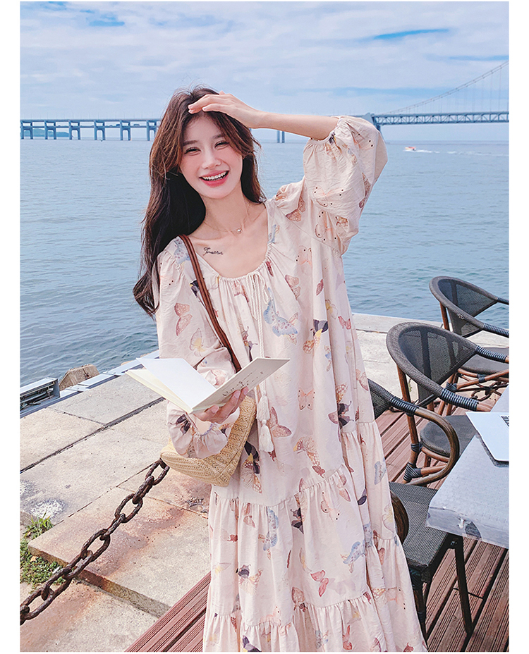 獨家訂製│韓系氣質感綁帶印花連衣裙(10H7002)
