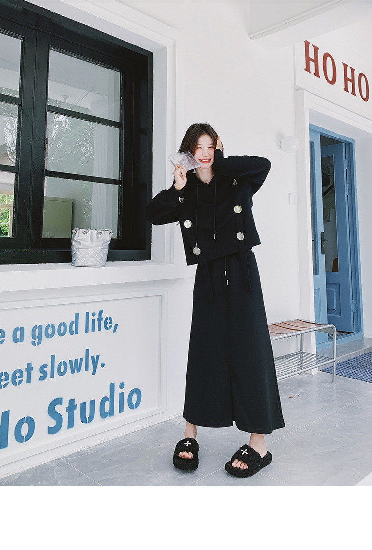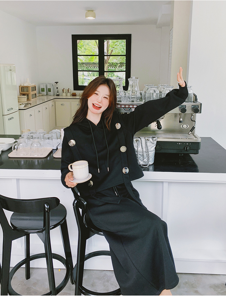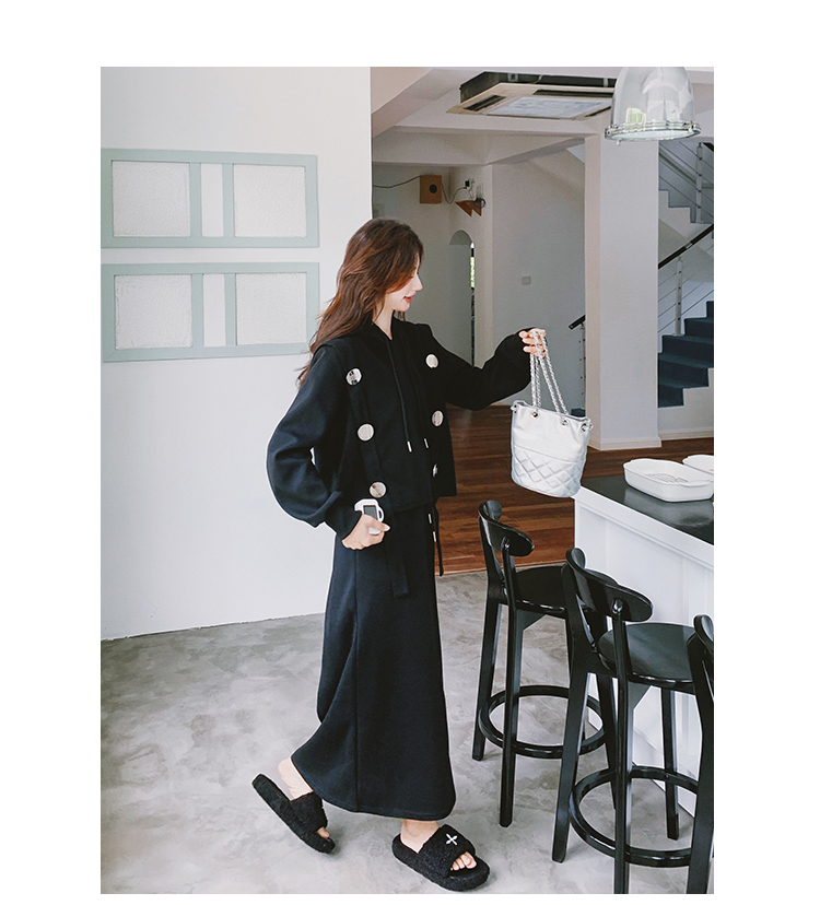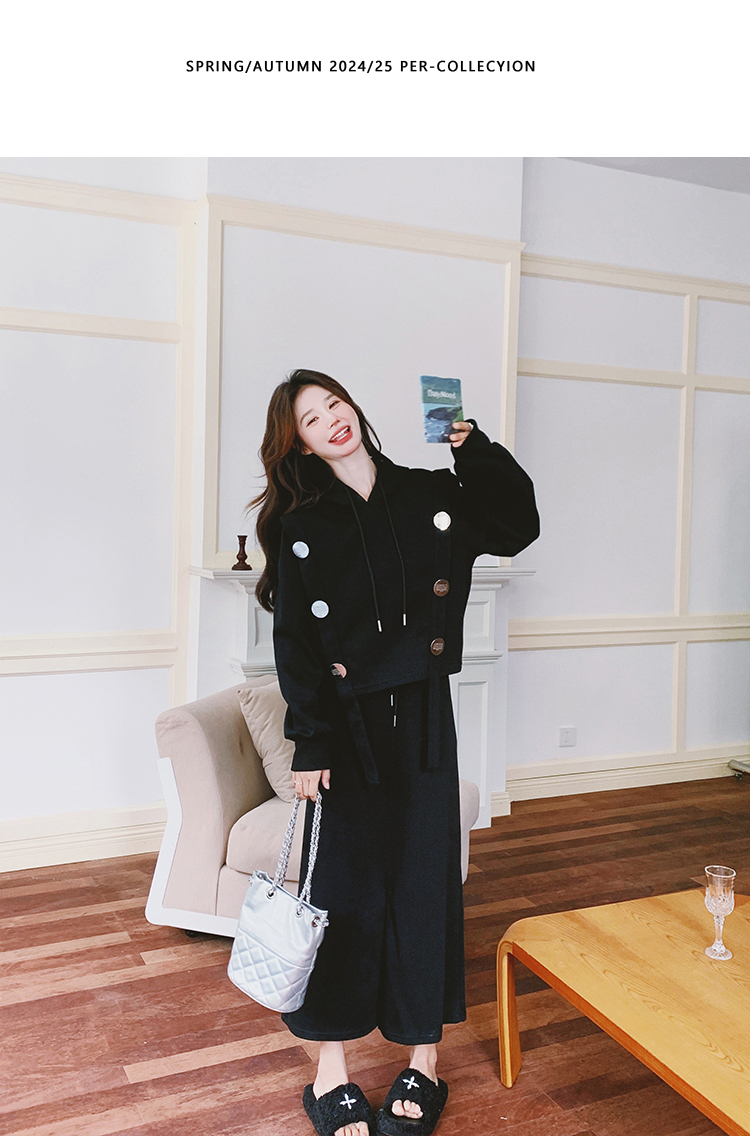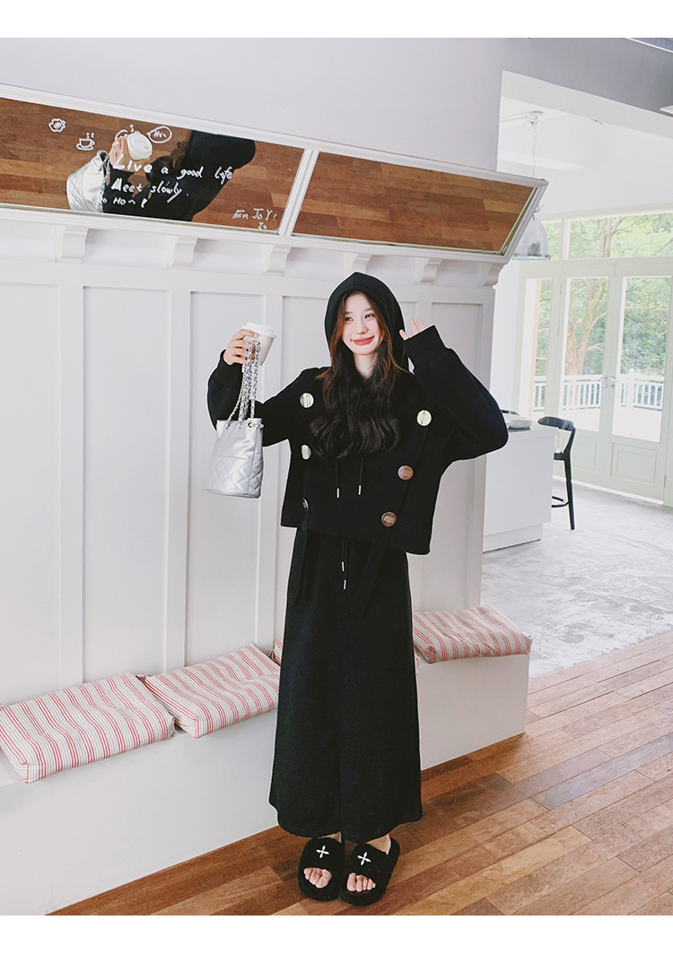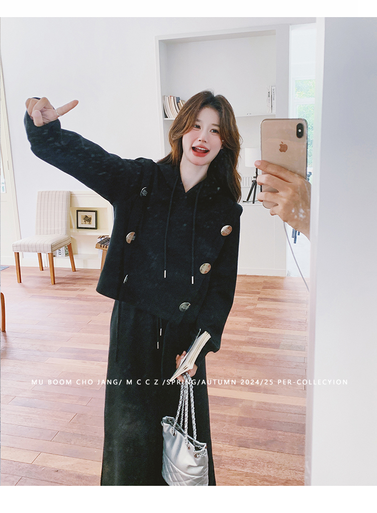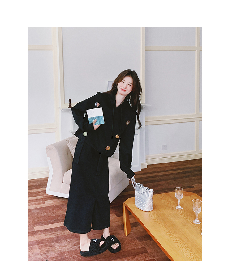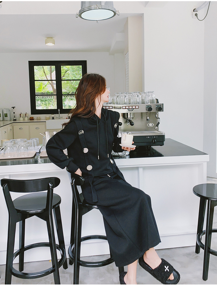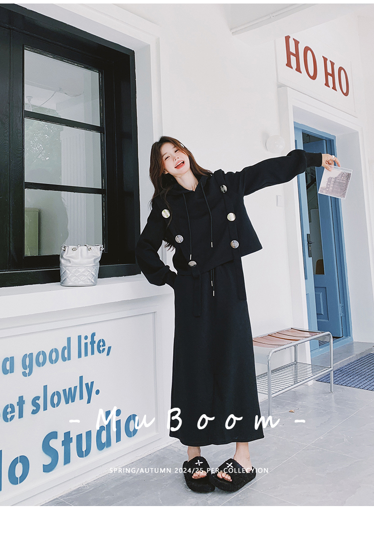 獨家訂製│2件式 韓系甜酷風連帽飄帶上衣+A字裙(10H7007)