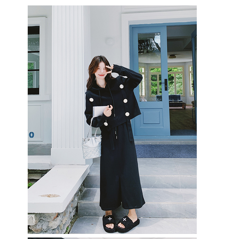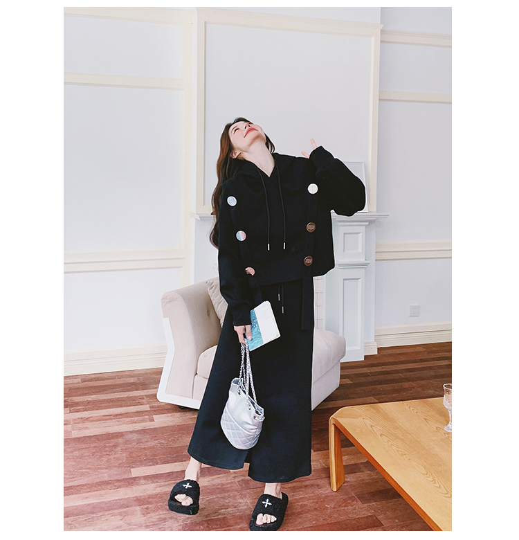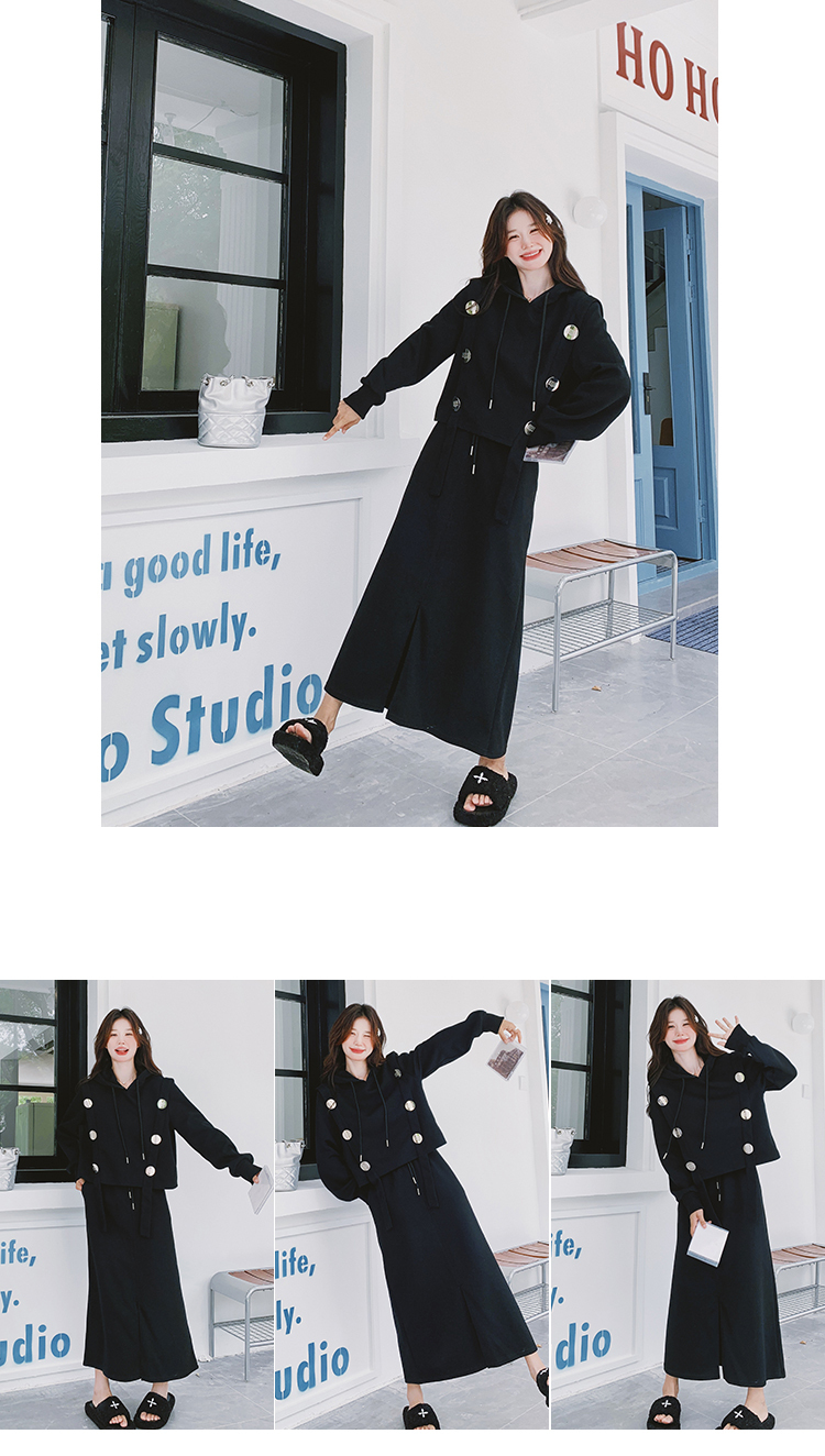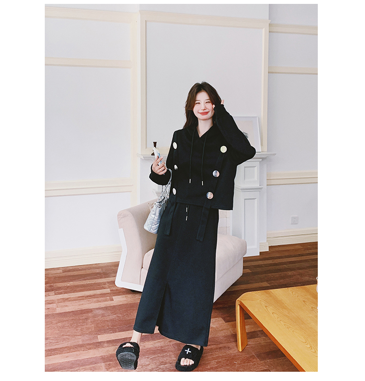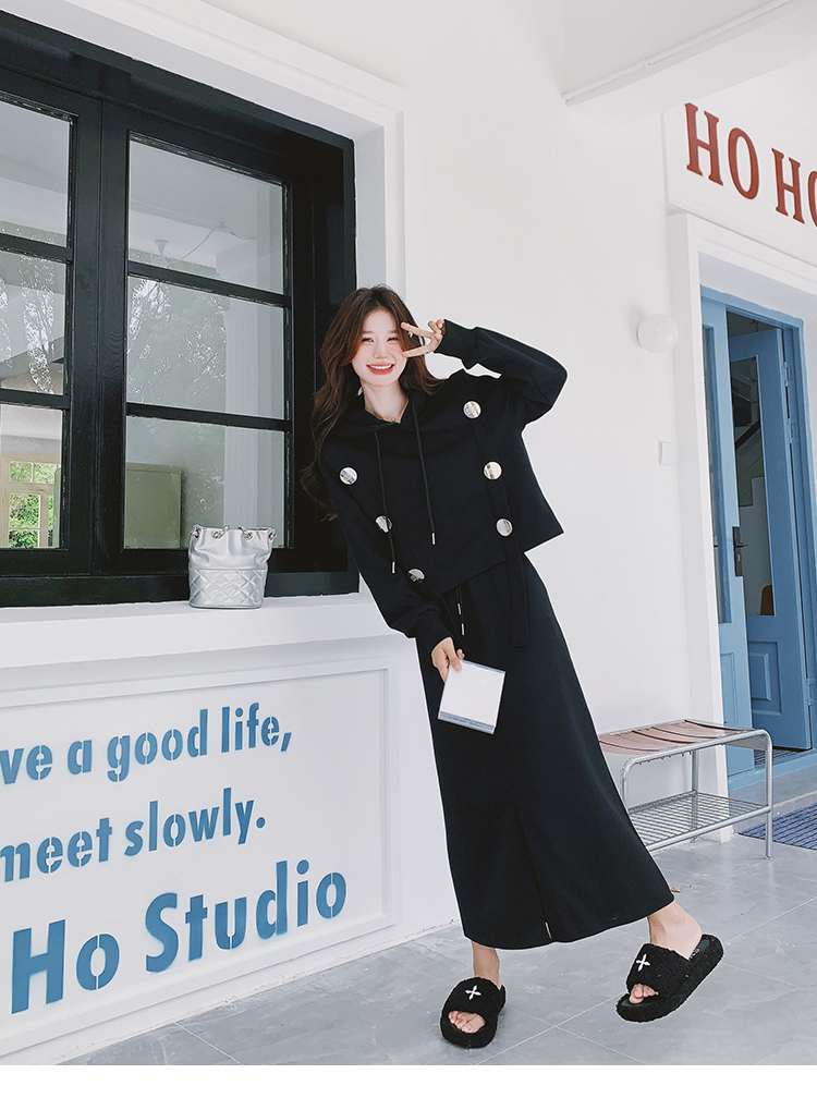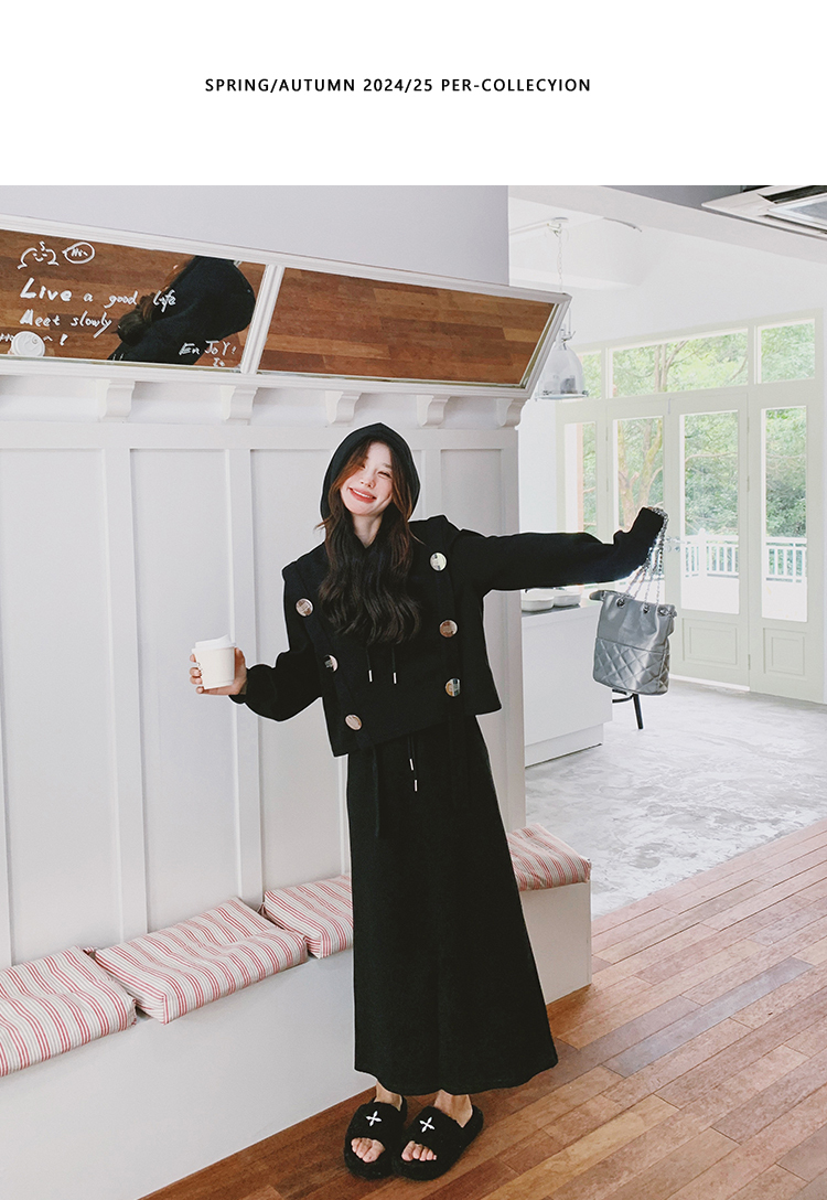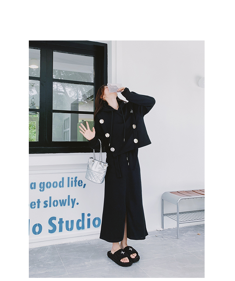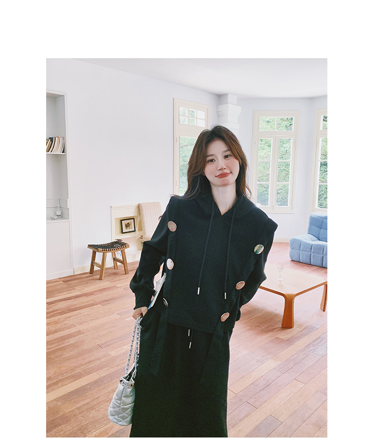 獨家訂製│2件式 韓系甜酷風連帽飄帶上衣+A字裙(10H7007)