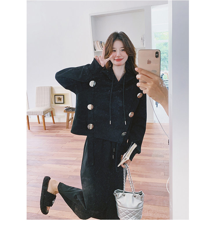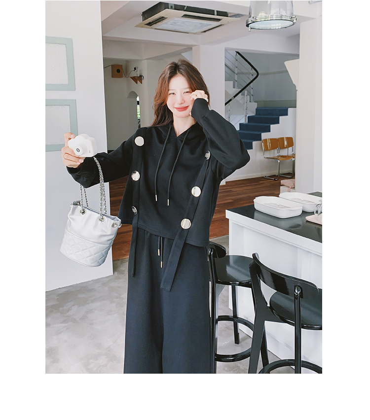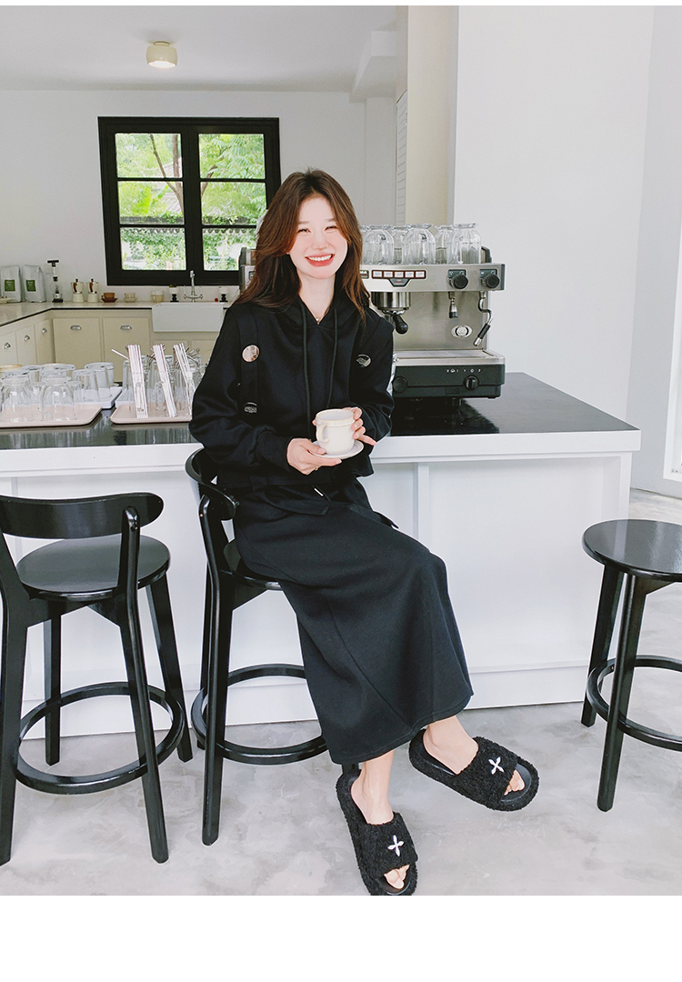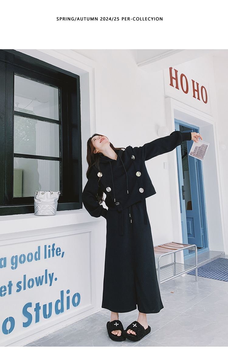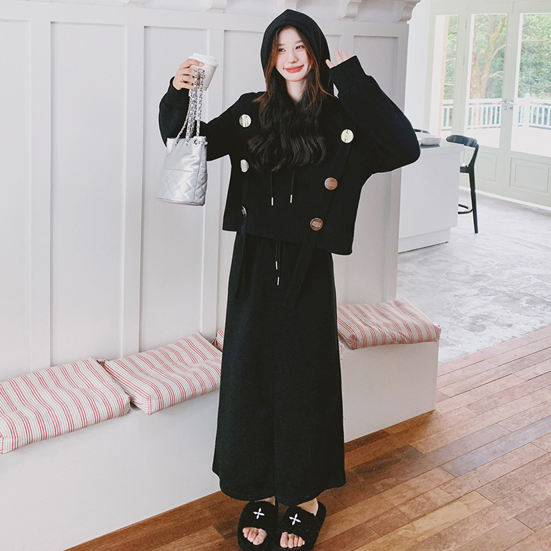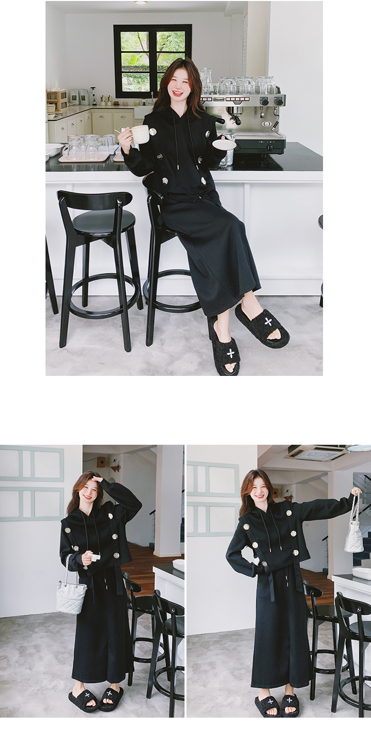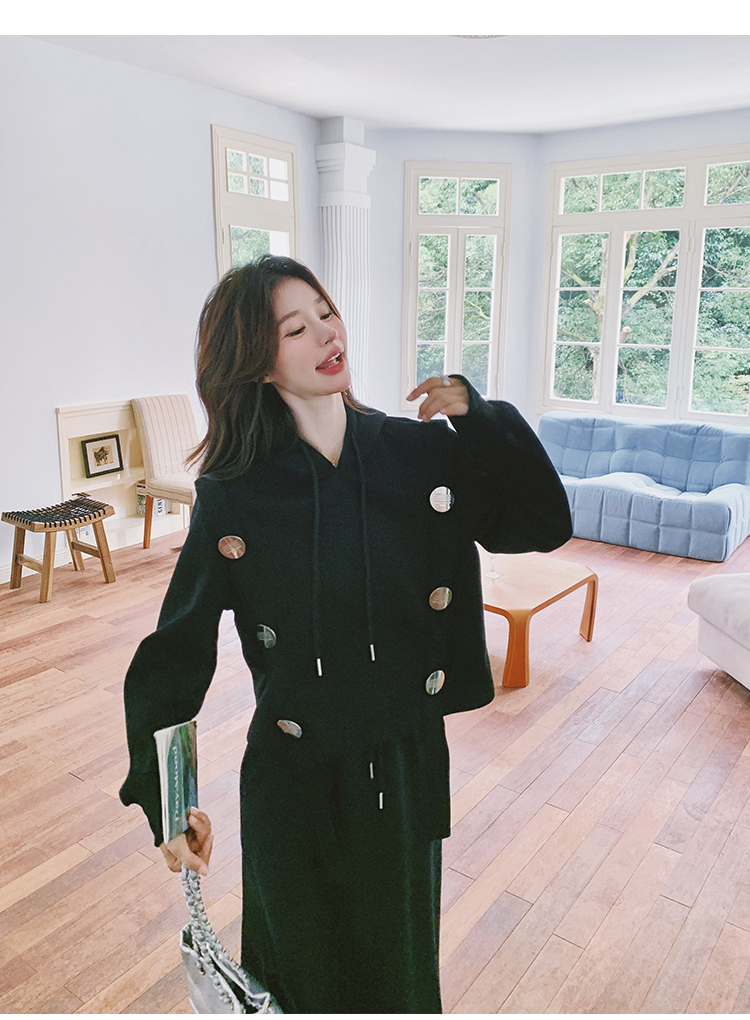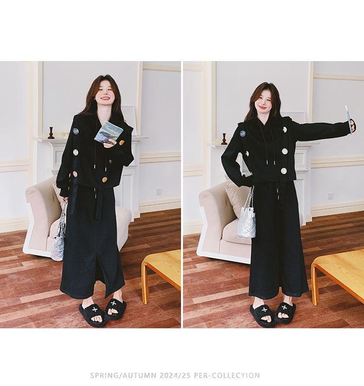 獨家訂製│2件式 韓系甜酷風連帽飄帶上衣+A字裙(10H7007)