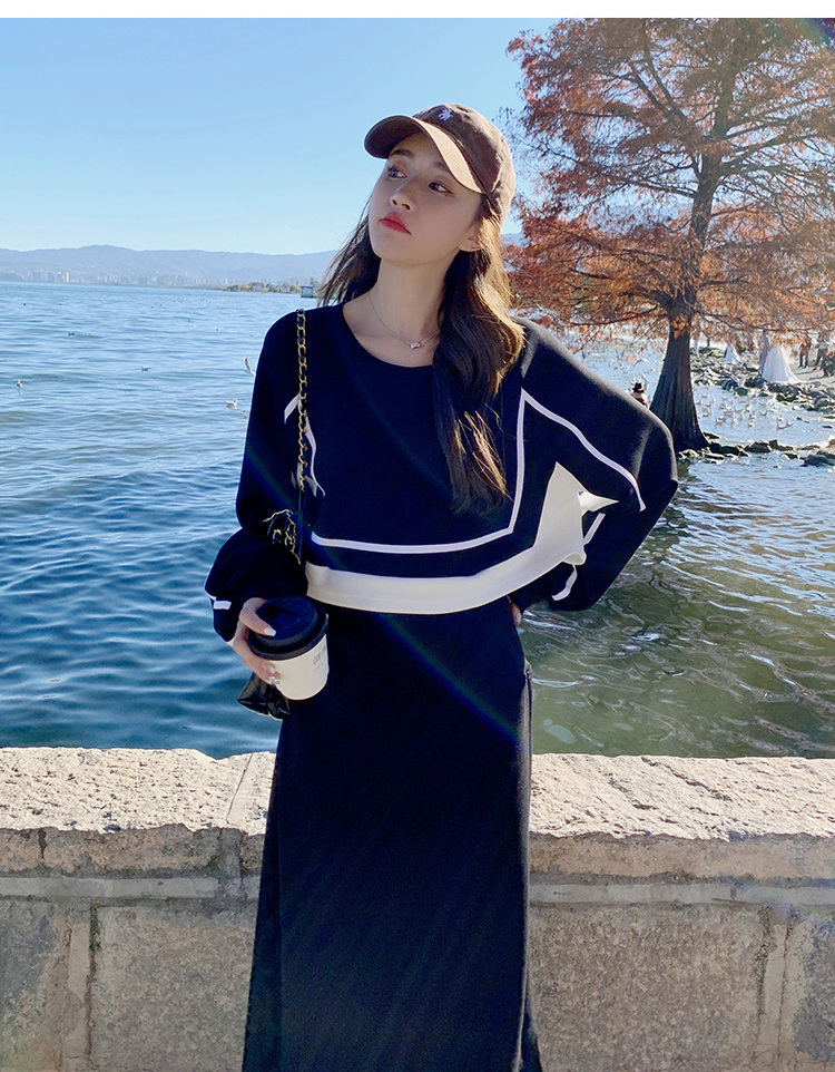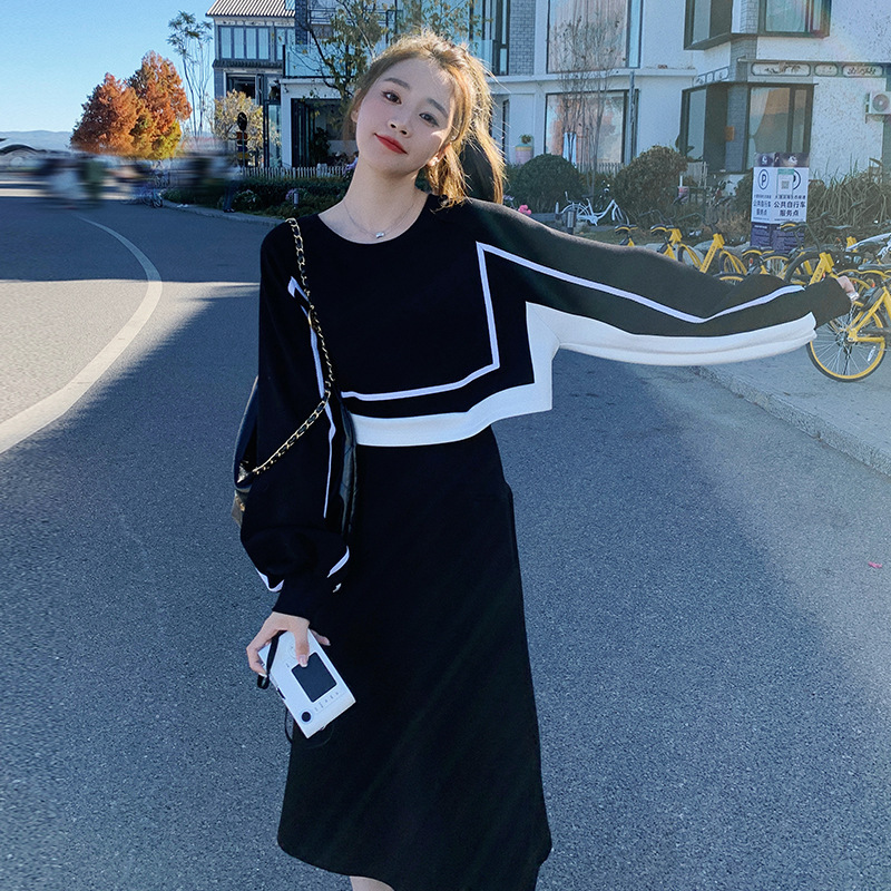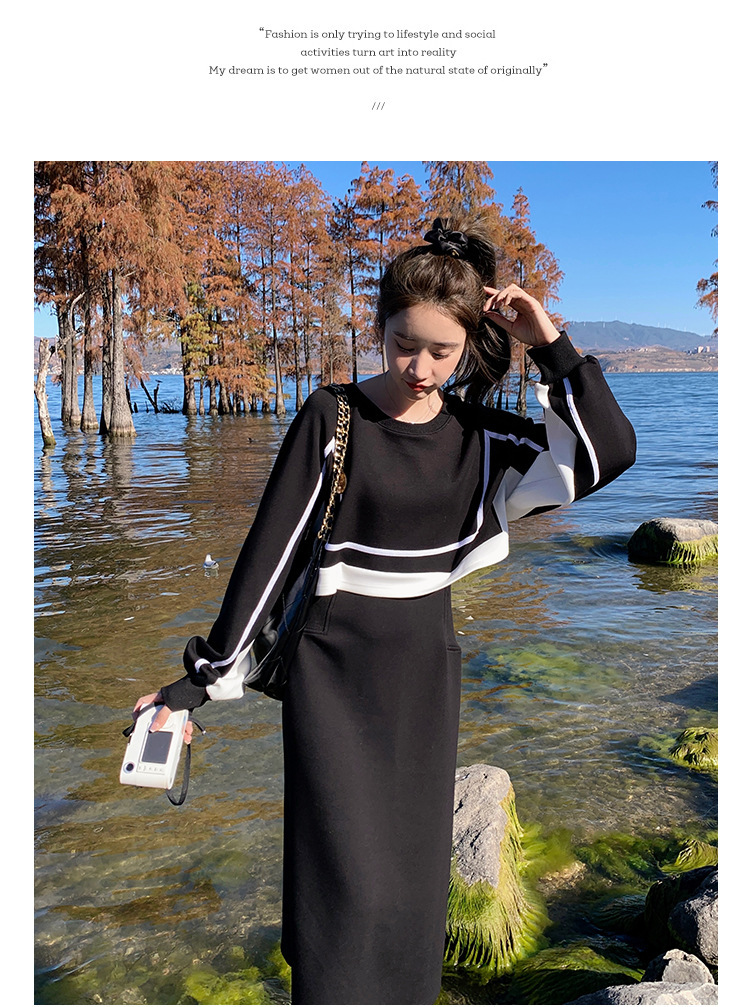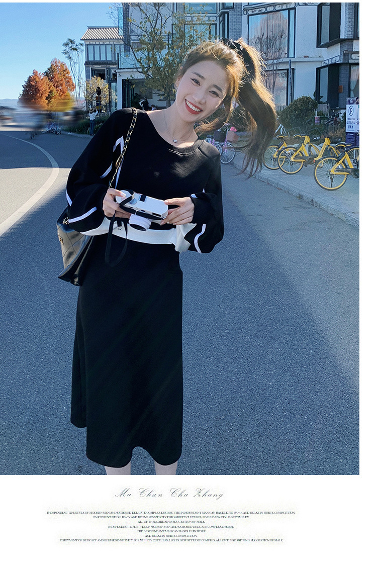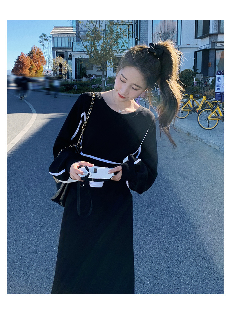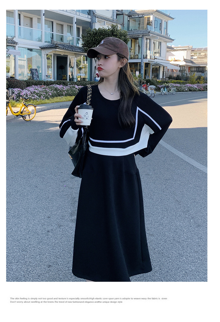 獨家訂製│假2件連衣裙 韓系休閒感拼接式撞色連衣裙(10H7014)