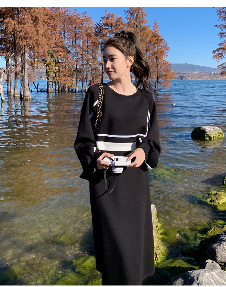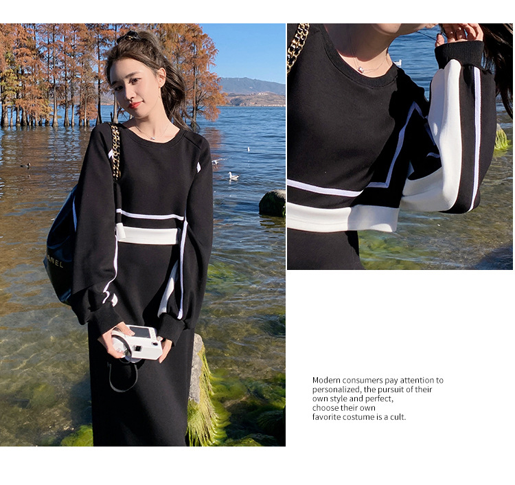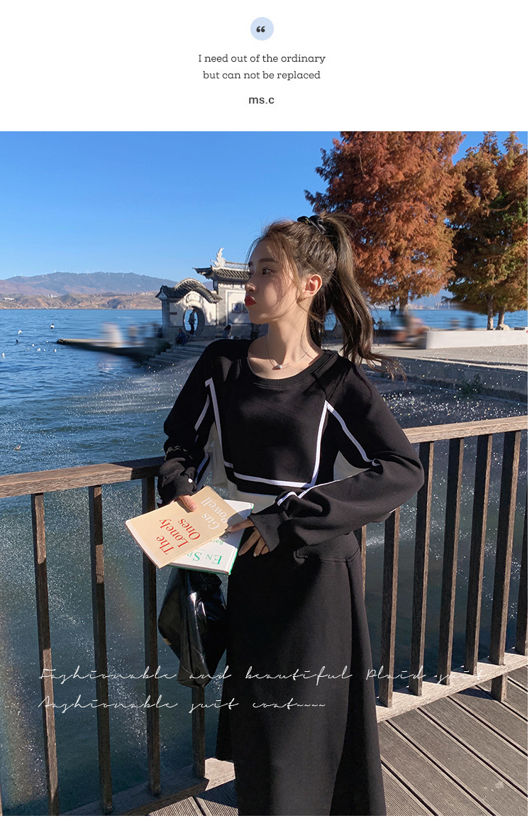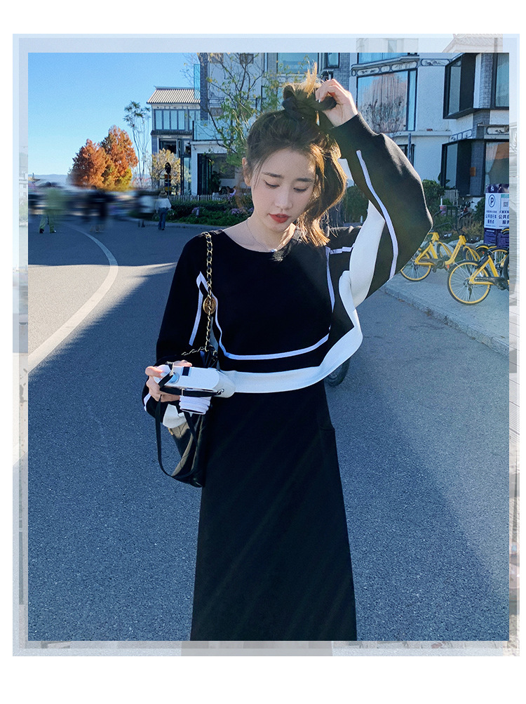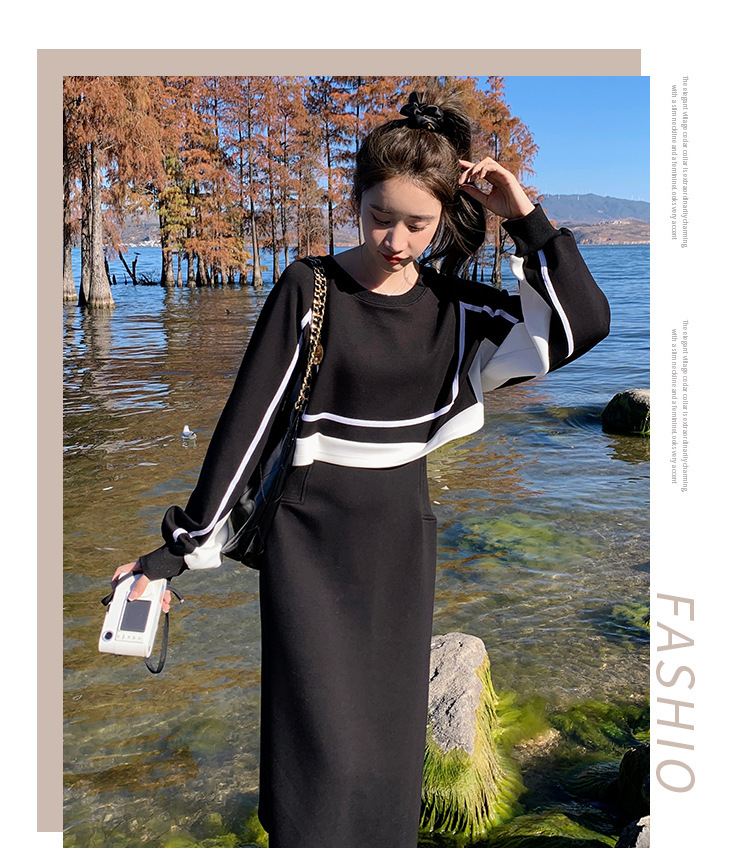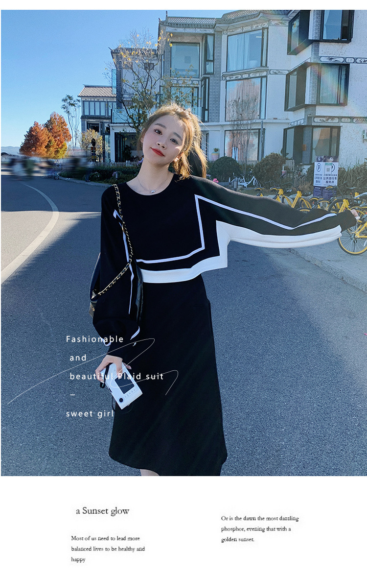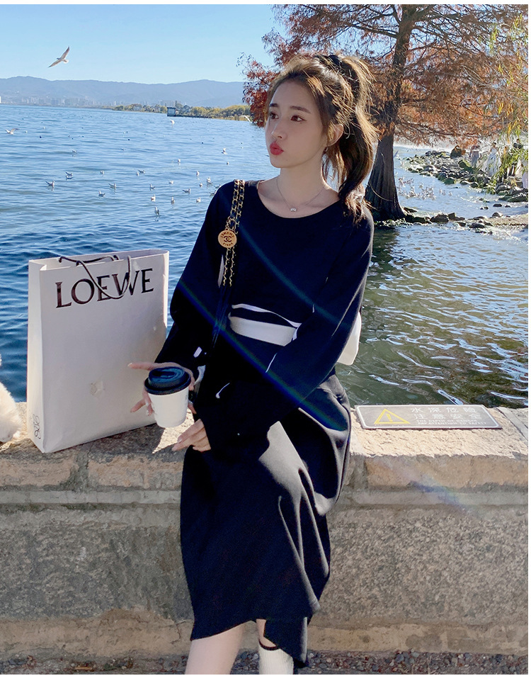 獨家訂製│假2件連衣裙 韓系休閒感拼接式撞色連衣裙(10H7014)