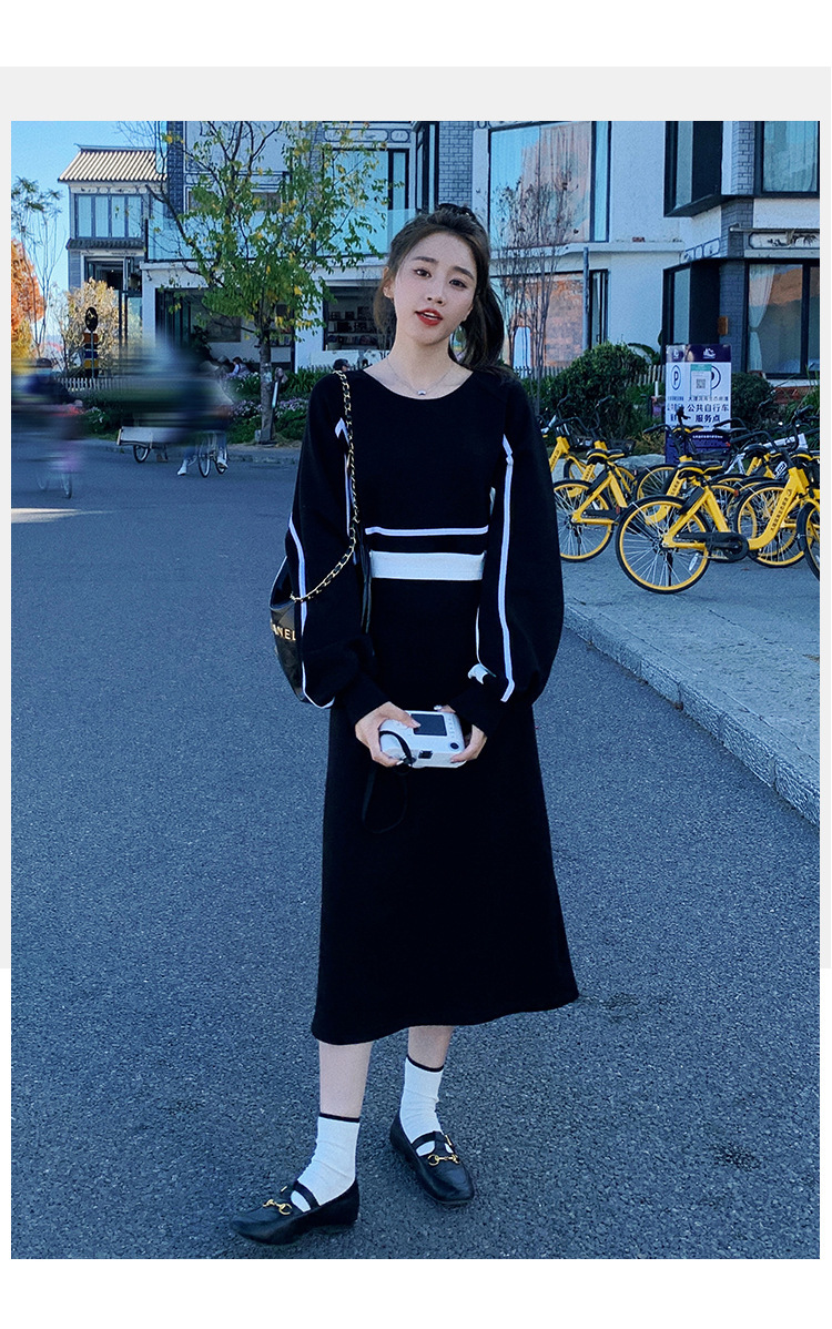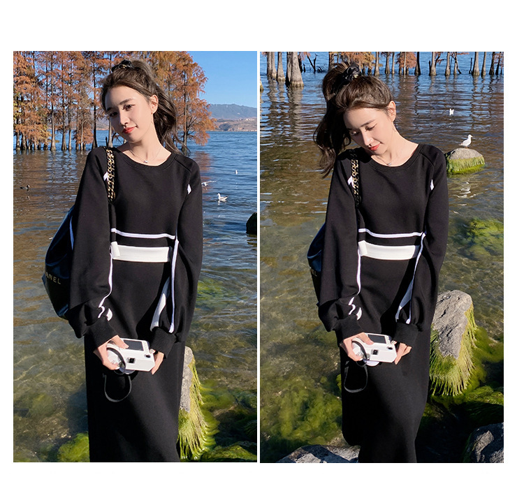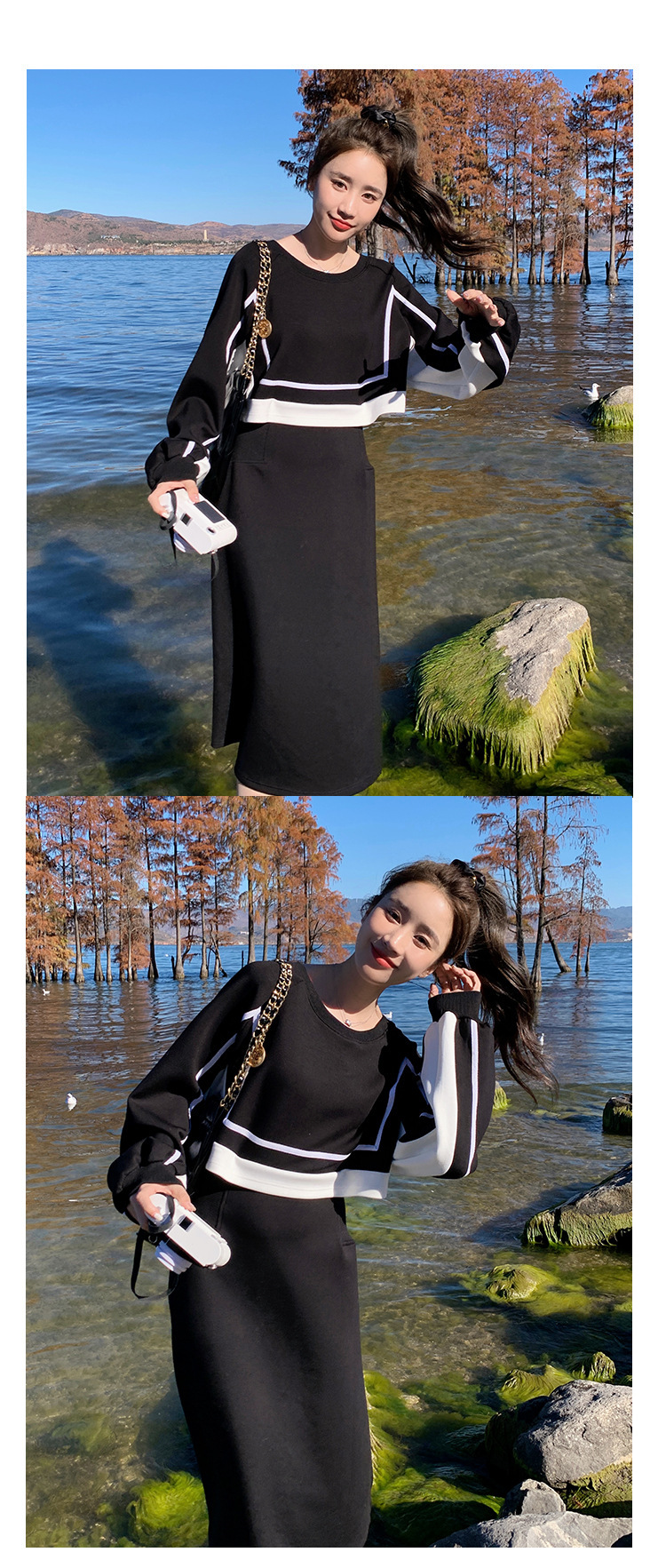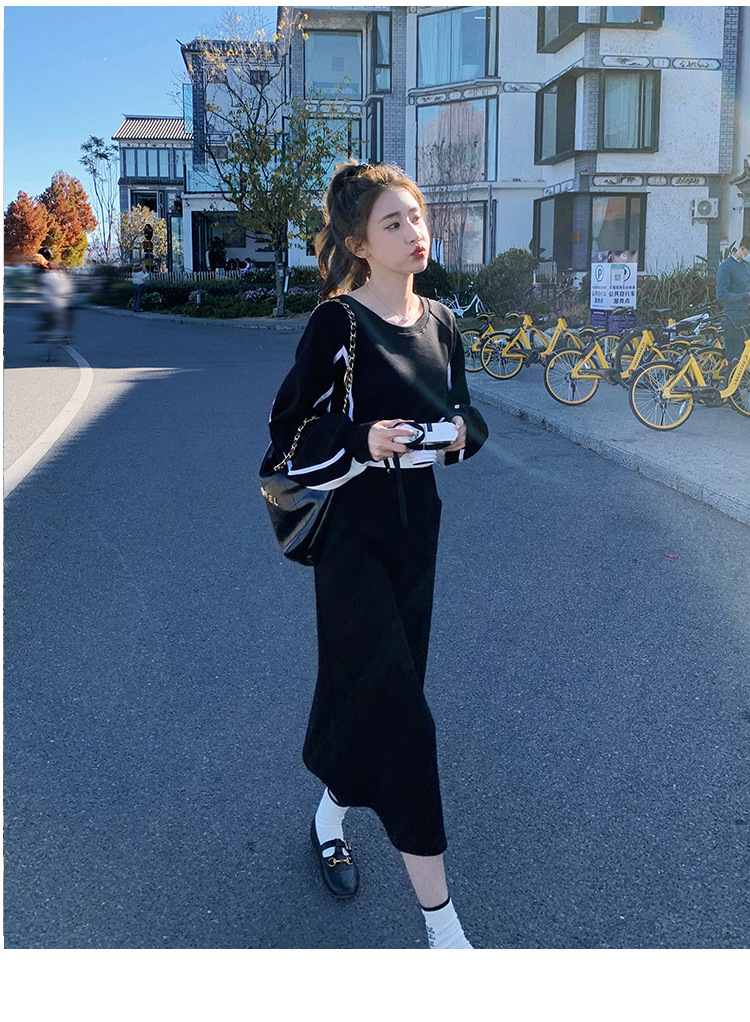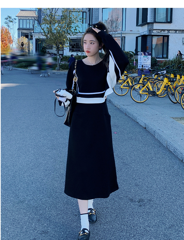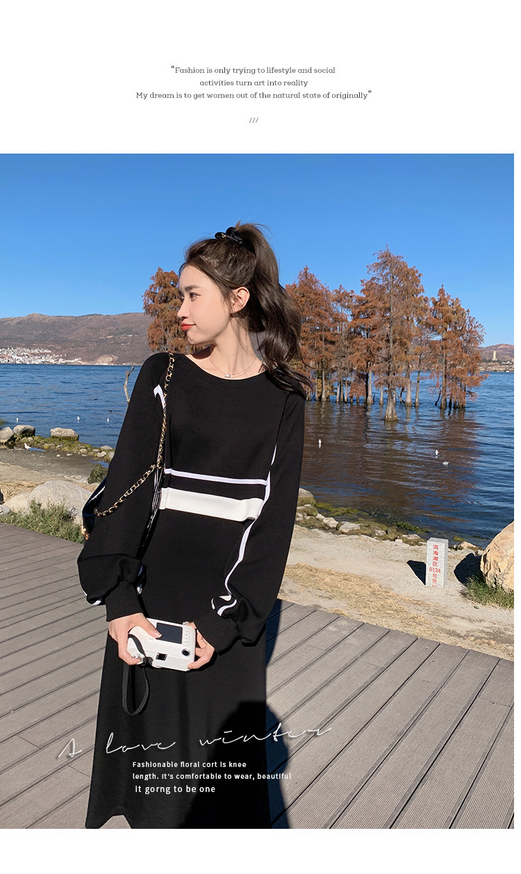獨家訂製│假2件連衣裙 韓系休閒感拼接式撞色連衣裙(10H7014)