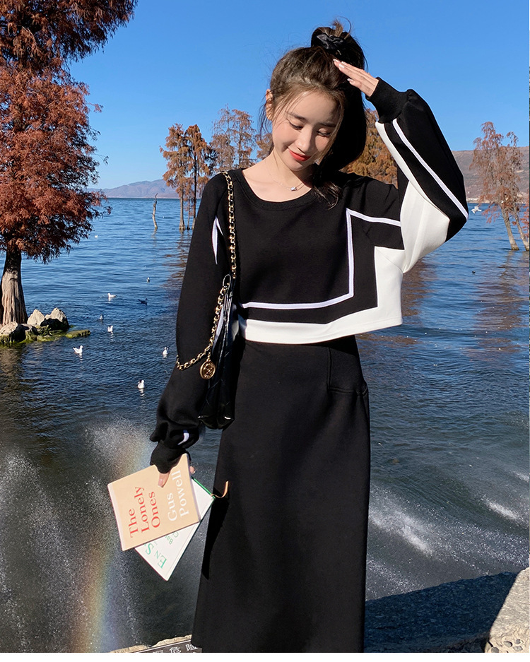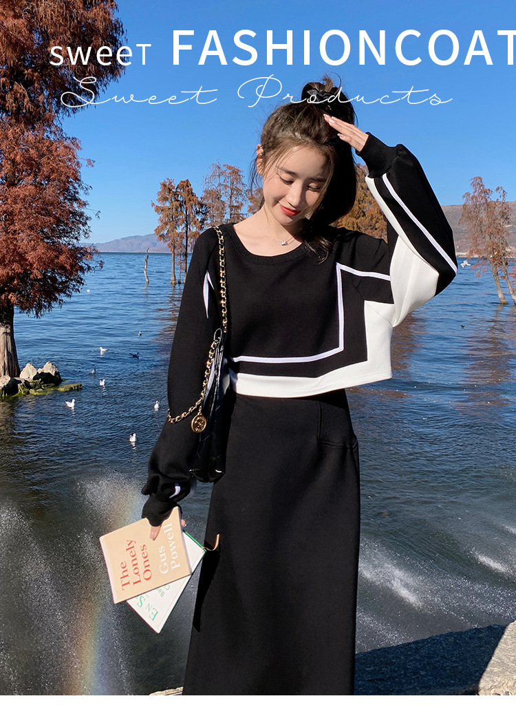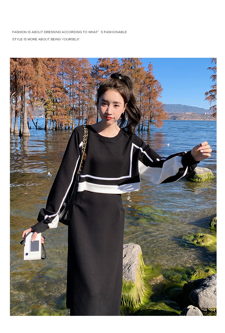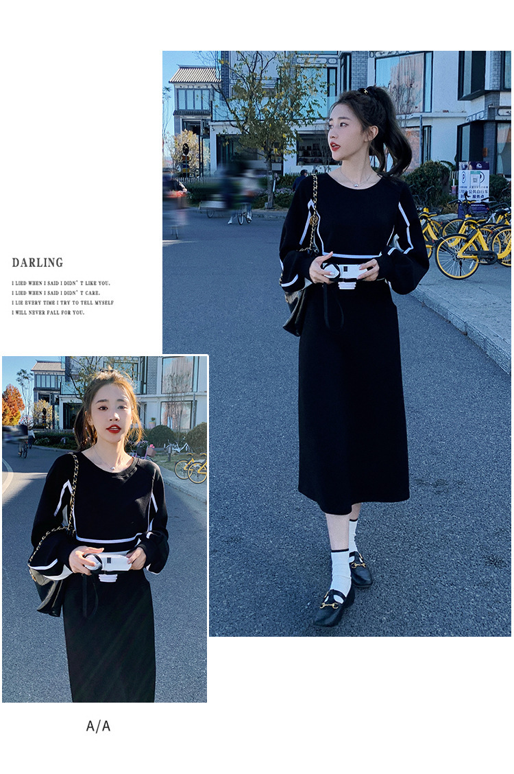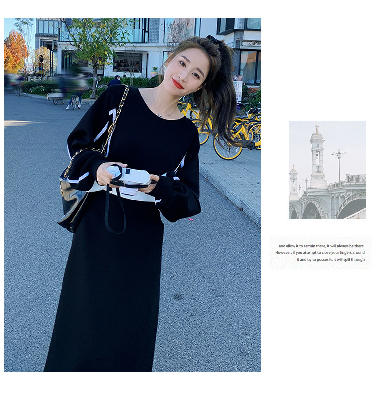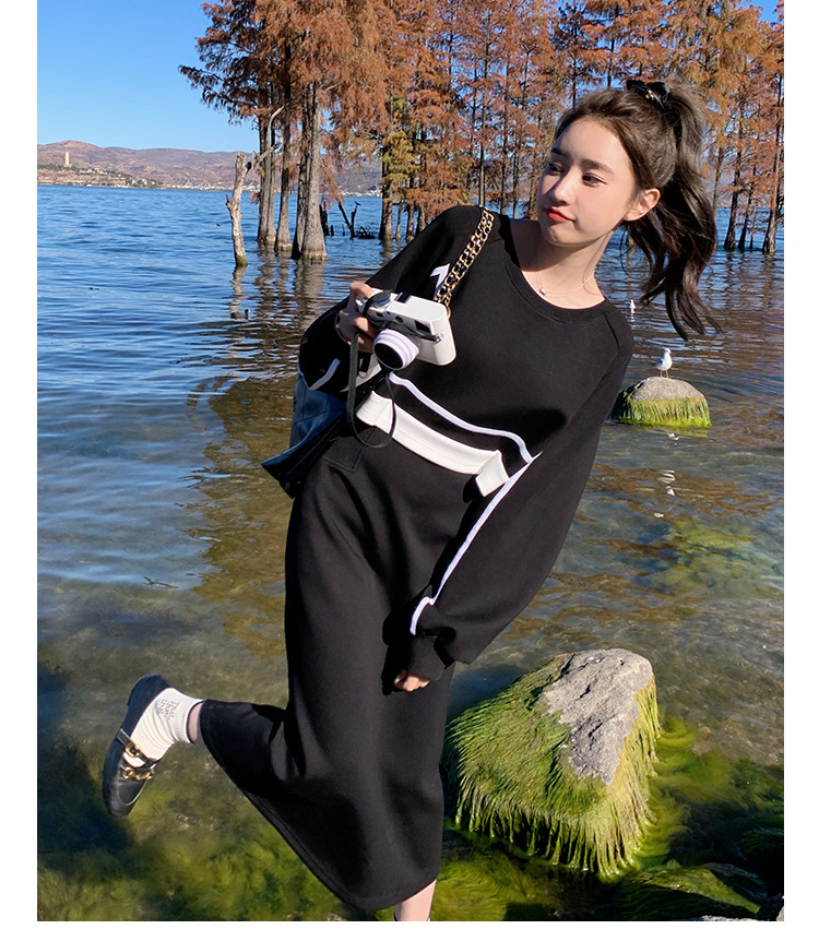 獨家訂製│假2件連衣裙 韓系休閒感拼接式撞色連衣裙(10H7014)