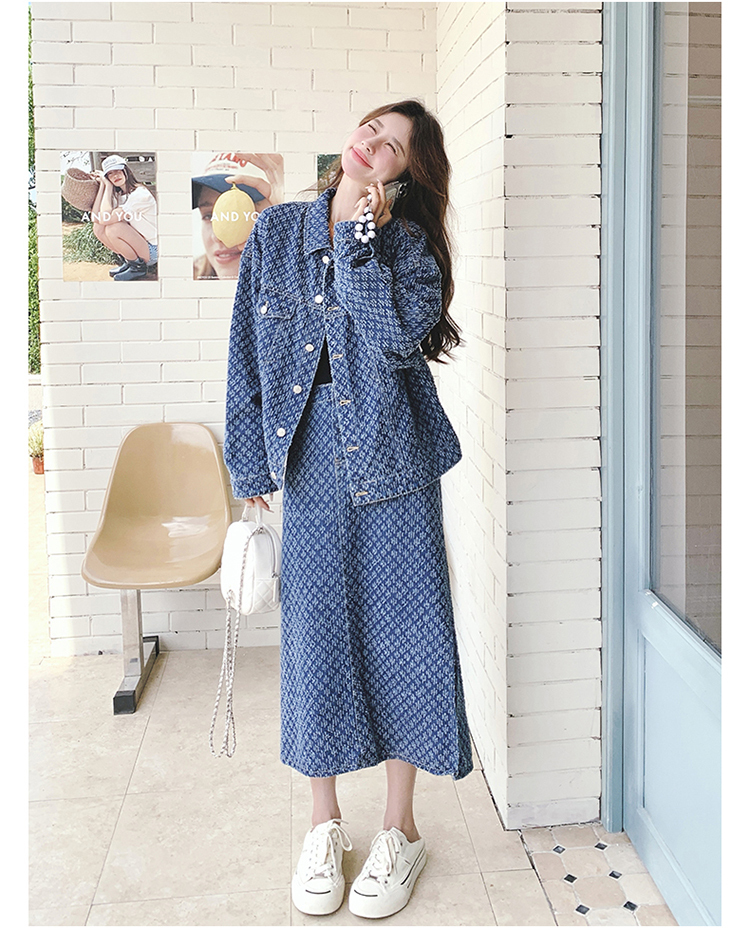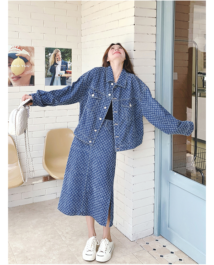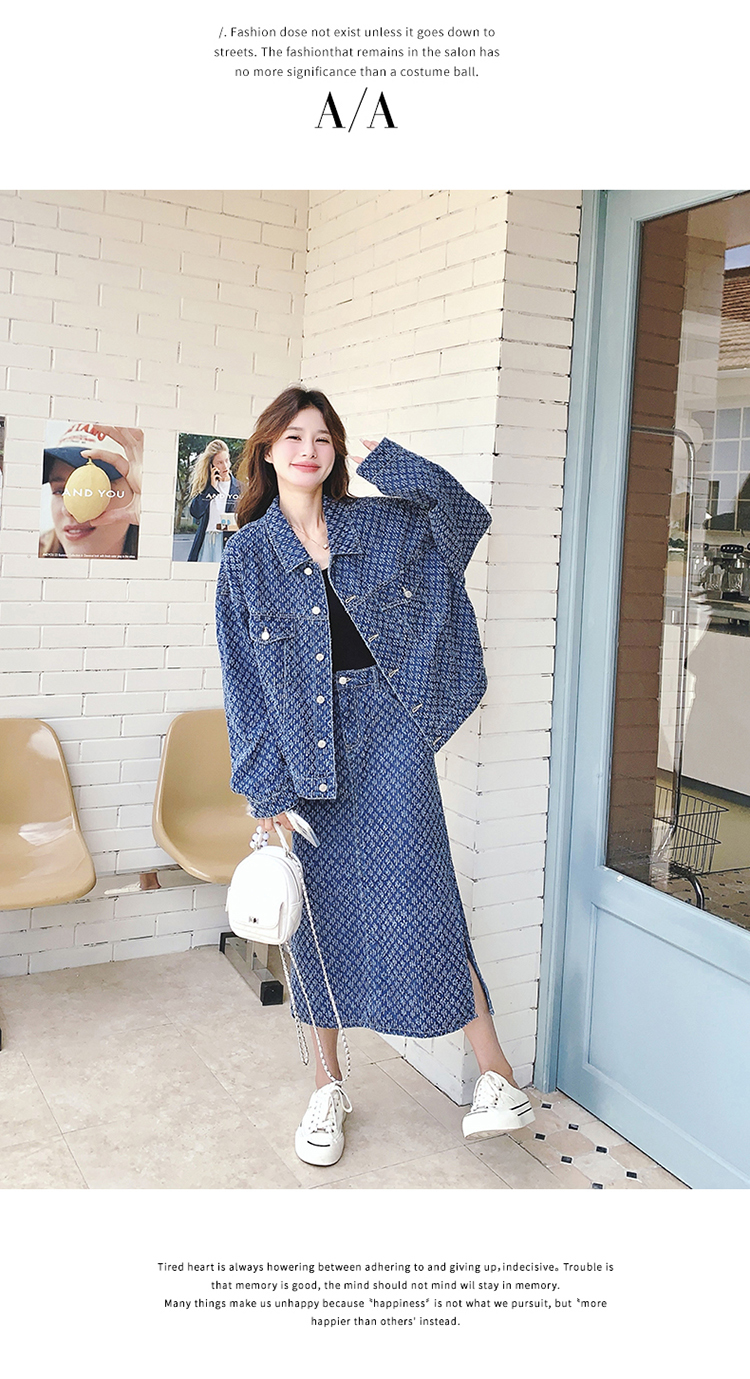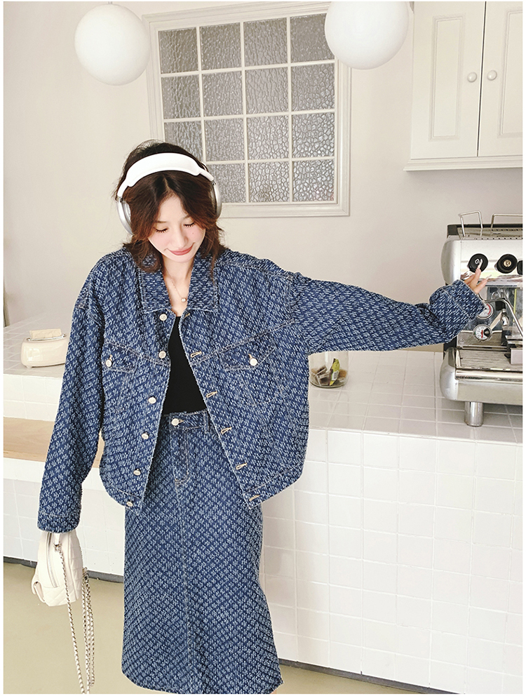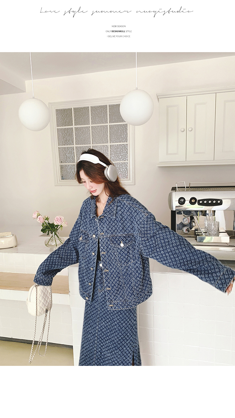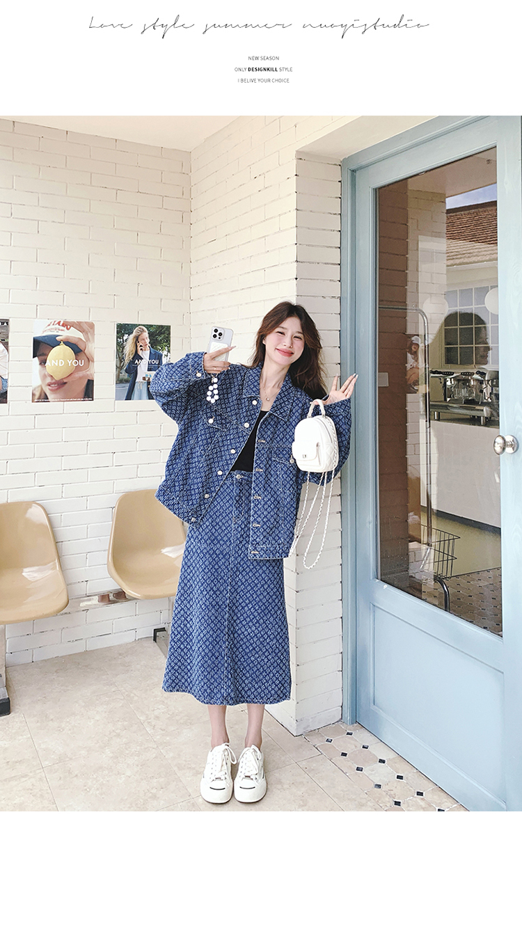 獨家訂製│2件式 韓系甜酷風緹花牛仔外套+A字裙(10H7066)