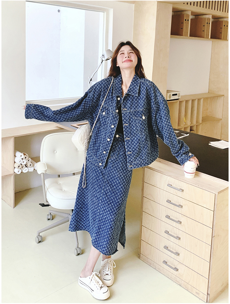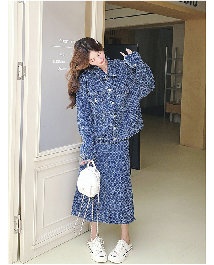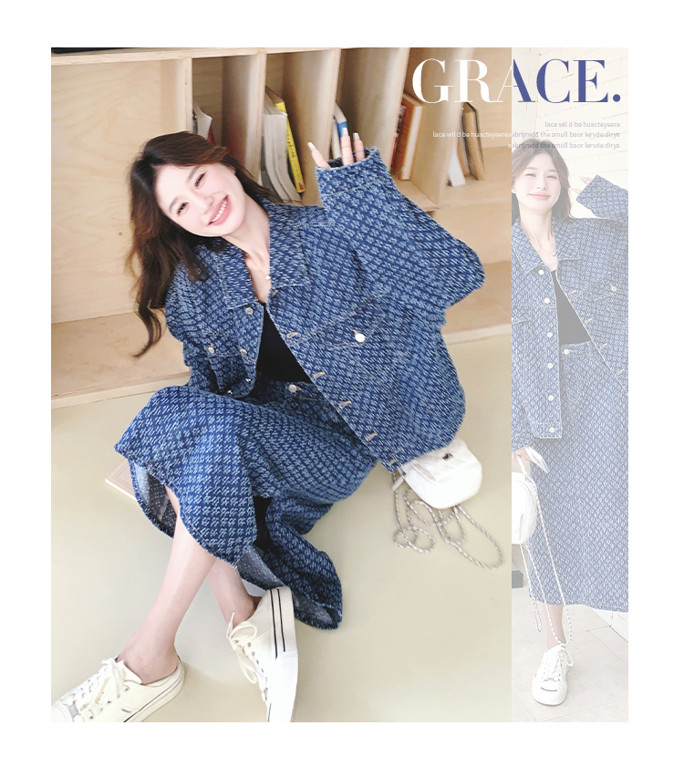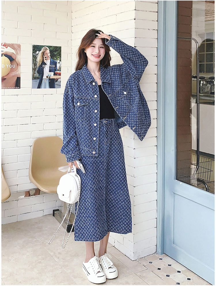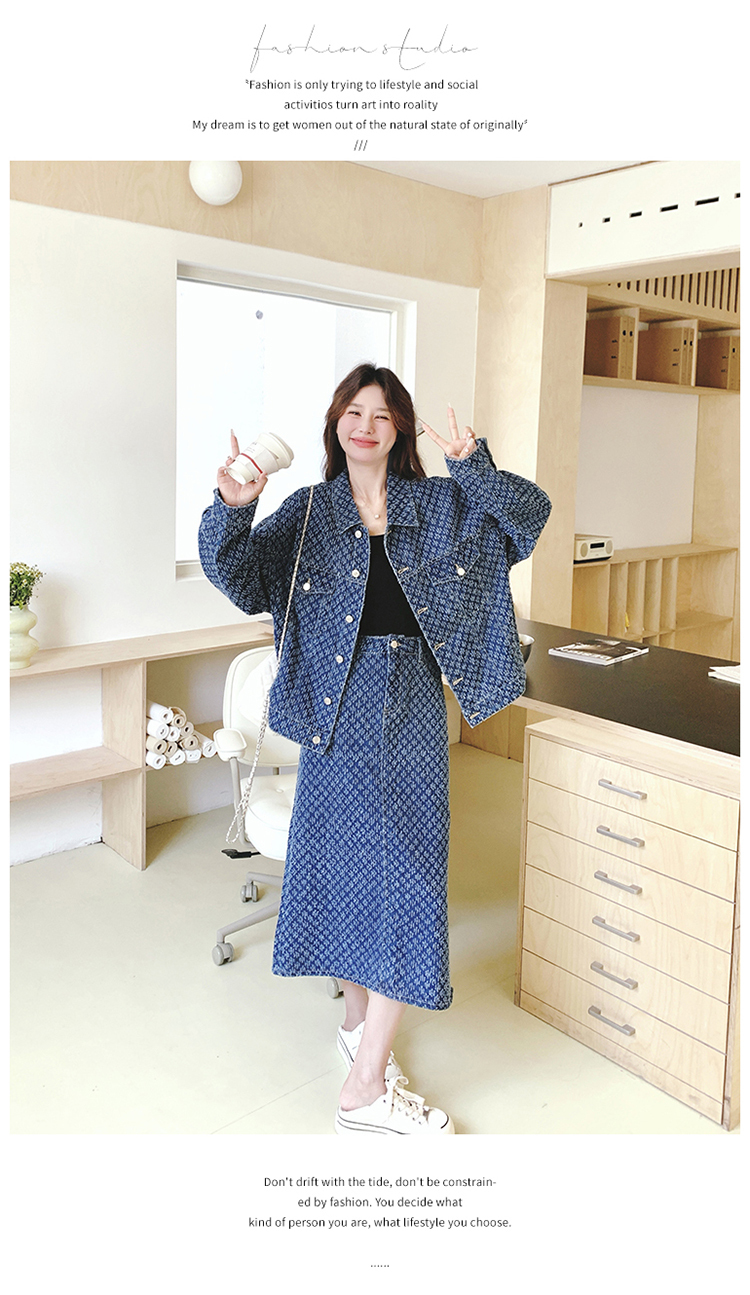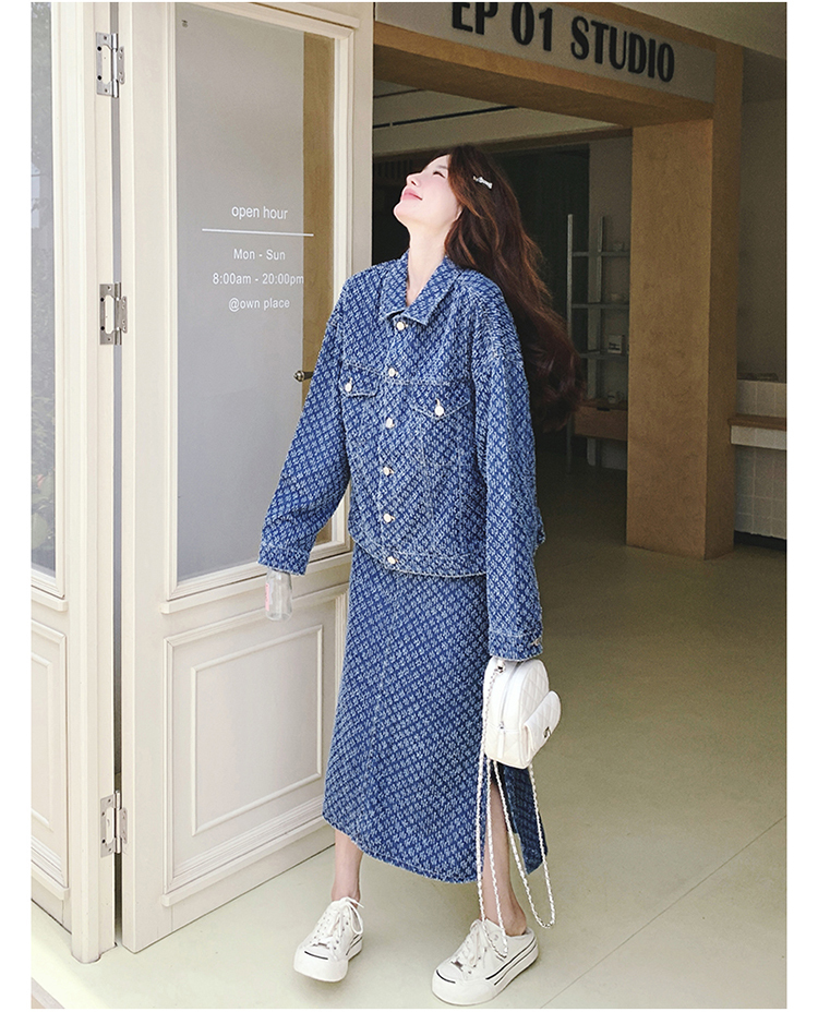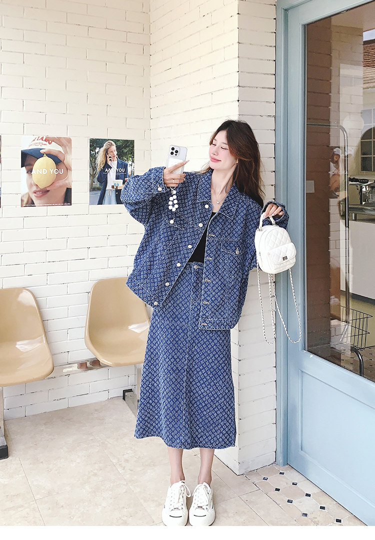 獨家訂製│2件式 韓系甜酷風緹花牛仔外套+A字裙(10H7066)
