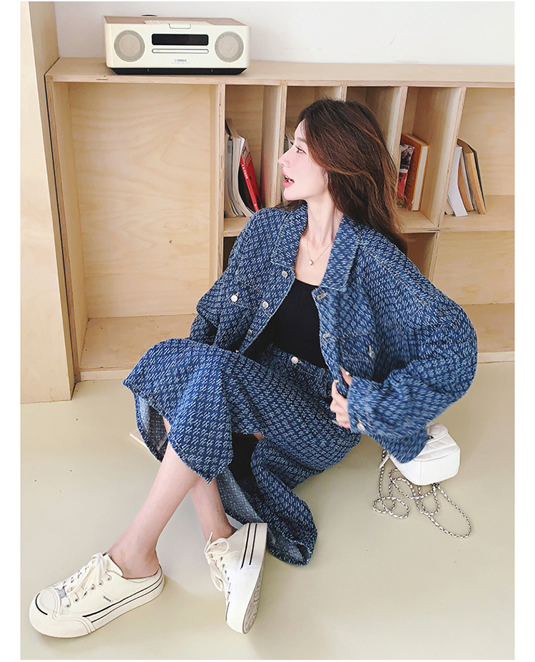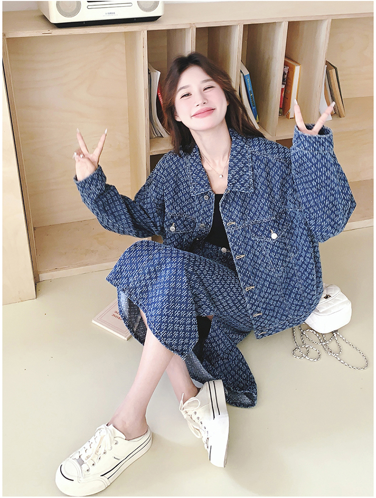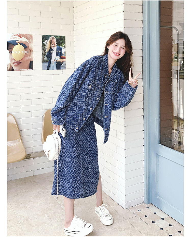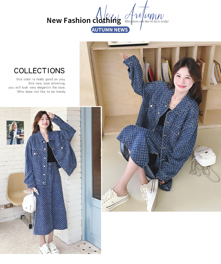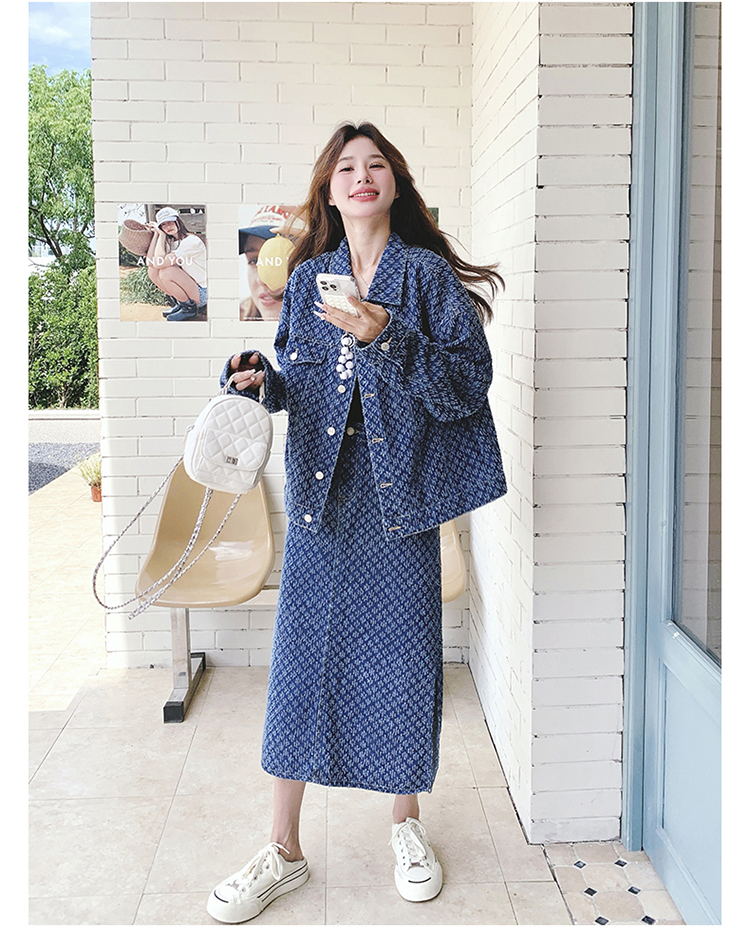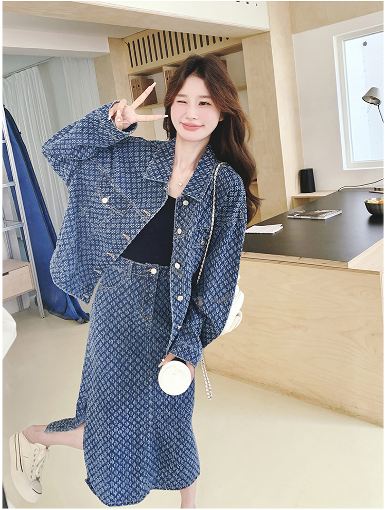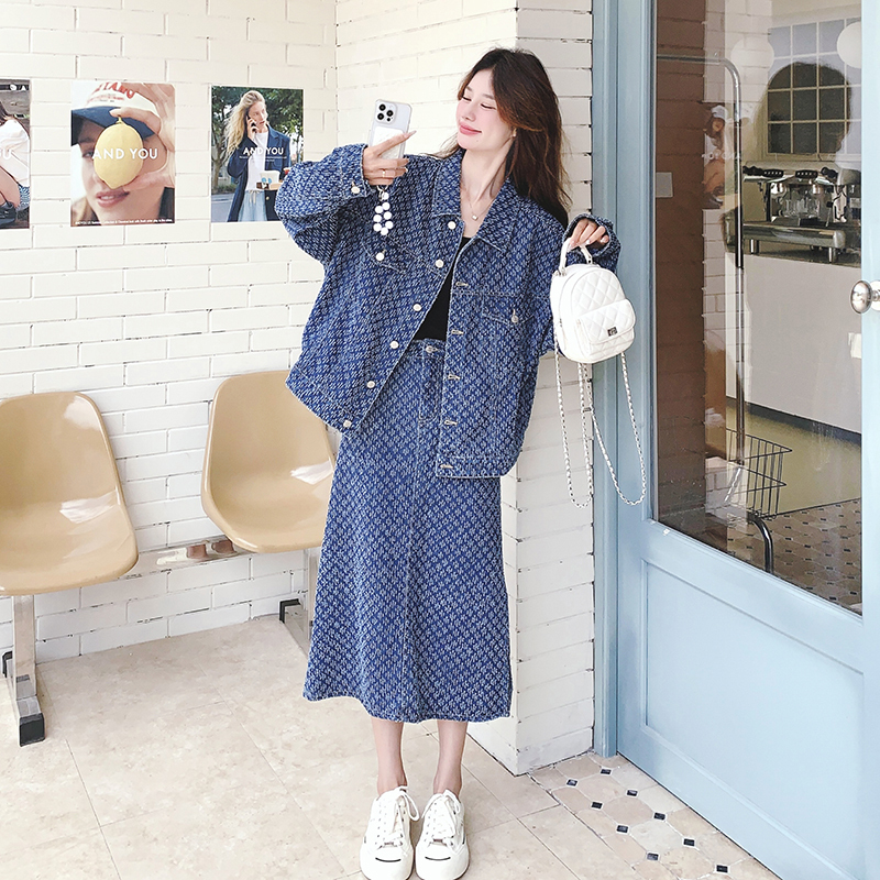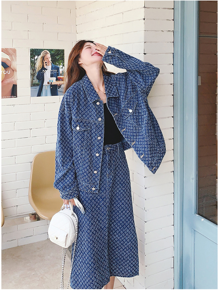 獨家訂製│2件式 韓系甜酷風緹花牛仔外套+A字裙(10H7066)