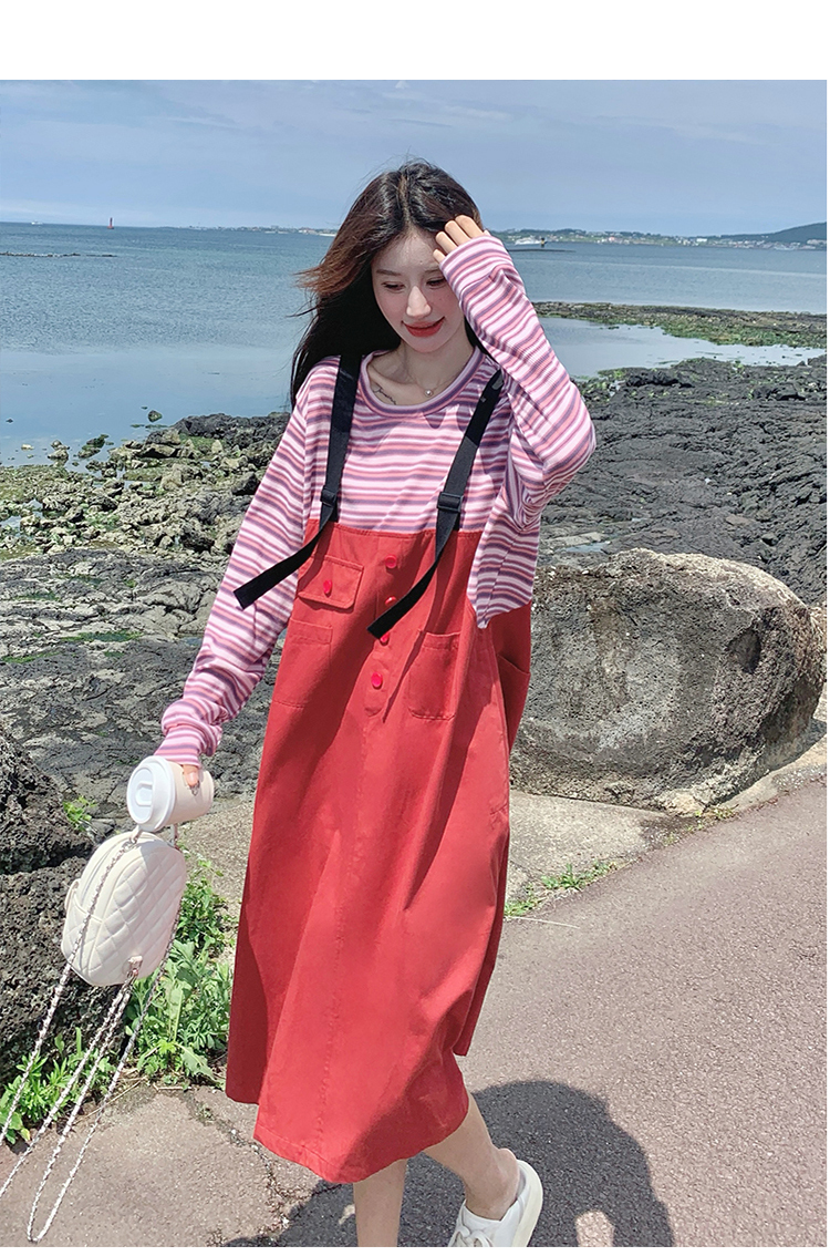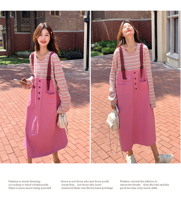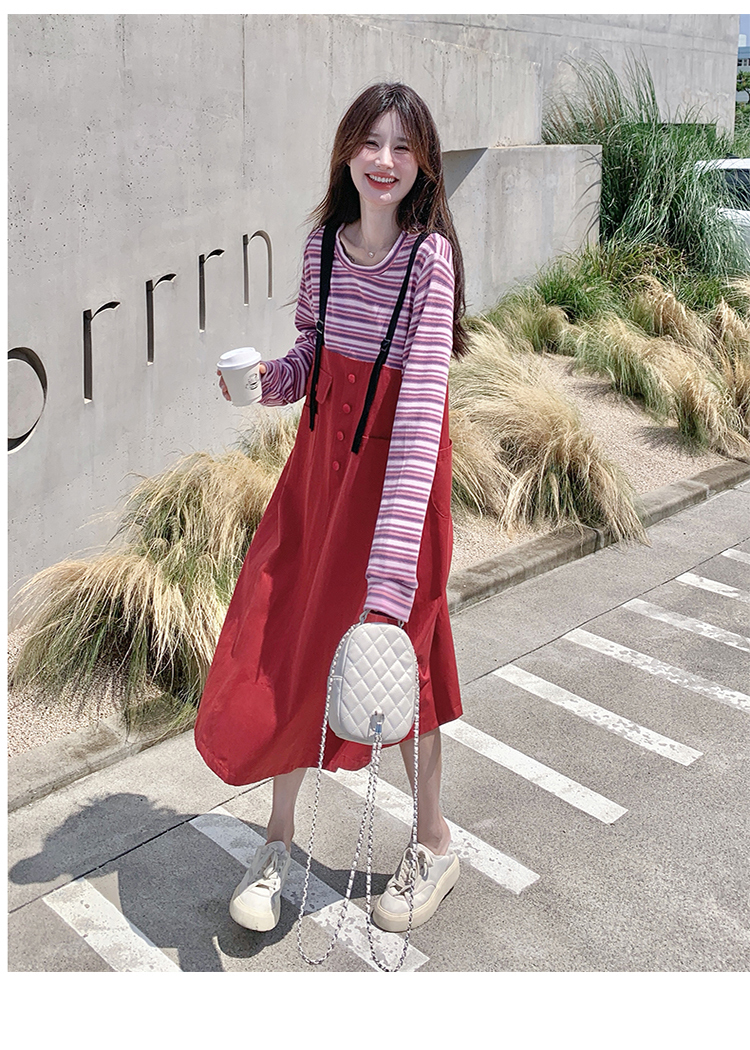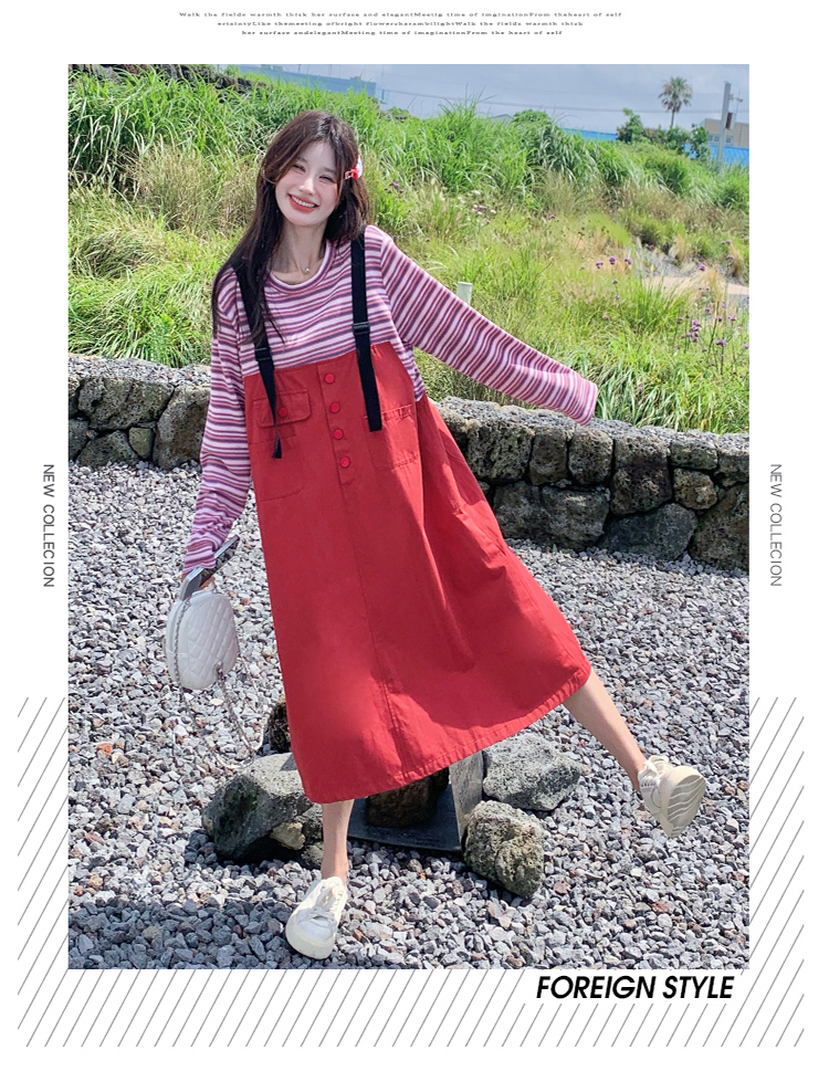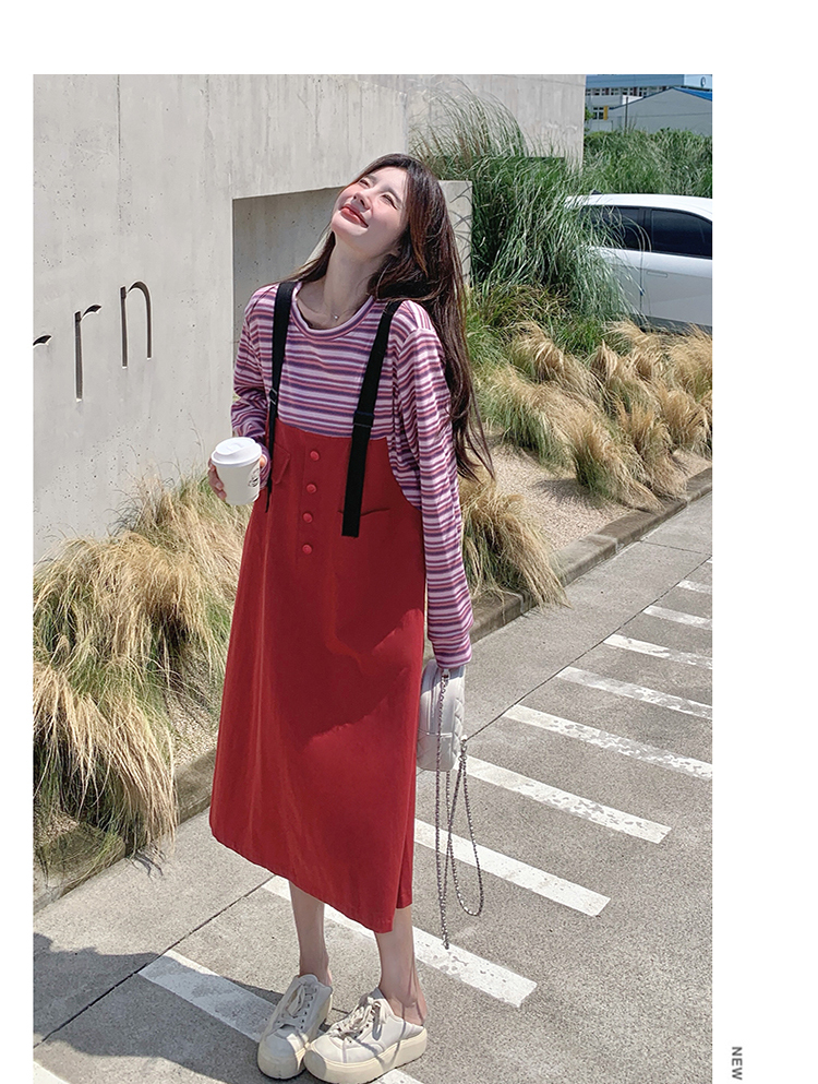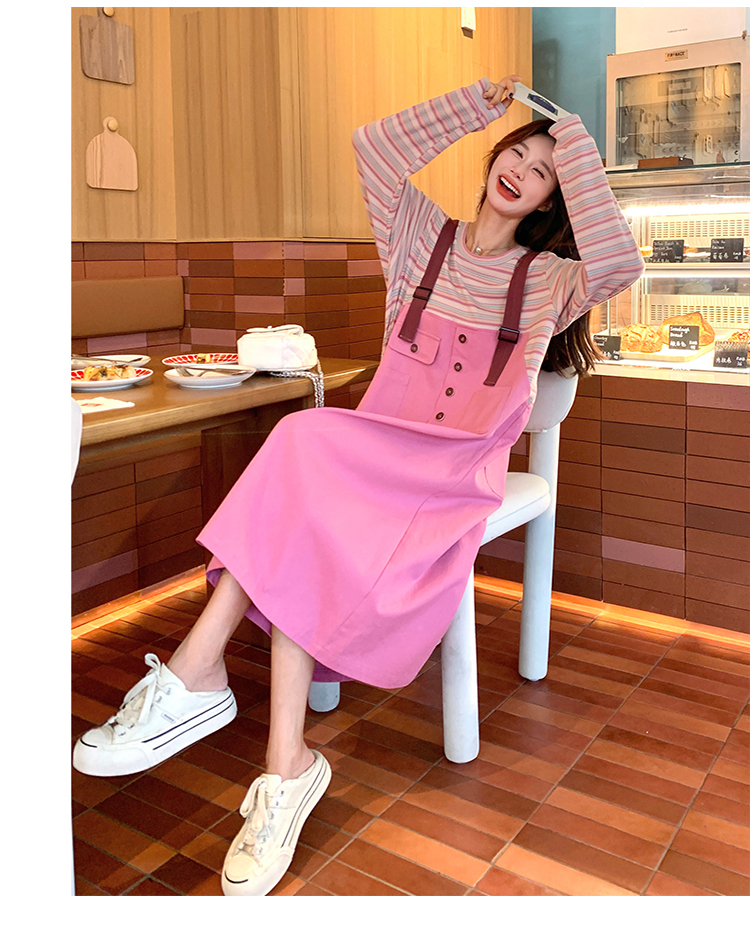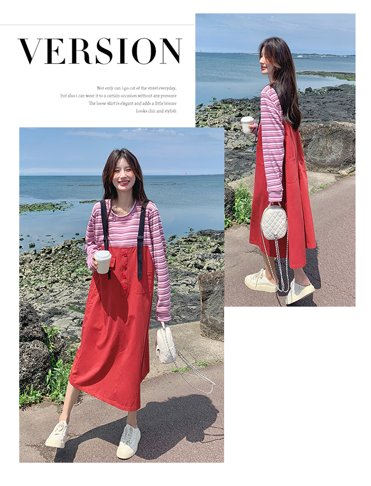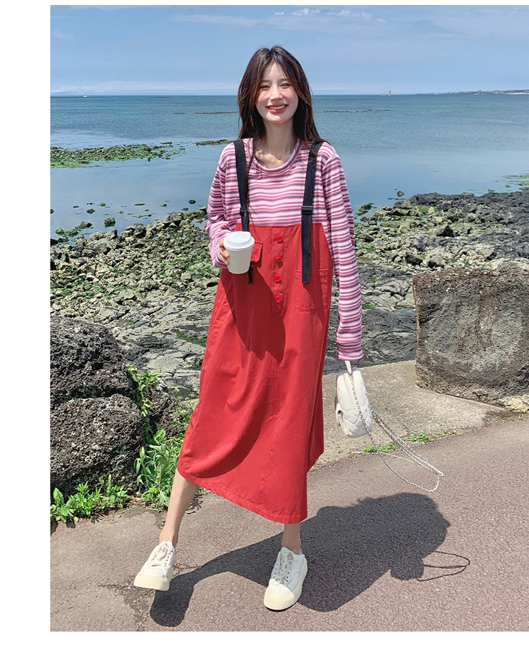 獨家訂製│2色假2件連衣裙 韓系休閒感吊帶拼接撞色連衣裙(10H7072)