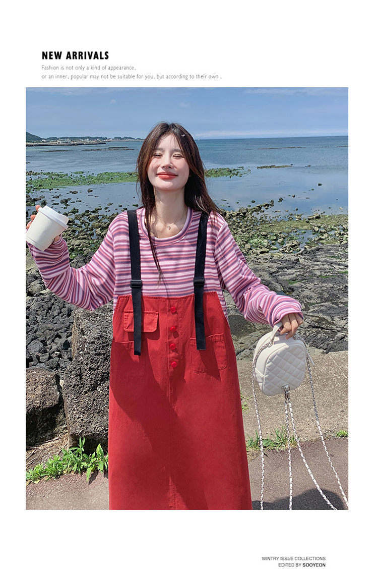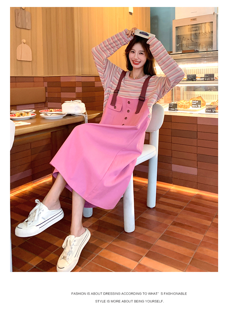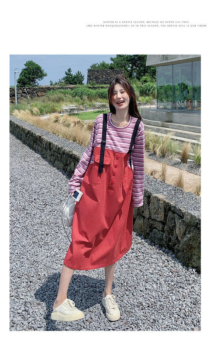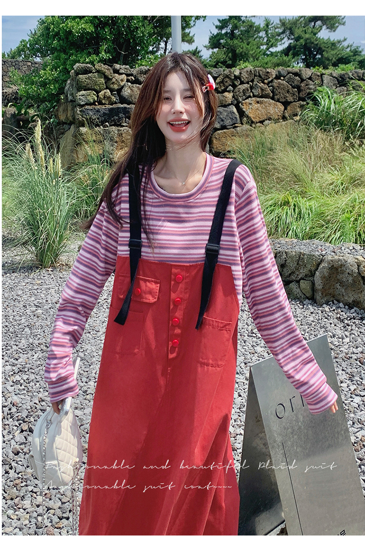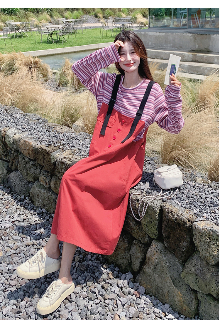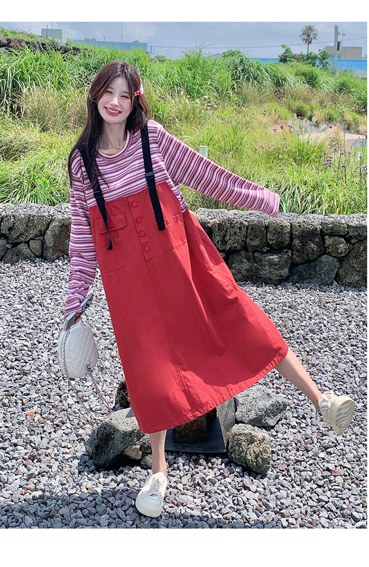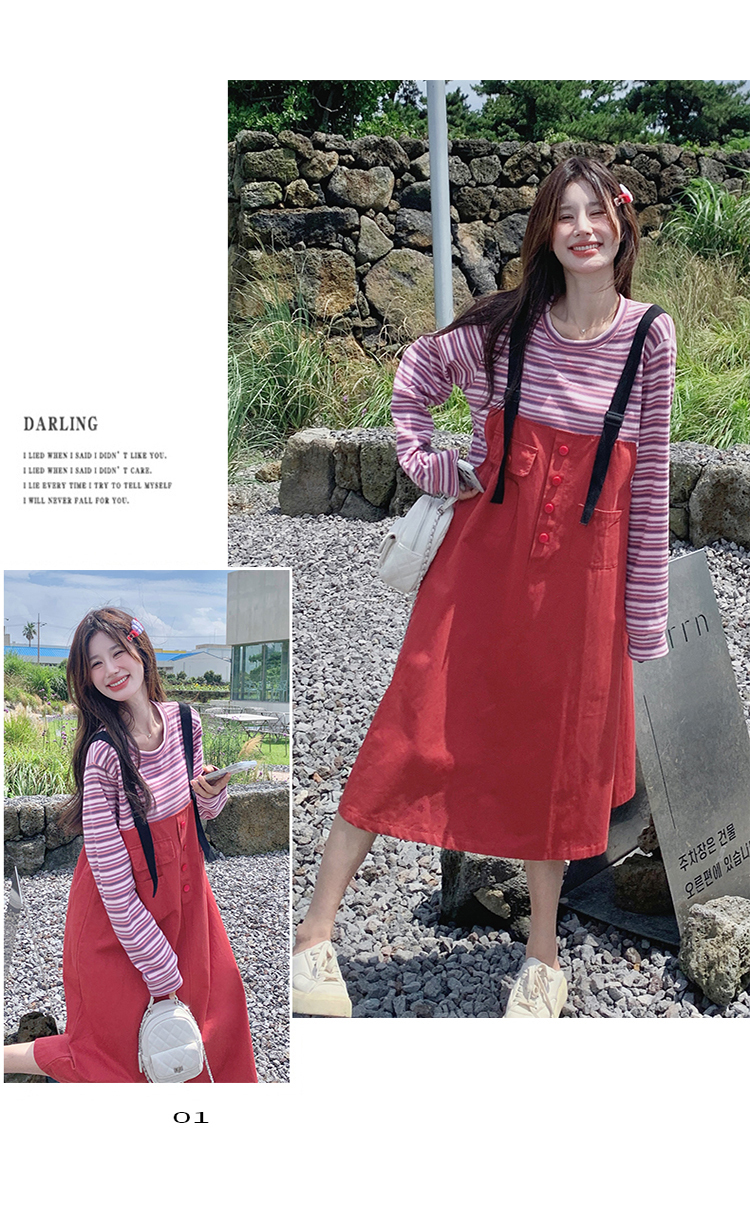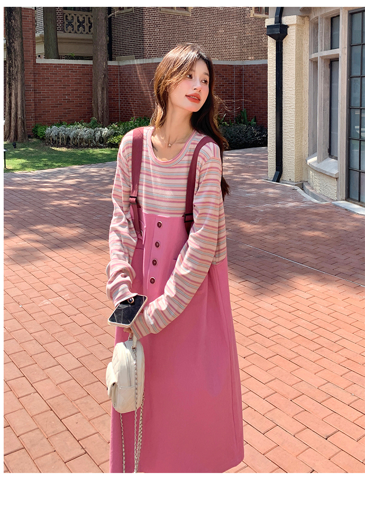 獨家訂製│2色假2件連衣裙 韓系休閒感吊帶拼接撞色連衣裙(10H7072)