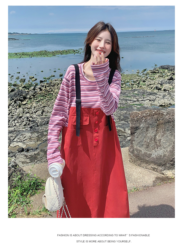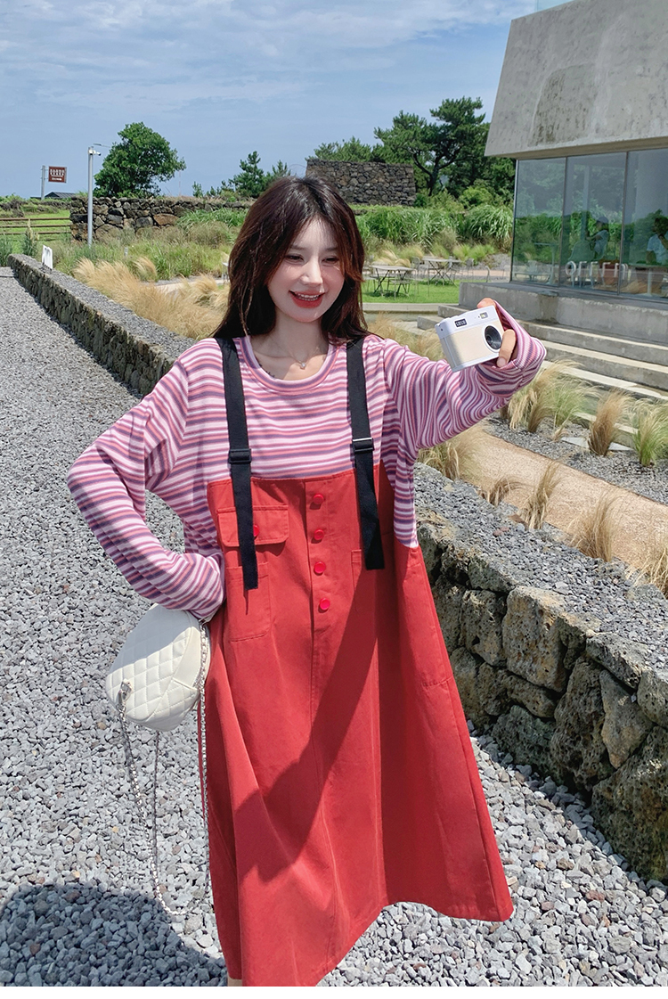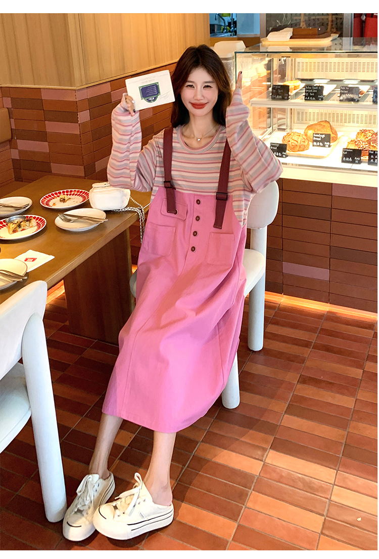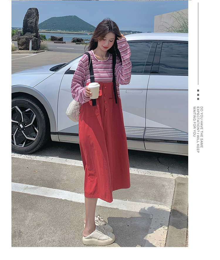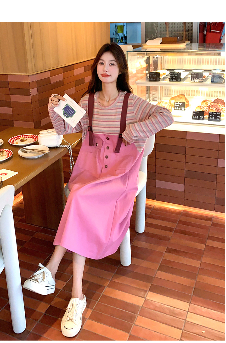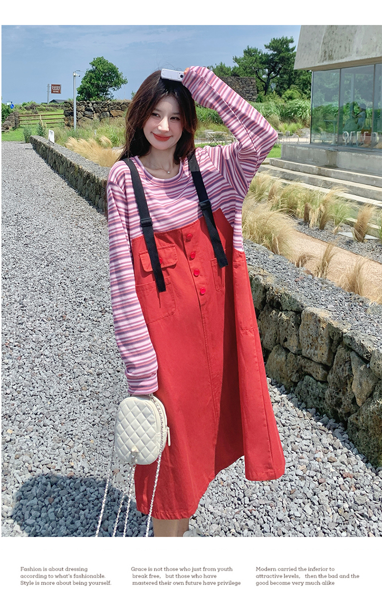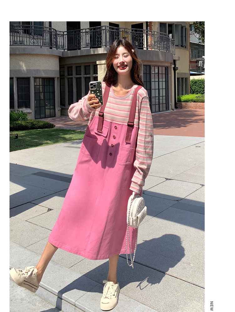 獨家訂製│2色假2件連衣裙 韓系休閒感吊帶拼接撞色連衣裙(10H7072)