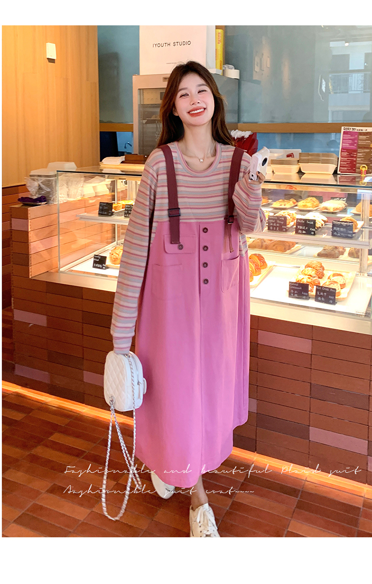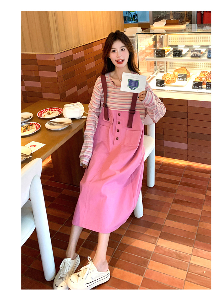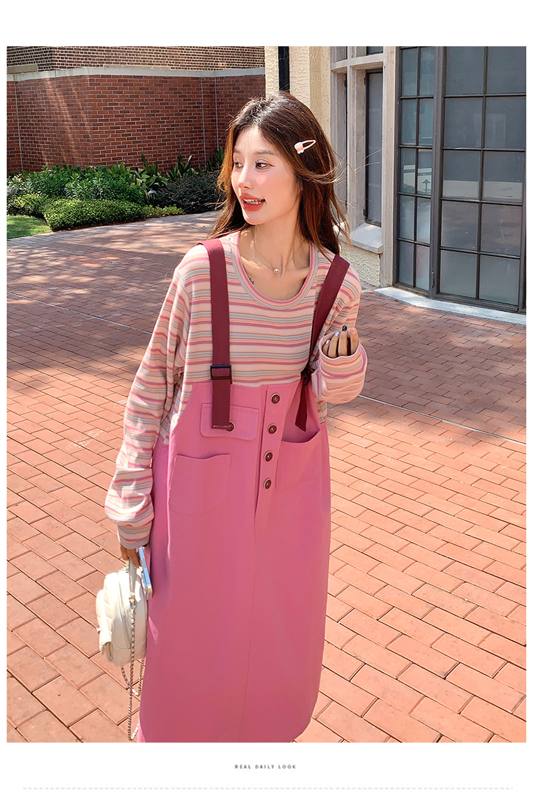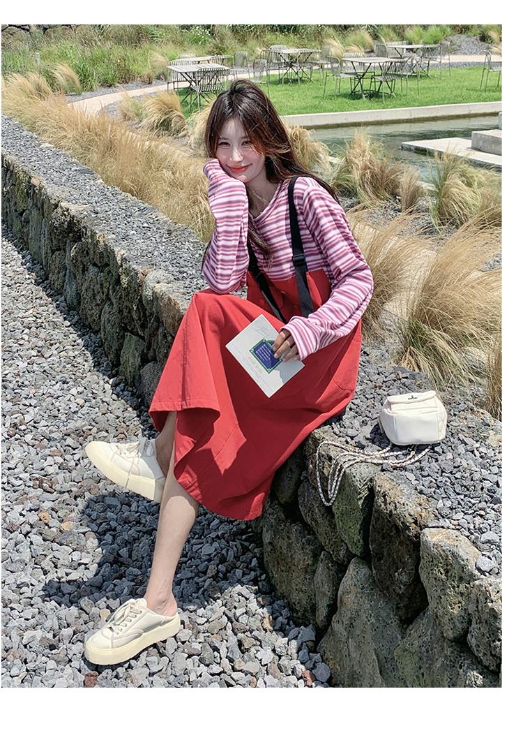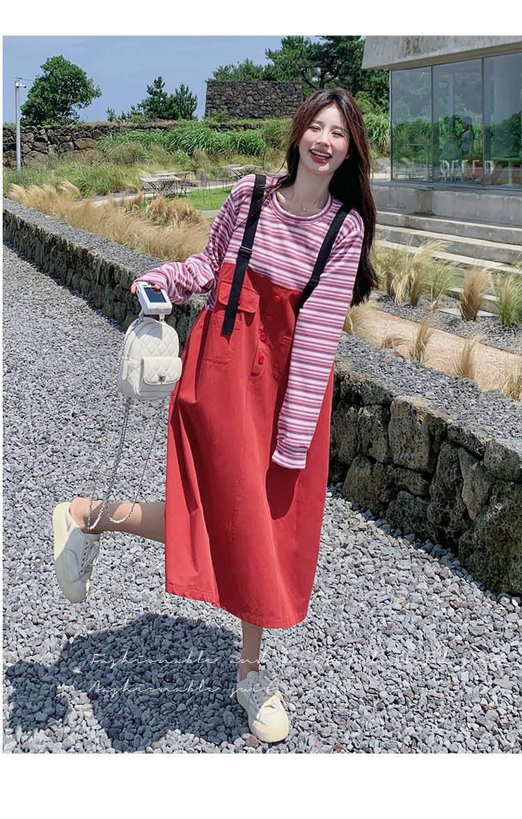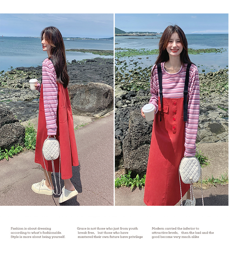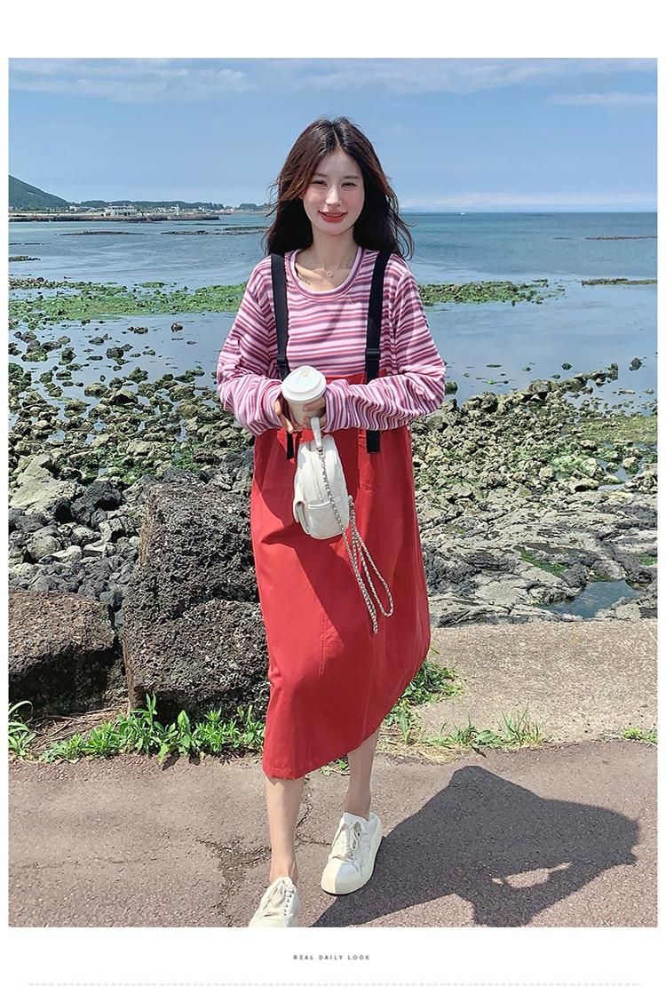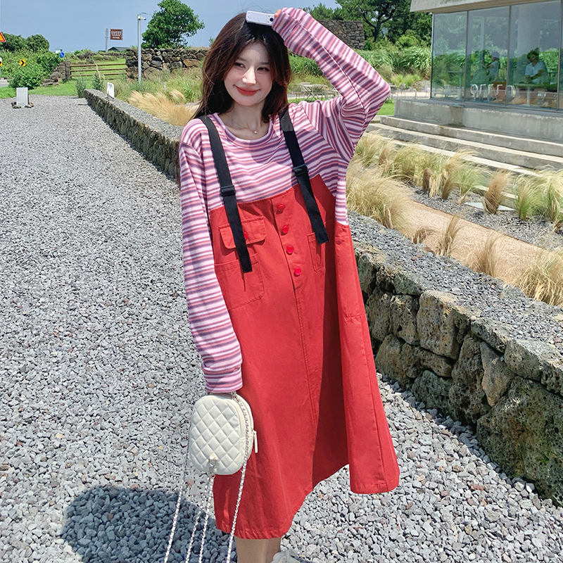獨家訂製│2色假2件連衣裙 韓系休閒感吊帶拼接撞色連衣裙(10H7072)