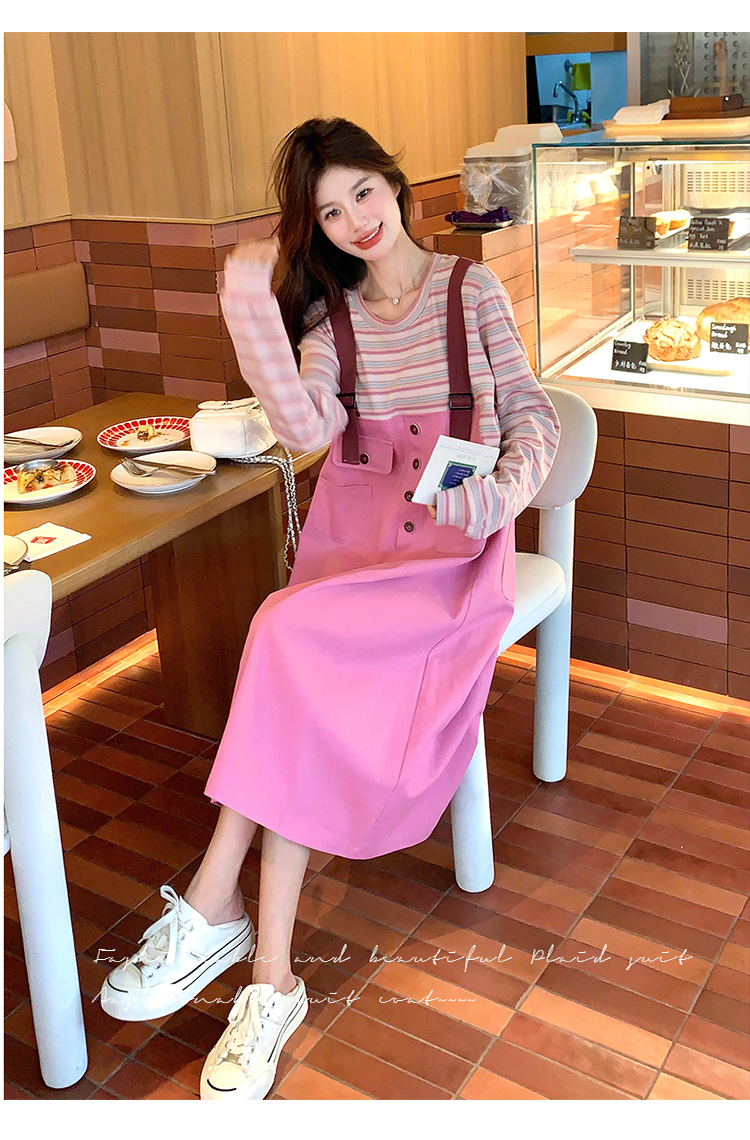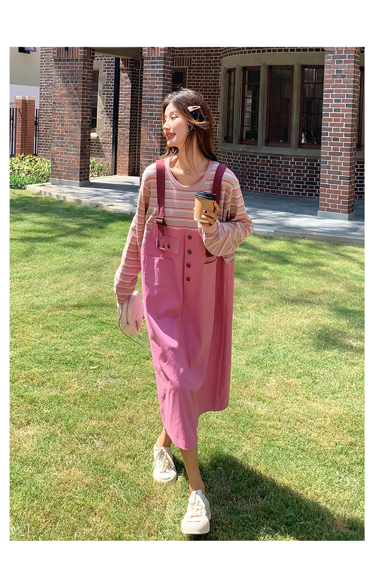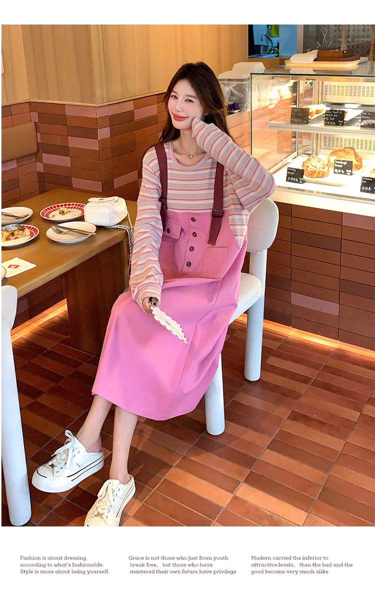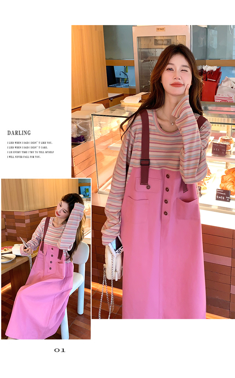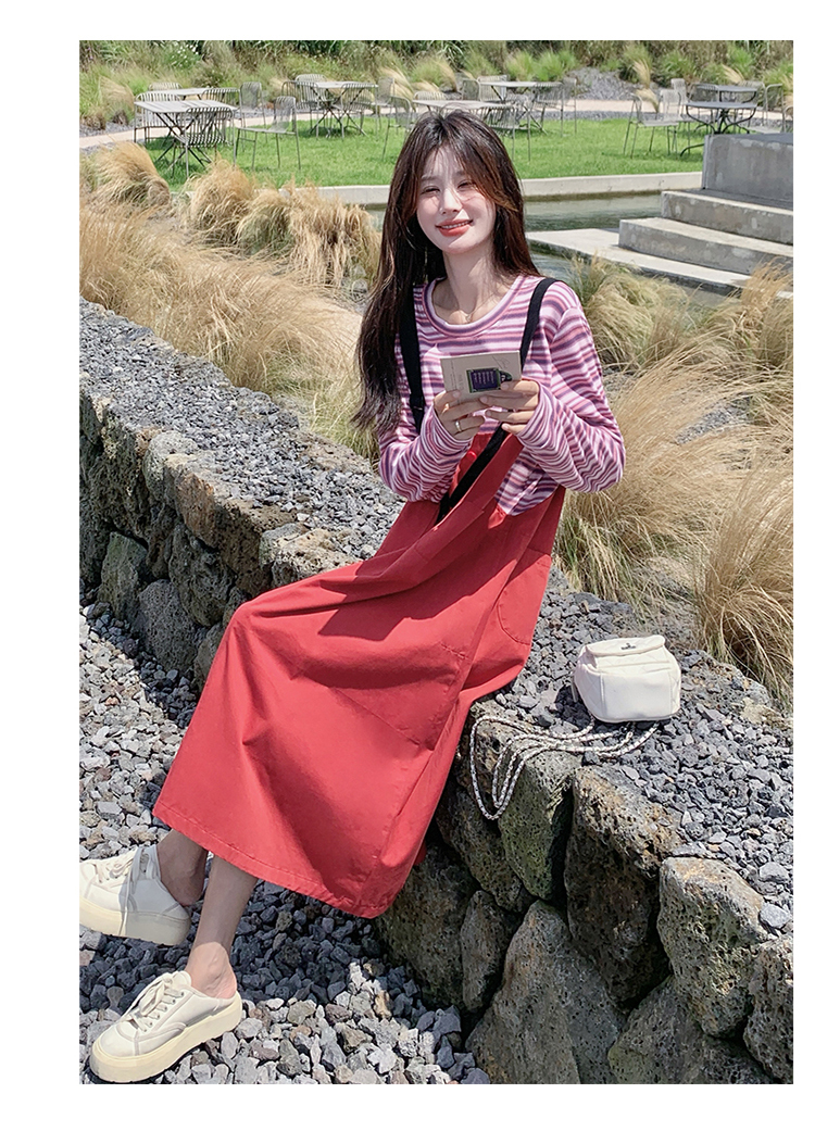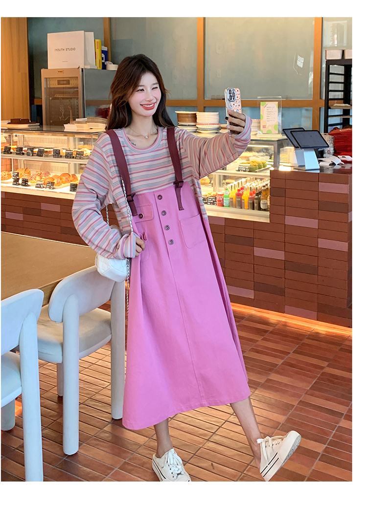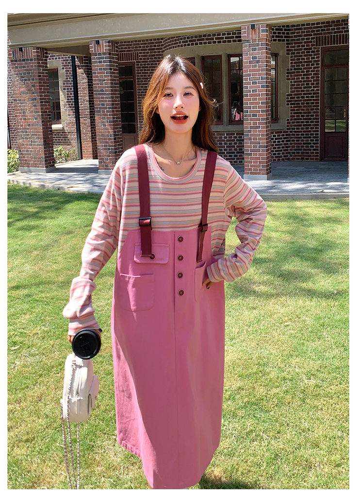 獨家訂製│2色假2件連衣裙 韓系休閒感吊帶拼接撞色連衣裙(10H7072)