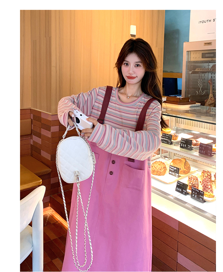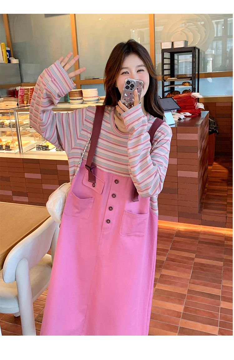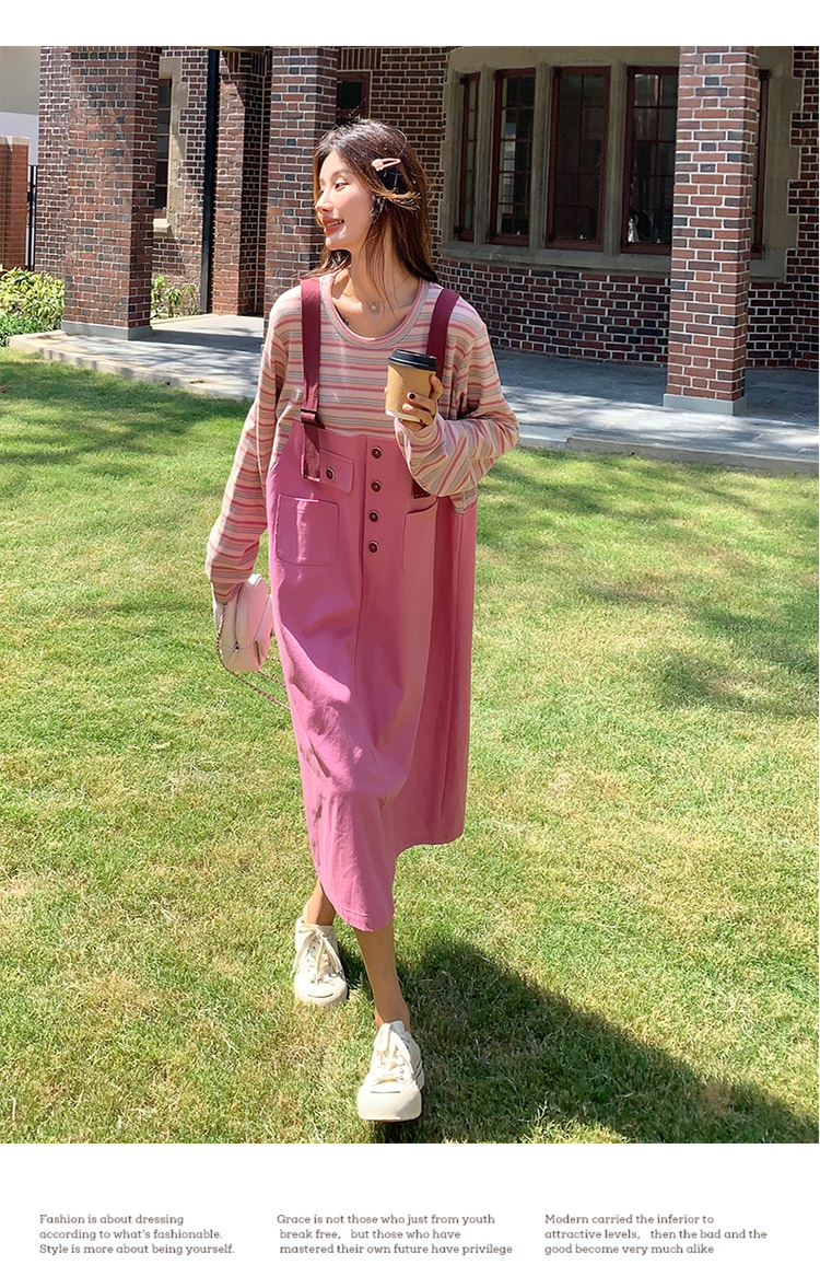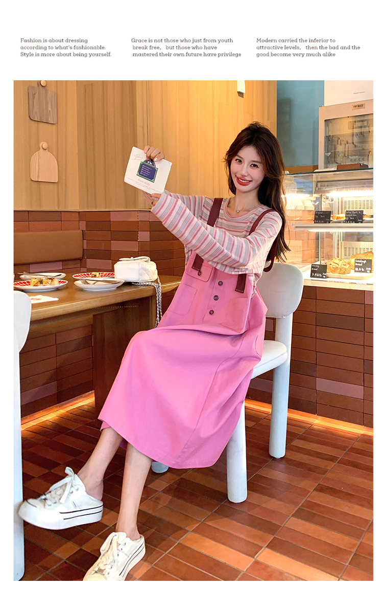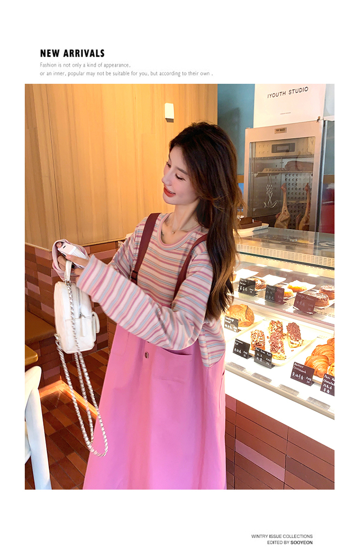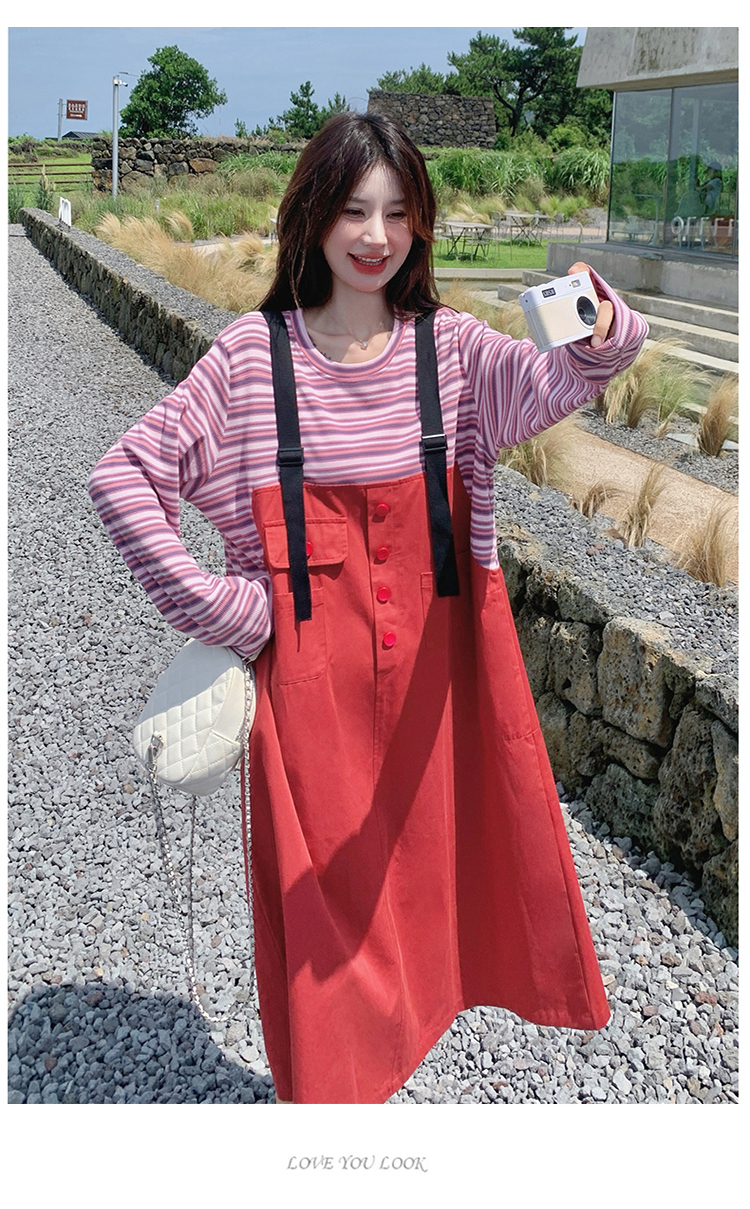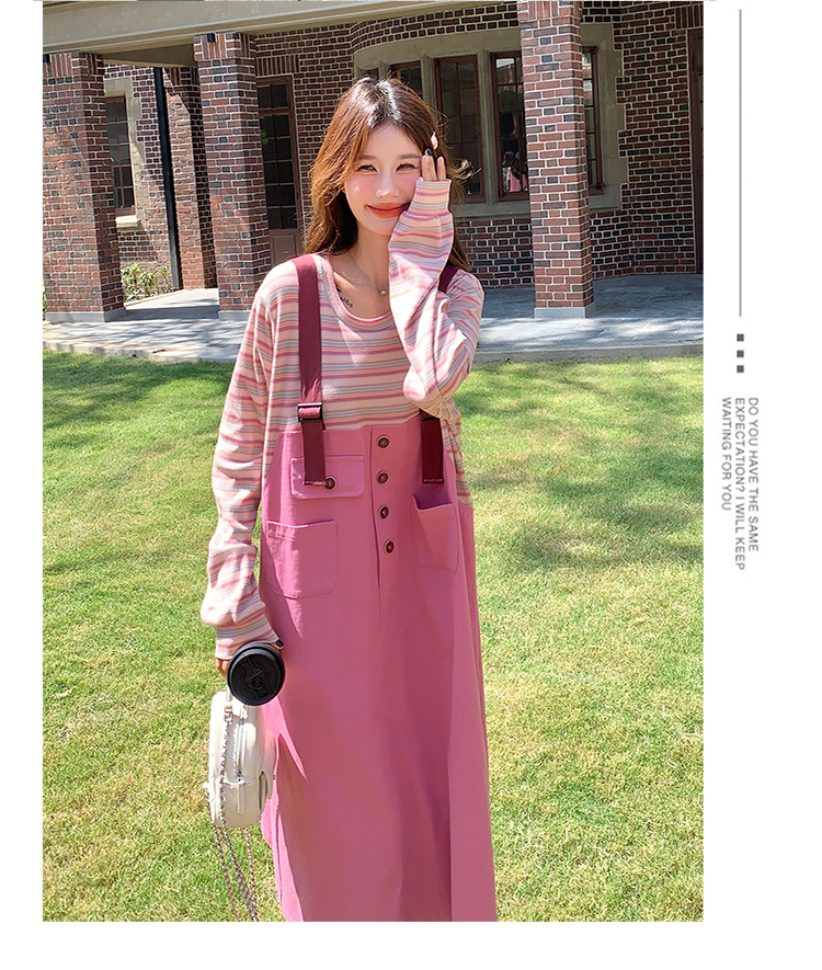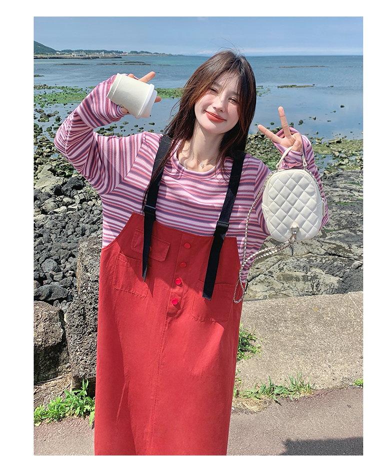 獨家訂製│2色假2件連衣裙 韓系休閒感吊帶拼接撞色連衣裙(10H7072)