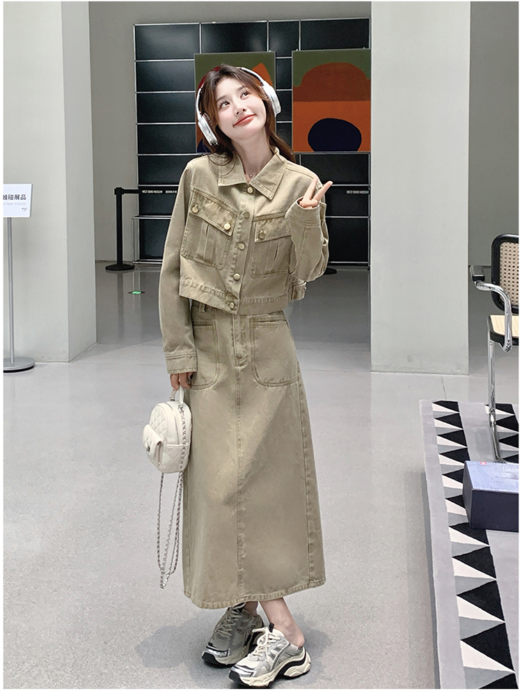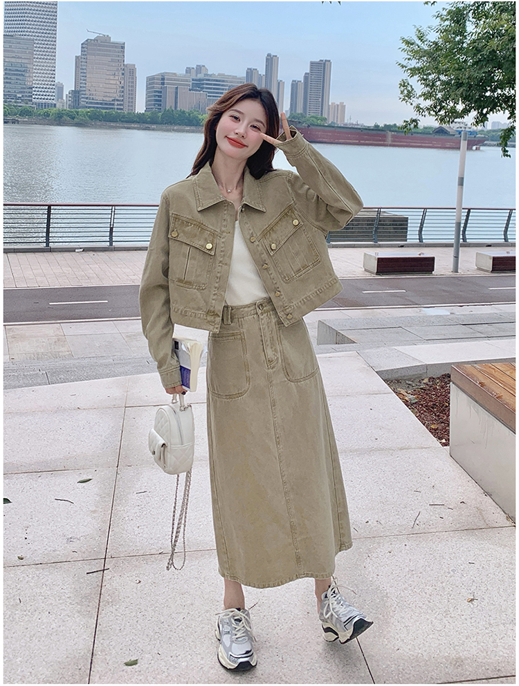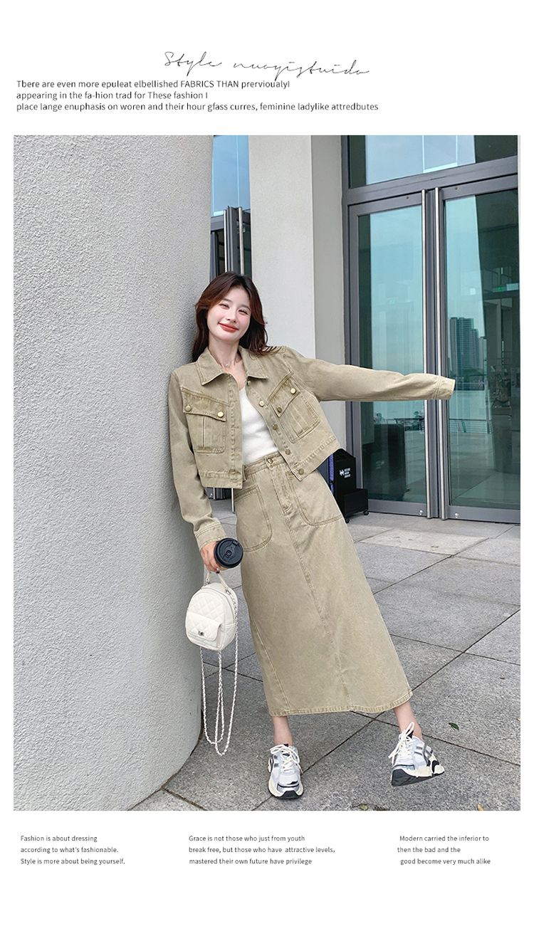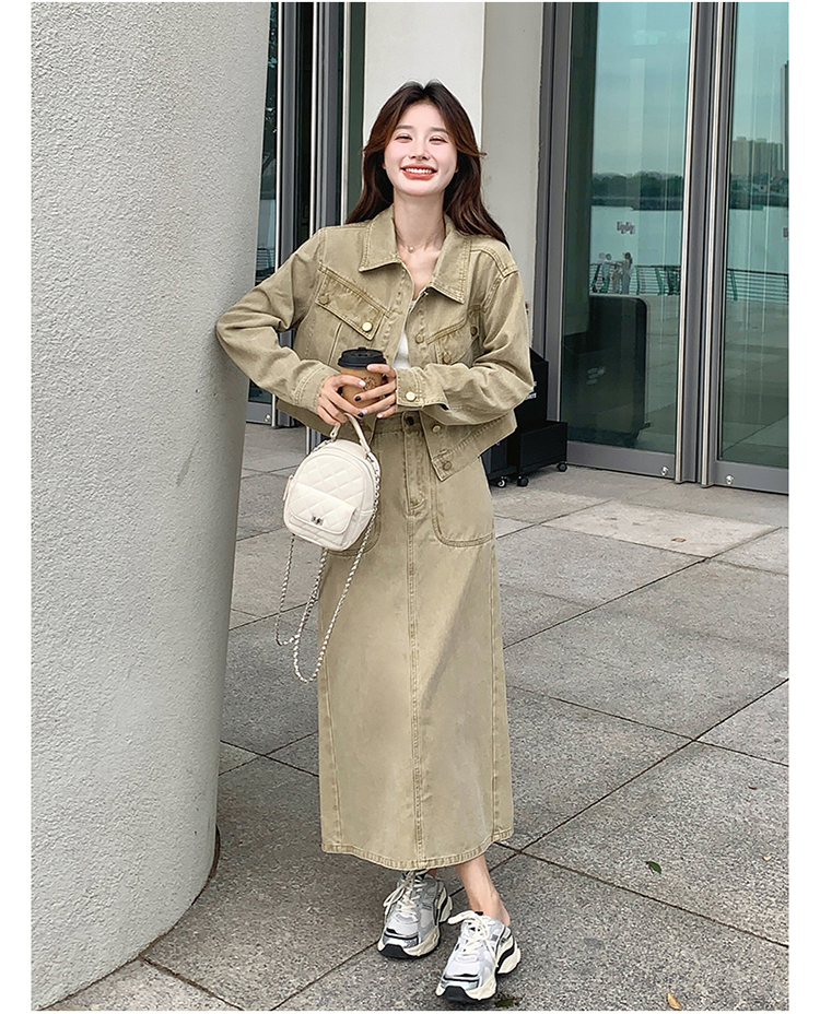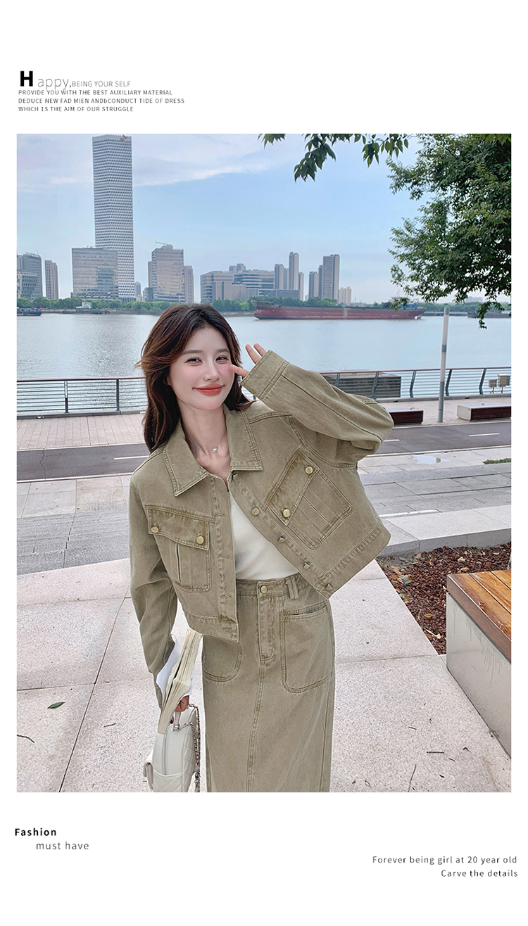 獨家訂製│2件式 韓系甜酷風翻領外套+A字裙(10H7091)