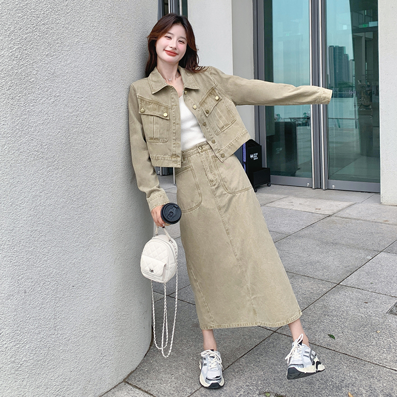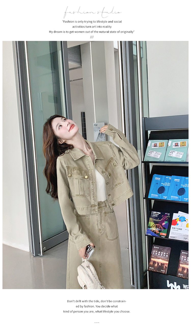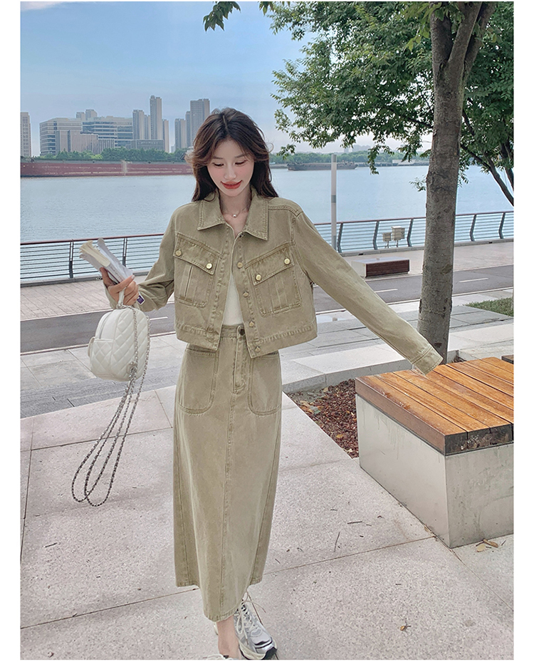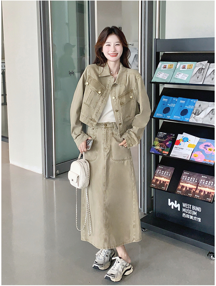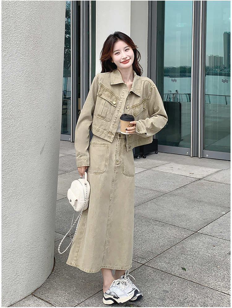 獨家訂製│2件式 韓系甜酷風翻領外套+A字裙(10H7091)