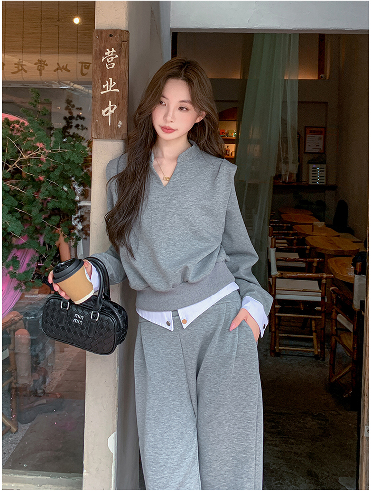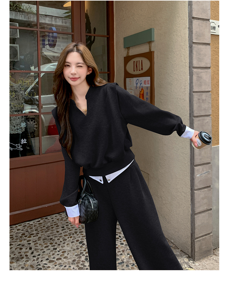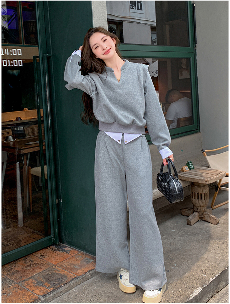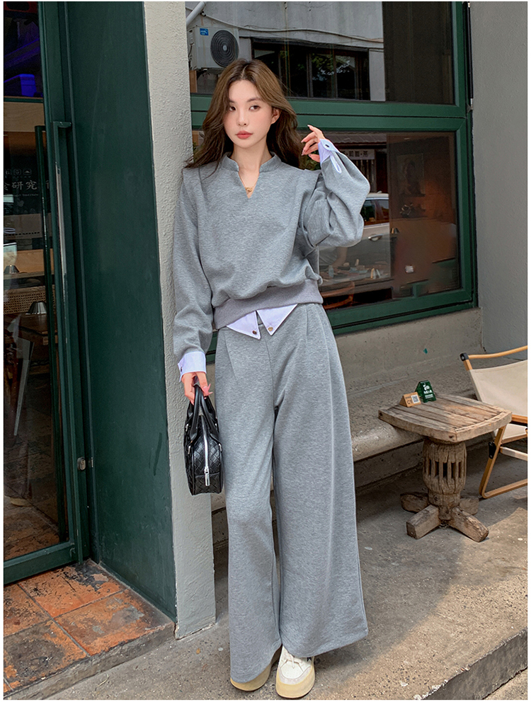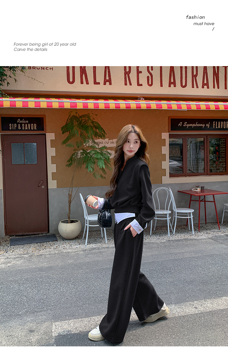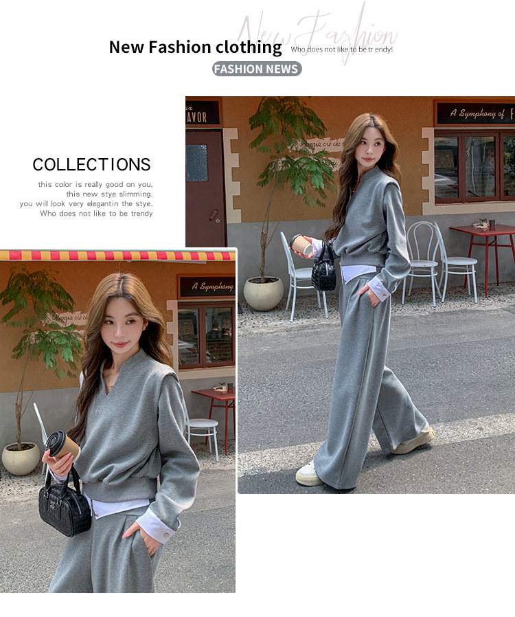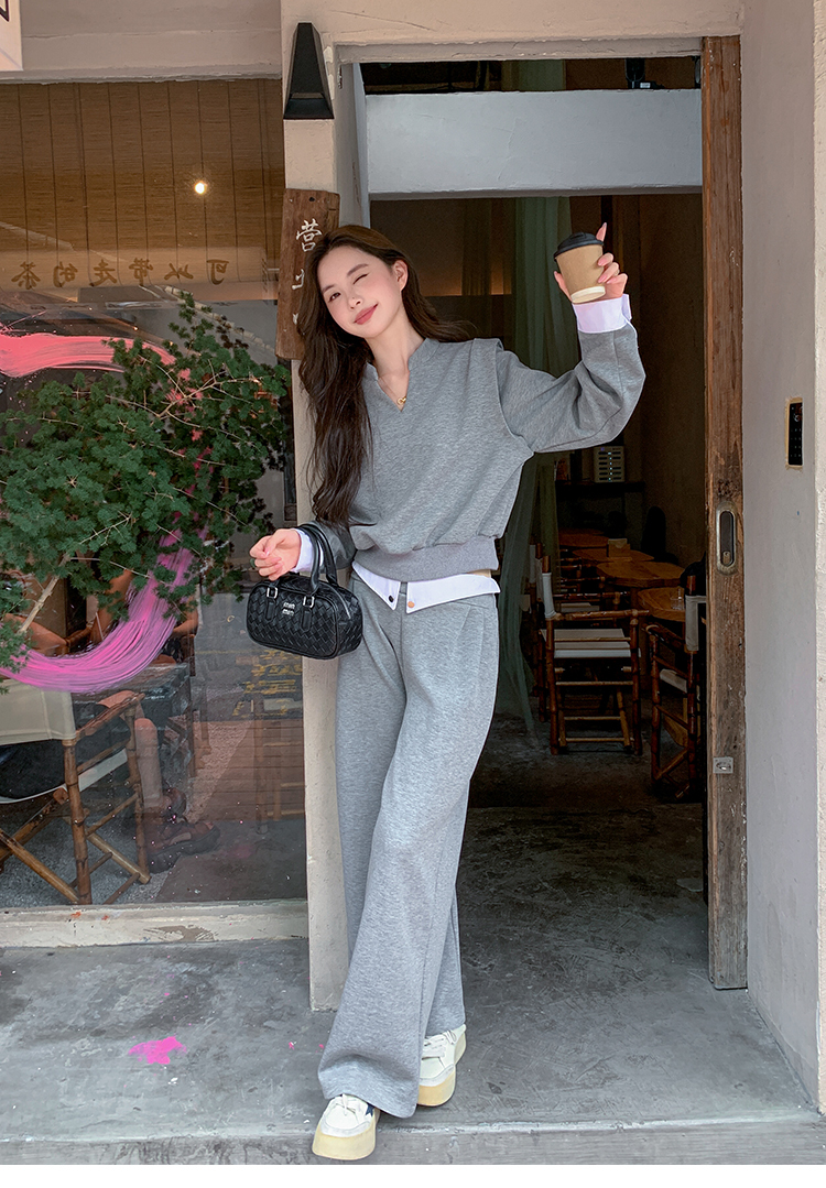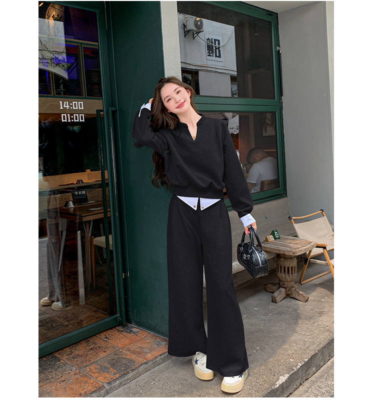 獨家訂製│2色2件式 韓系甜酷風假兩件式上衣+闊腿褲(10H7140)