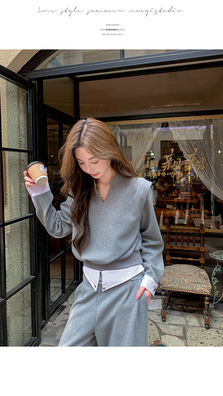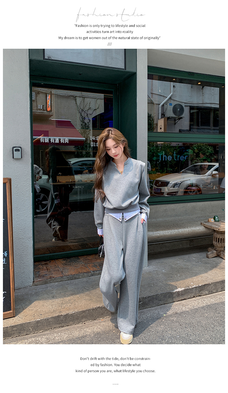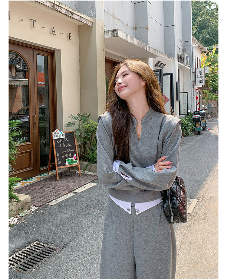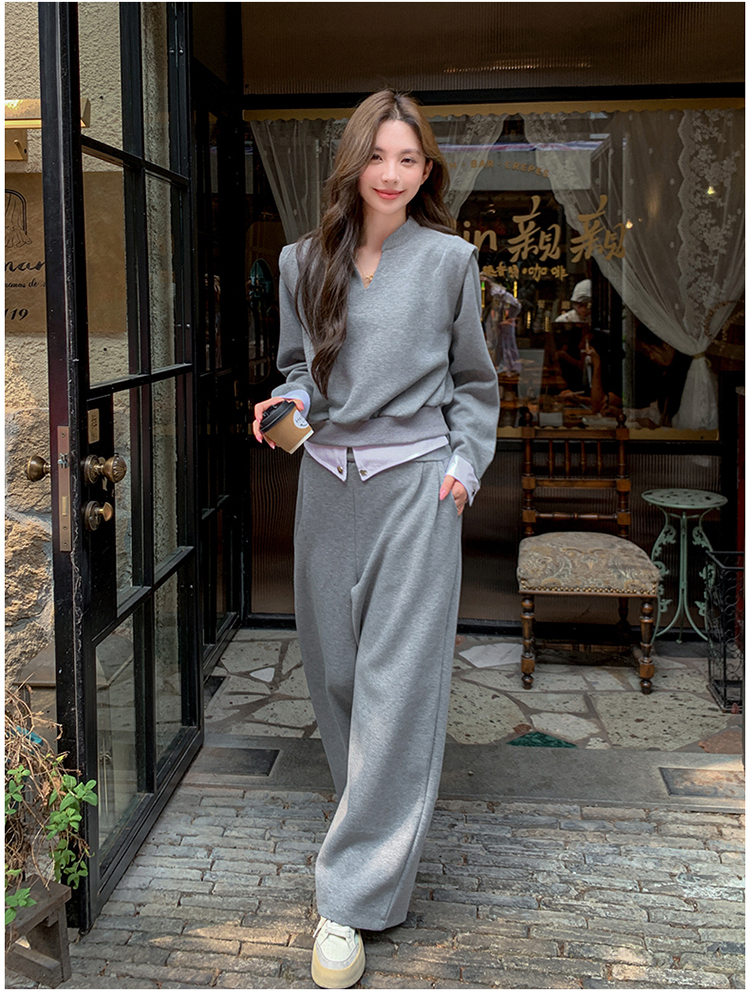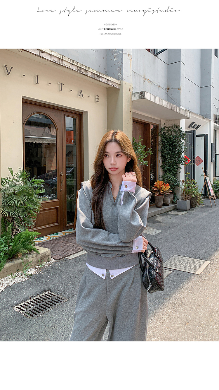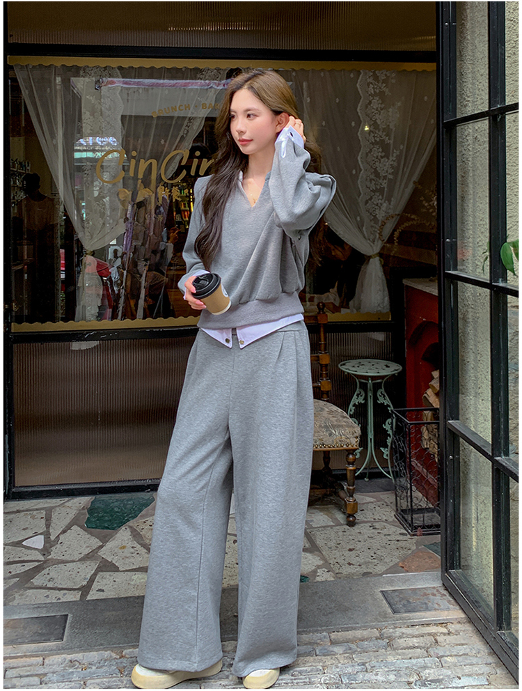 獨家訂製│2色2件式 韓系甜酷風假兩件式上衣+闊腿褲(10H7140)