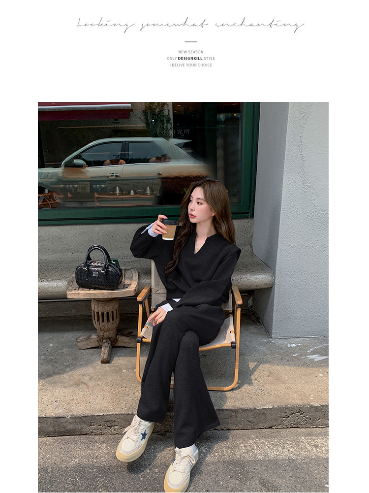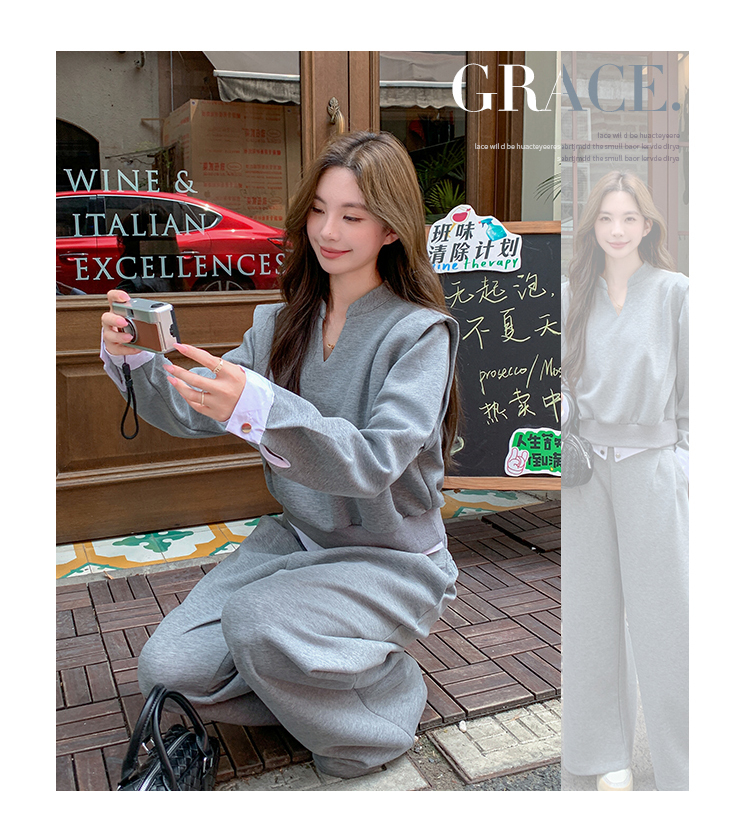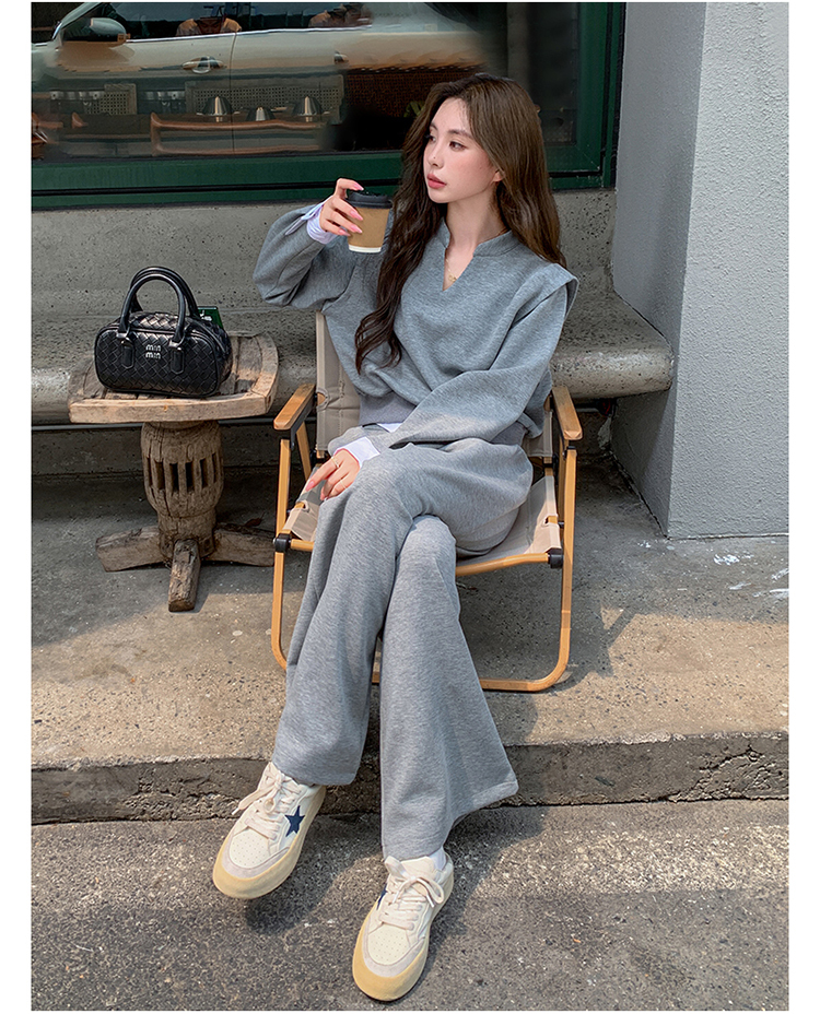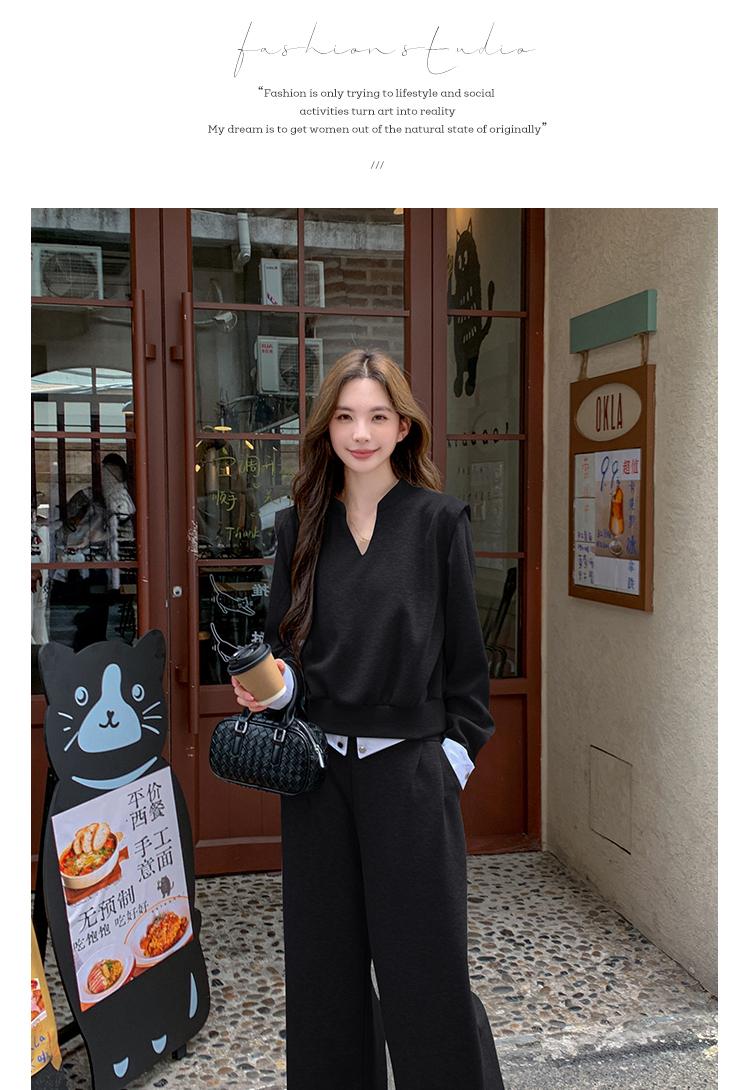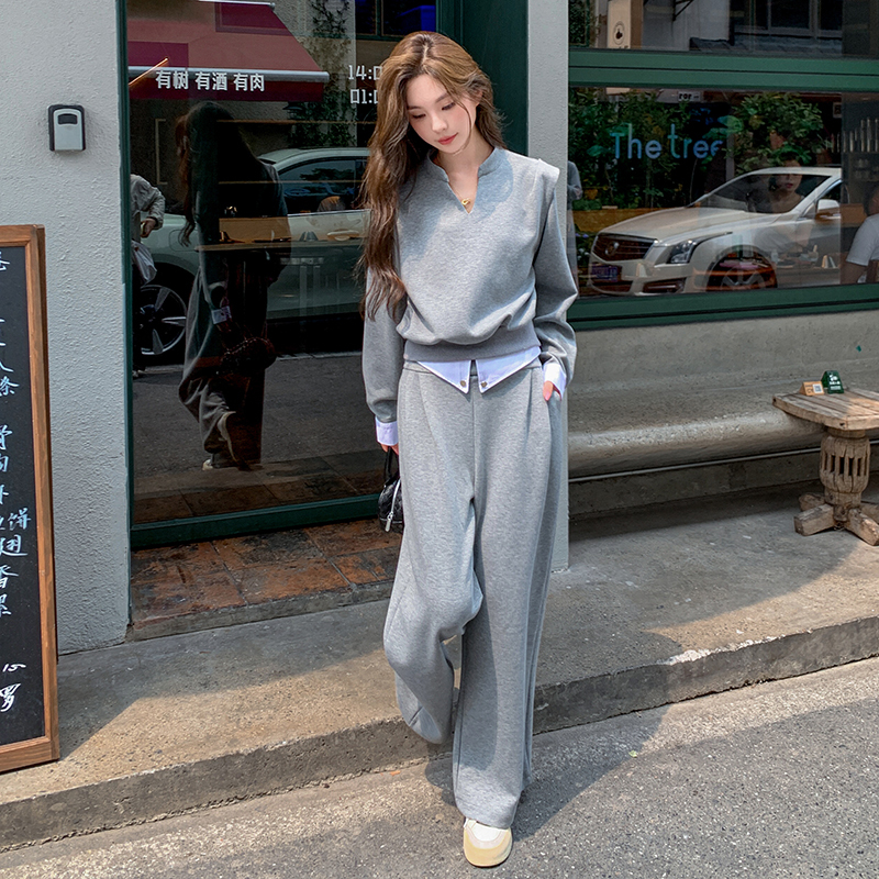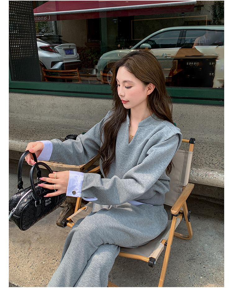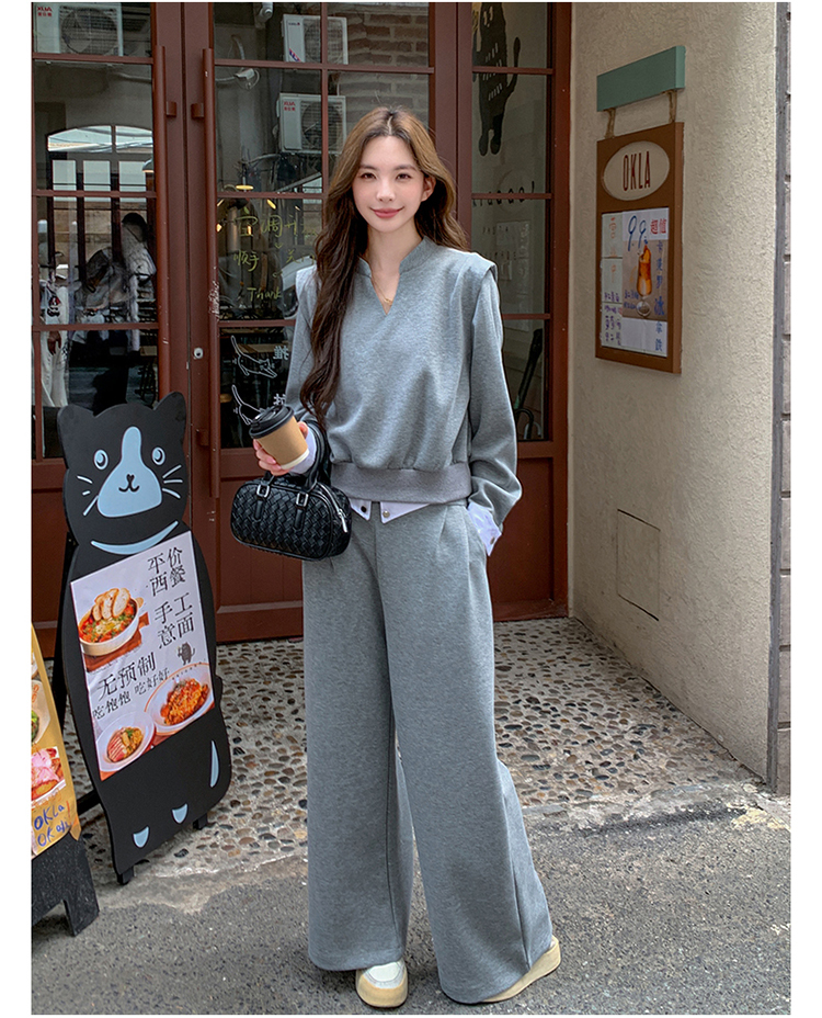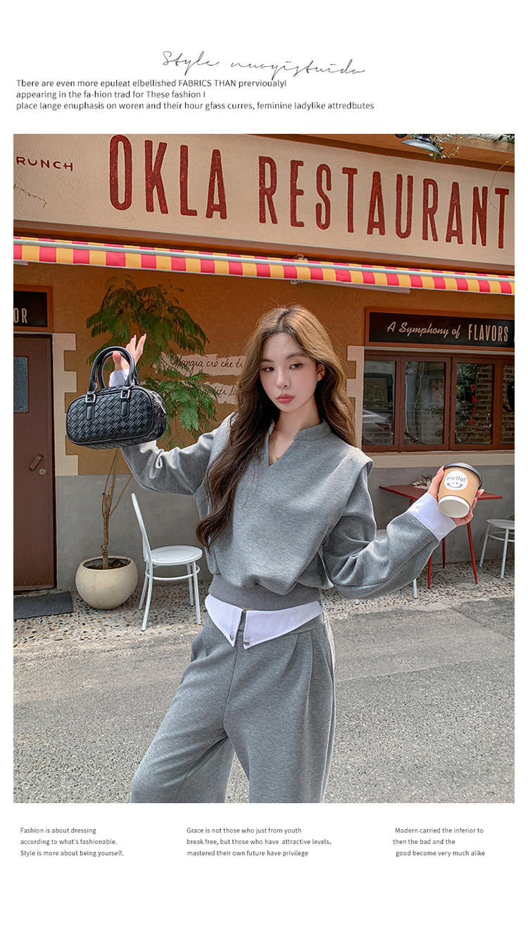 獨家訂製│2色2件式 韓系甜酷風假兩件式上衣+闊腿褲(10H7140)