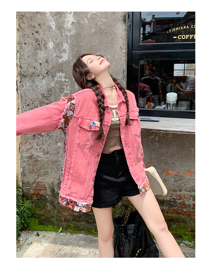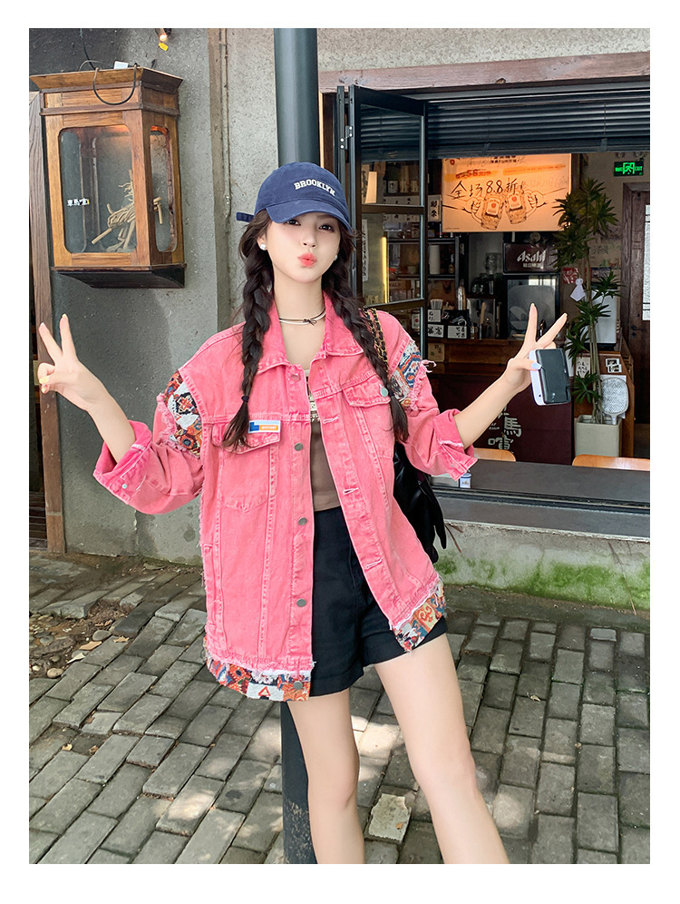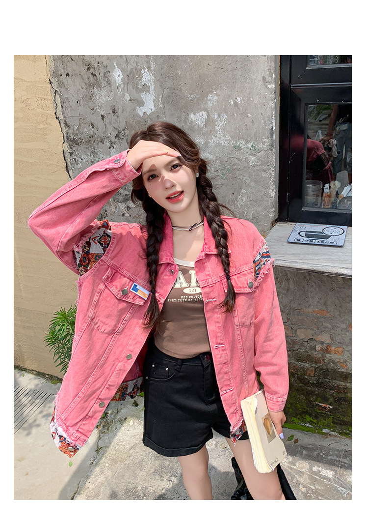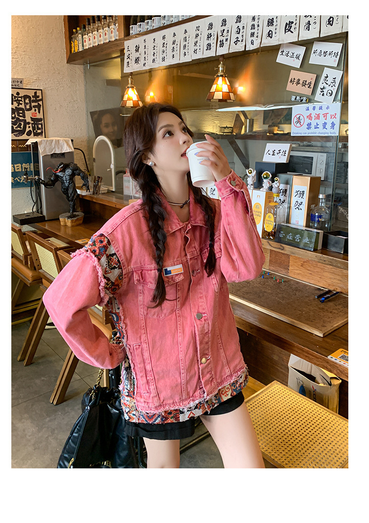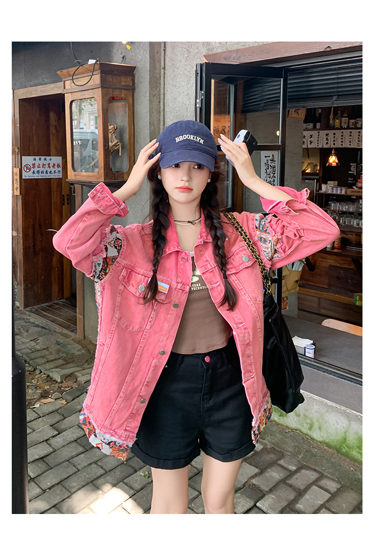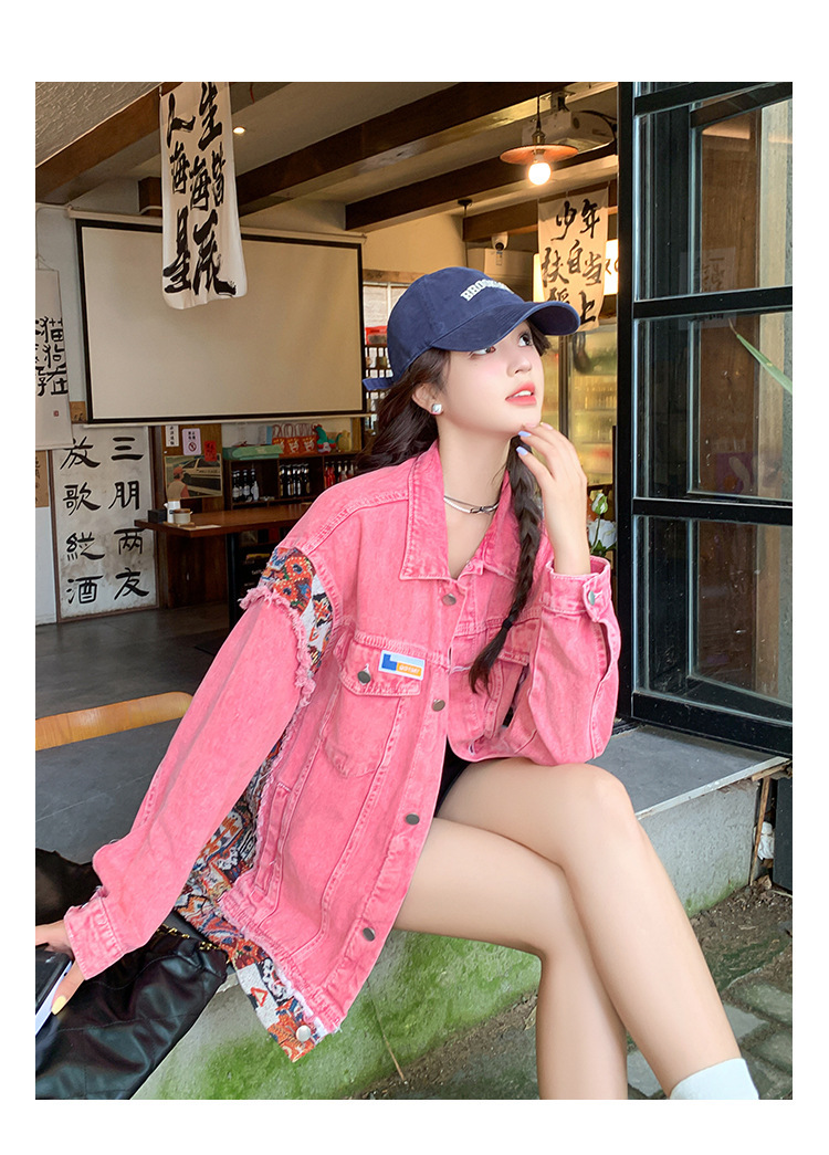 獨家訂製│韓系甜酷風塗鴉造型拼接牛仔外套(10H7144)
