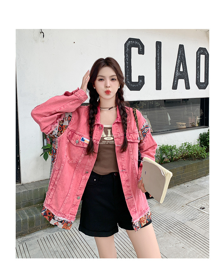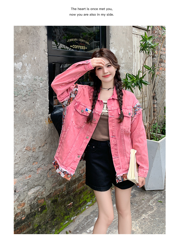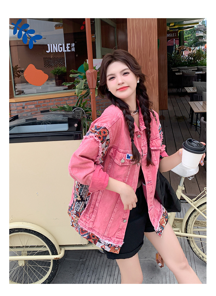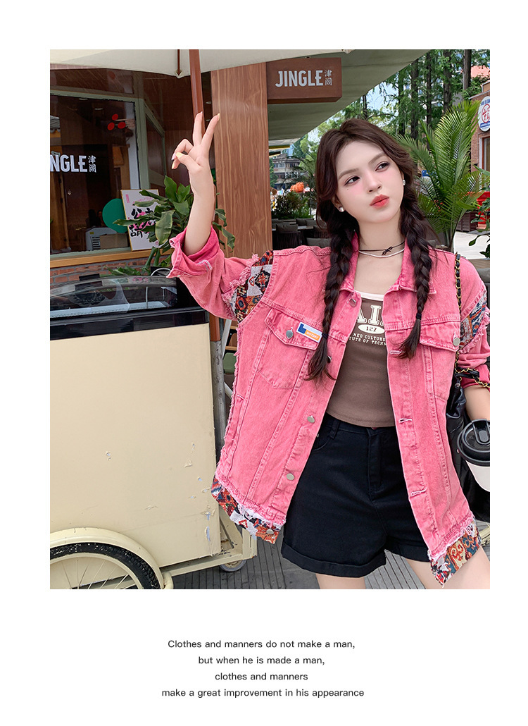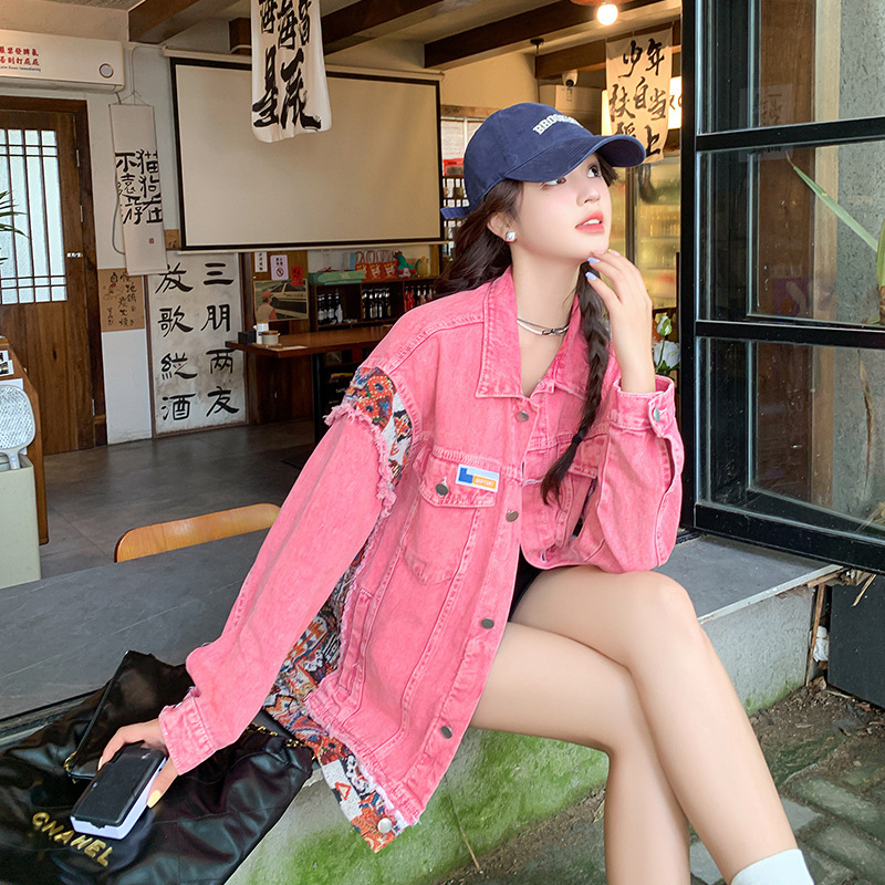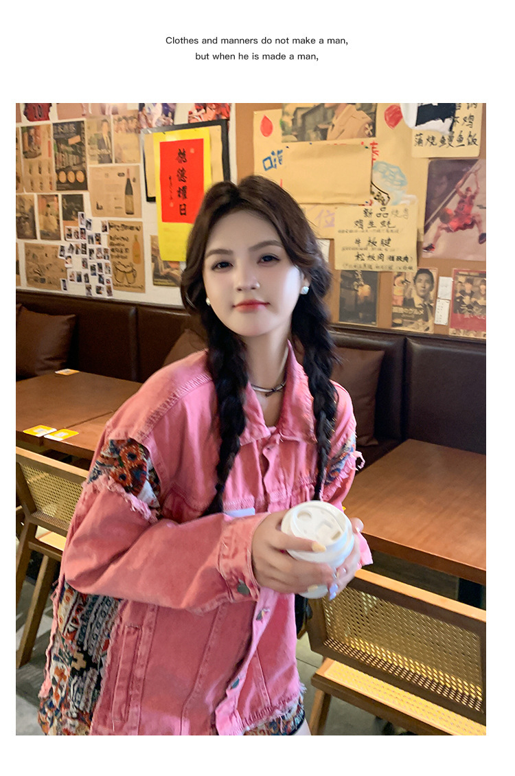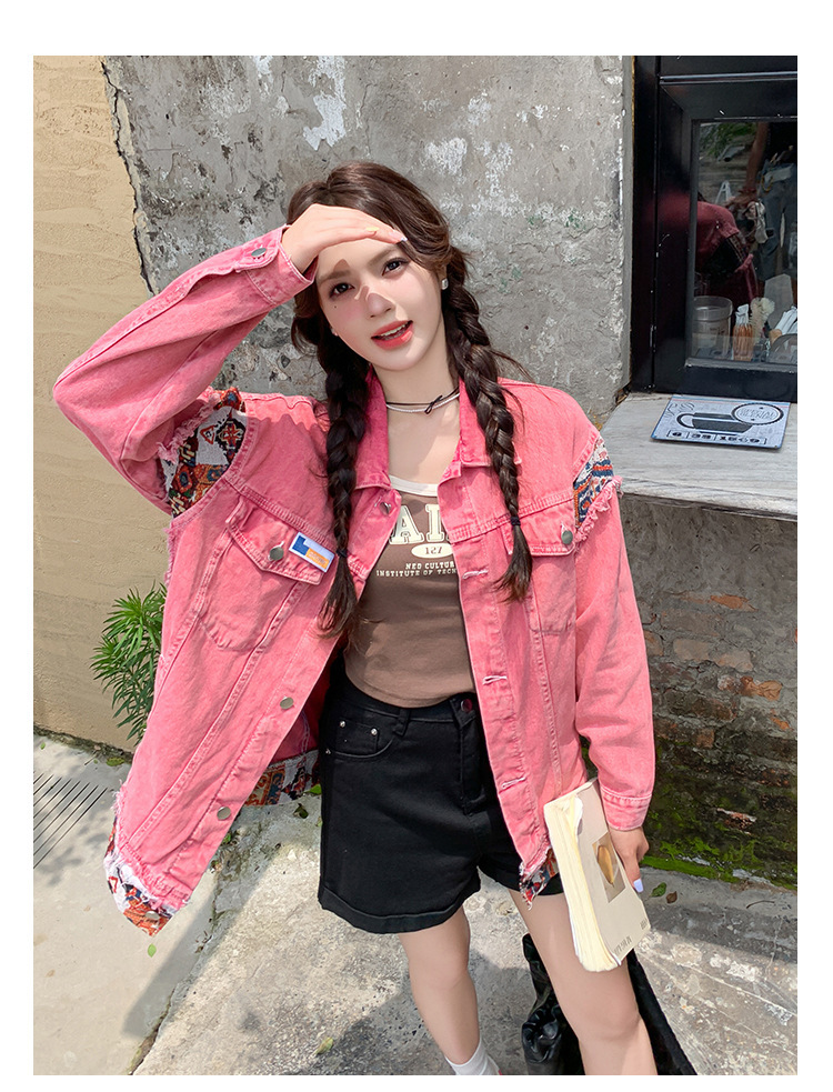 獨家訂製│韓系甜酷風塗鴉造型拼接牛仔外套(10H7144)