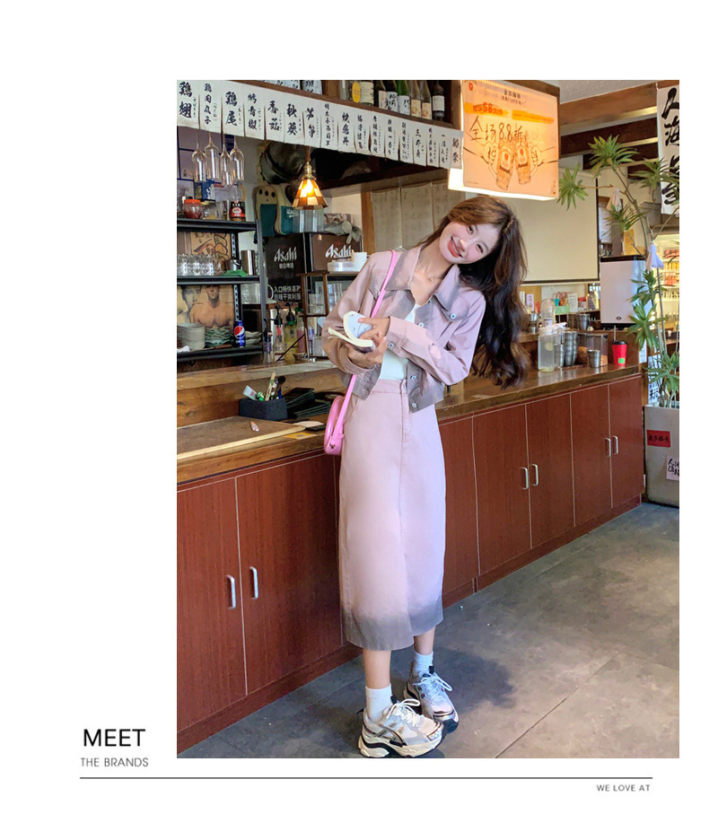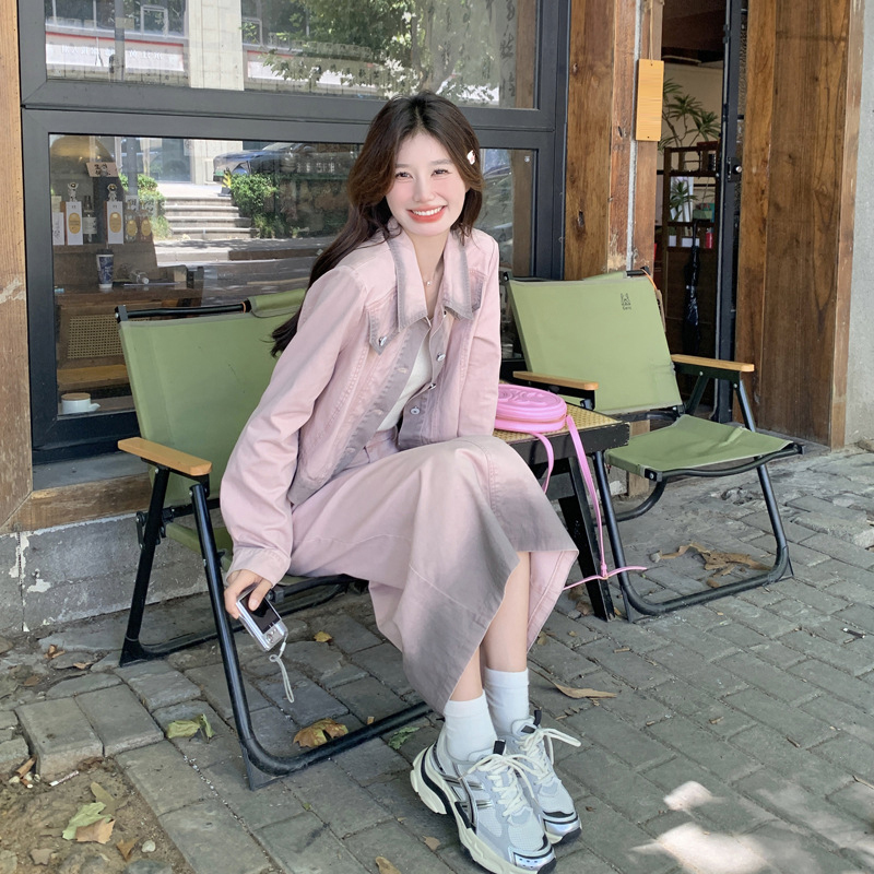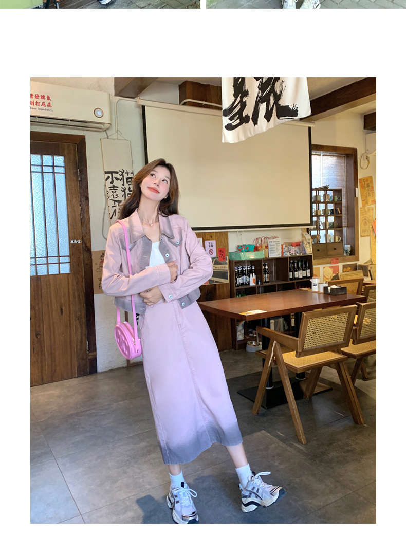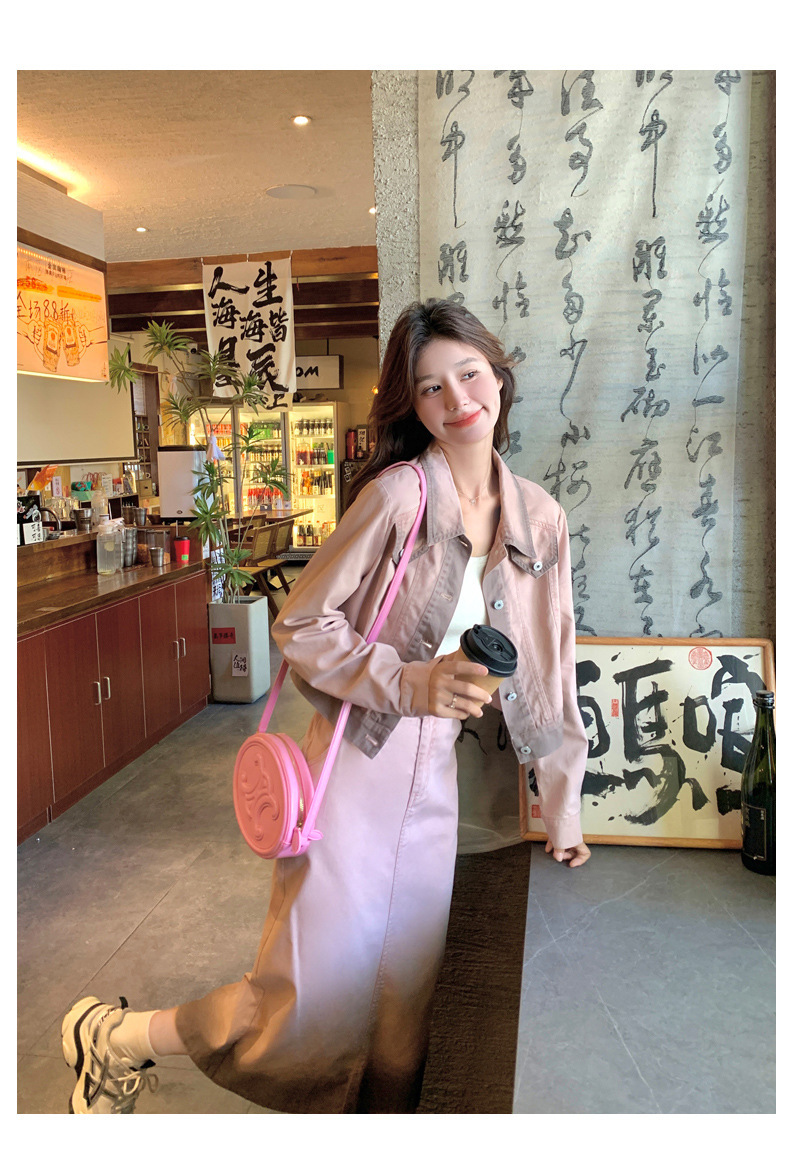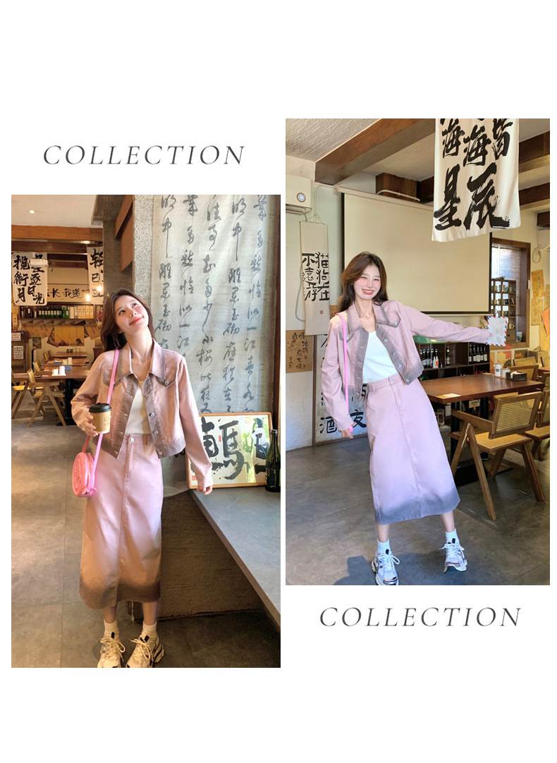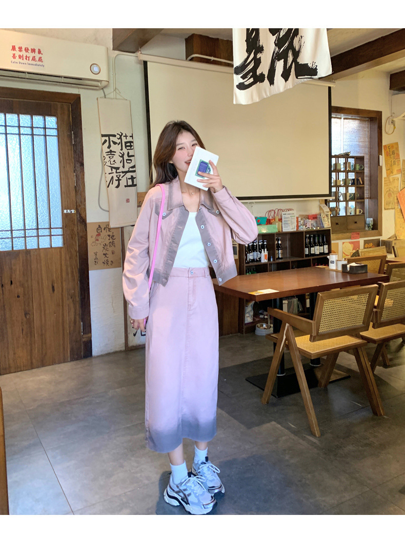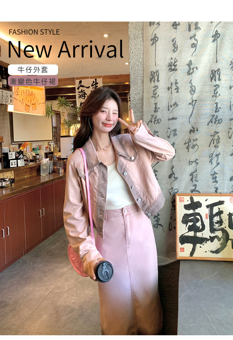 獨家訂製│2色2件式 韓系甜酷風漸變色牛仔外套+A字裙(10H7187)