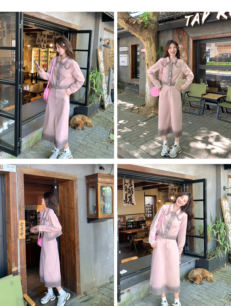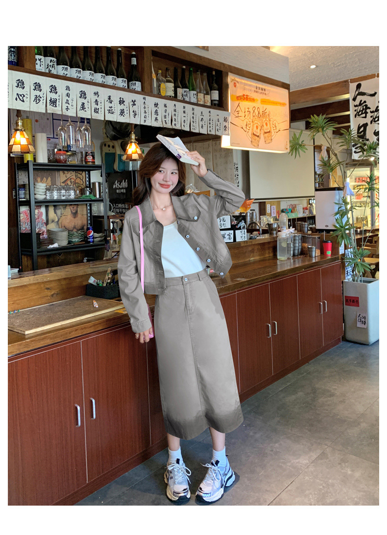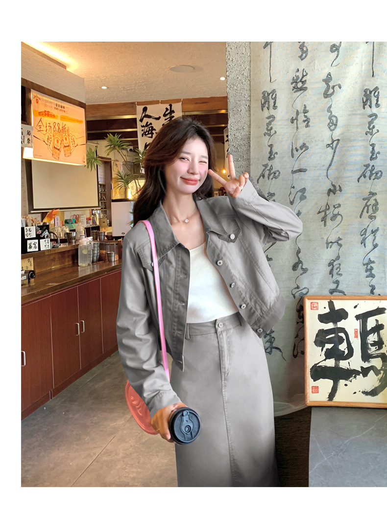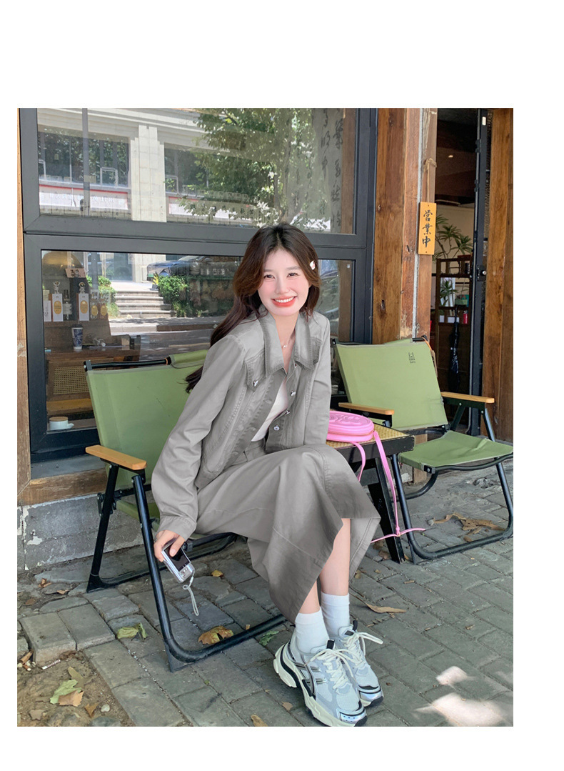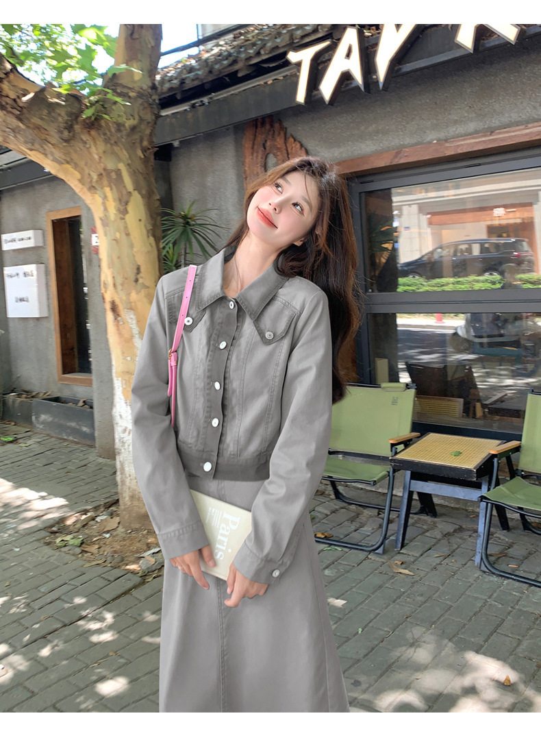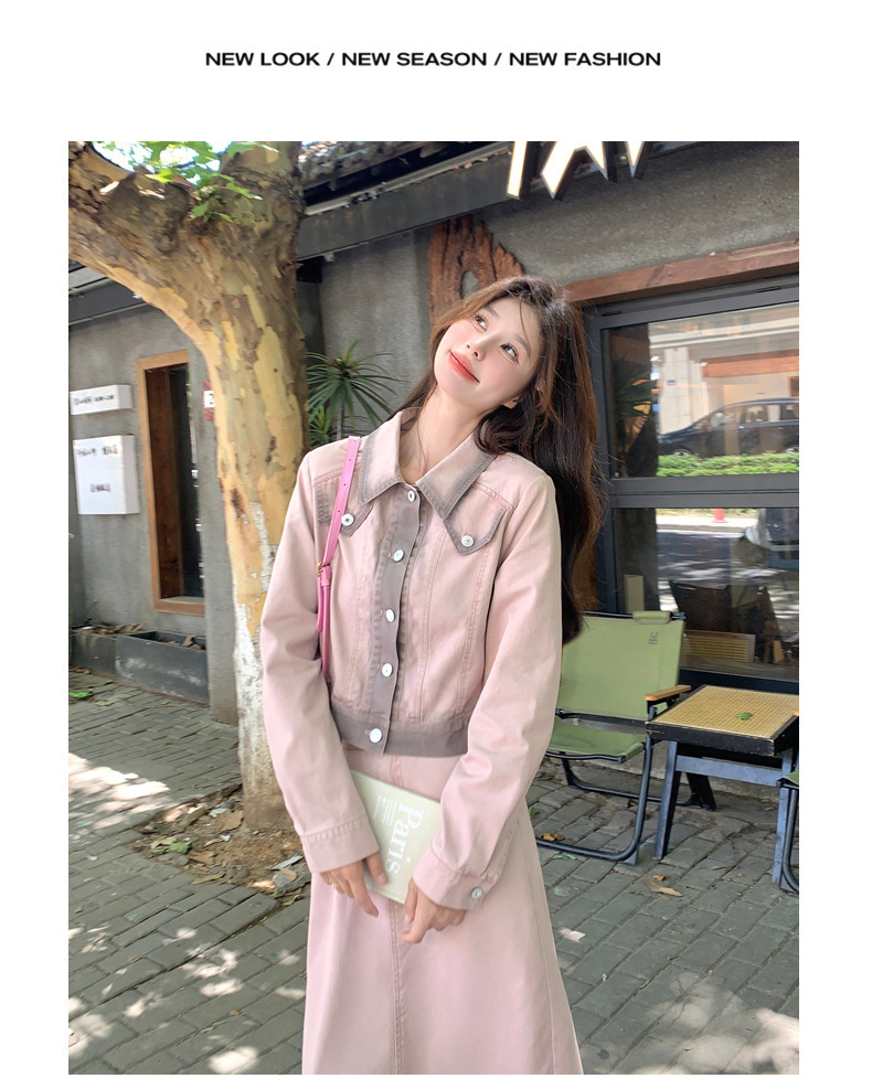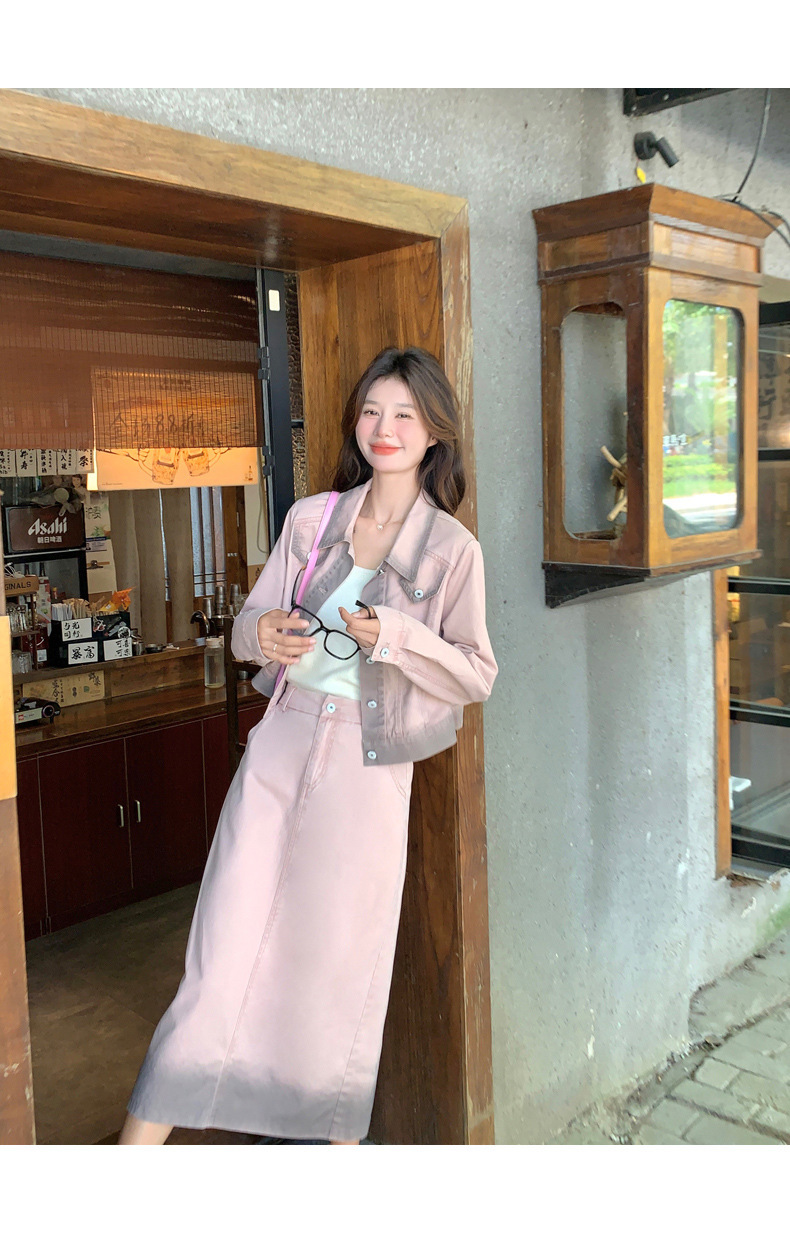 獨家訂製│2色2件式 韓系甜酷風漸變色牛仔外套+A字裙(10H7187)
