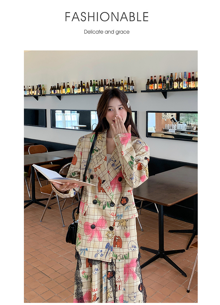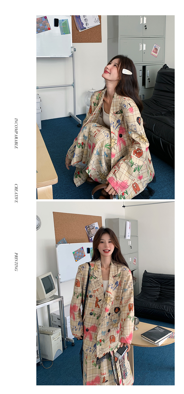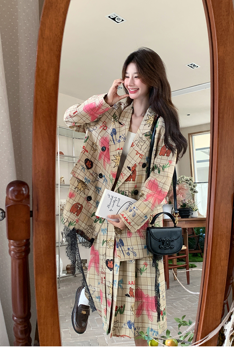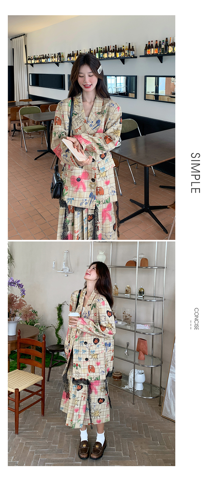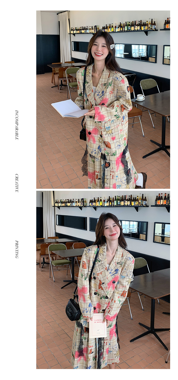 獨家訂製│2件式 韓系復古風塗鴉西裝外套+A字裙(10H7249)
