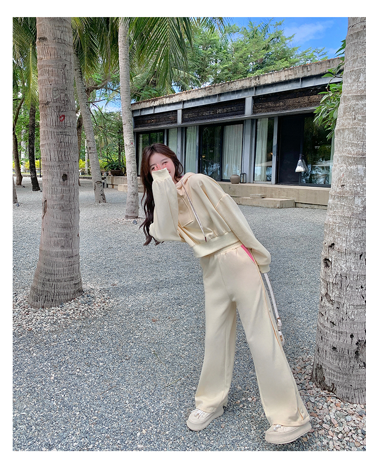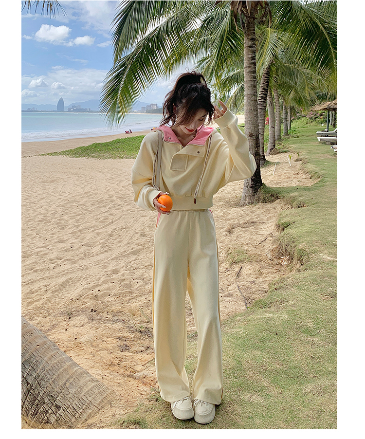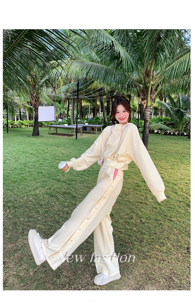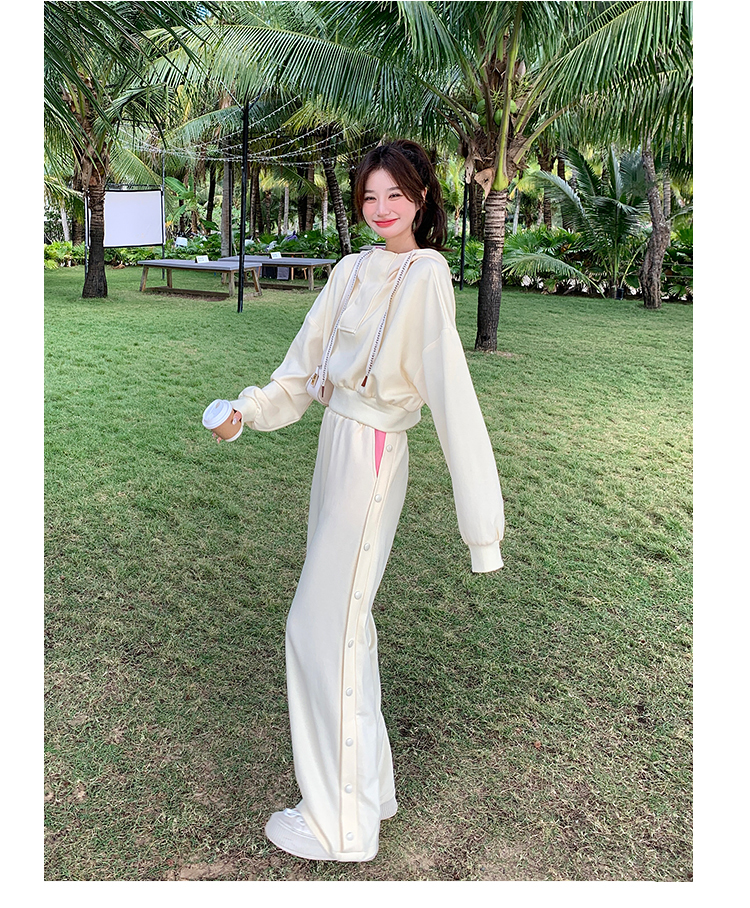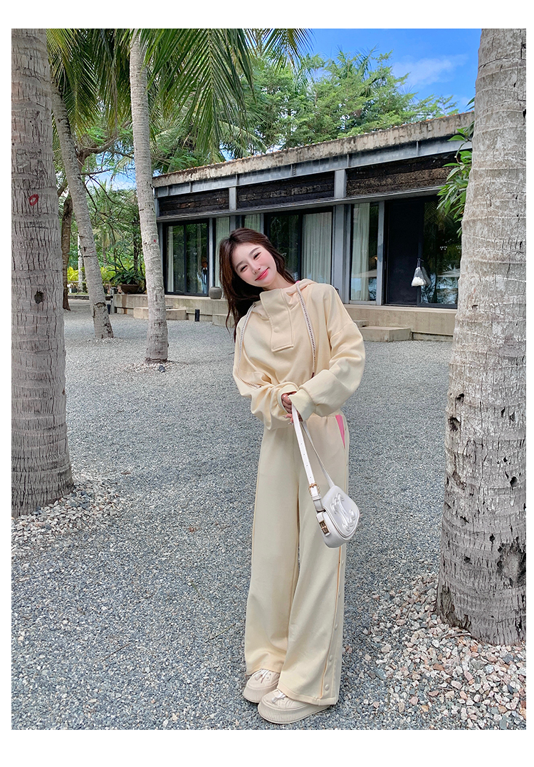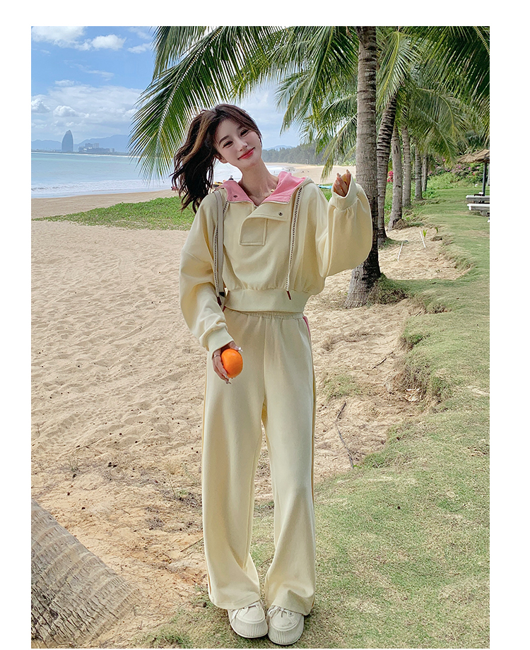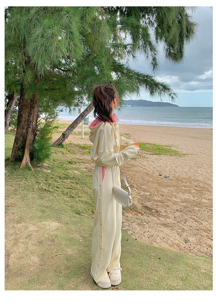獨家訂製│2件式 韓系休閒感撞色連帽上衣+排釦造型闊腿褲(10H7266)