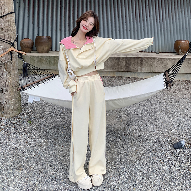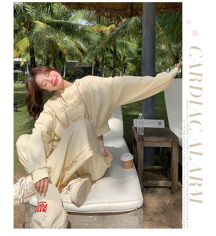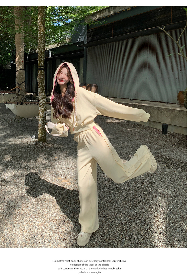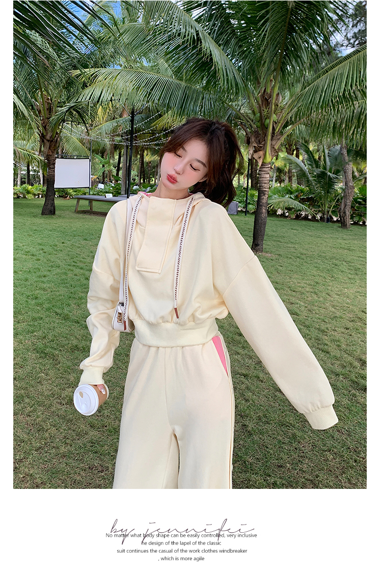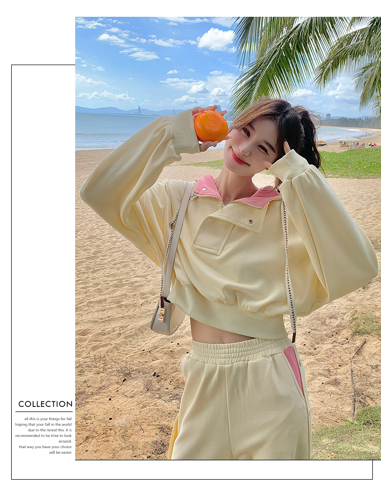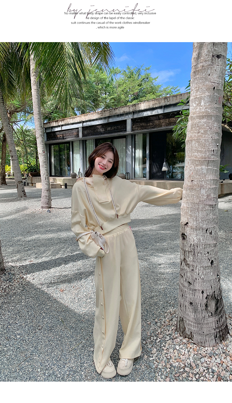 獨家訂製│2件式 韓系休閒感撞色連帽上衣+排釦造型闊腿褲(10H7266)