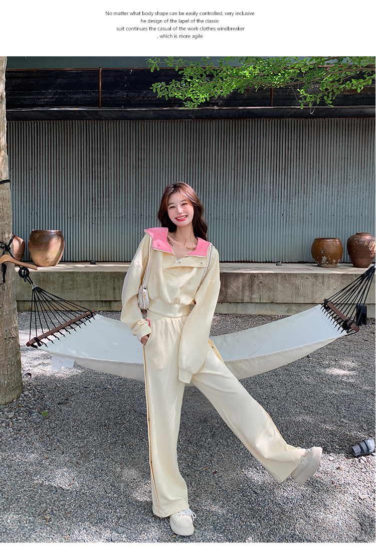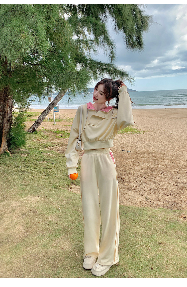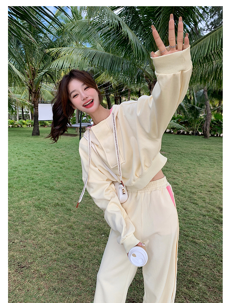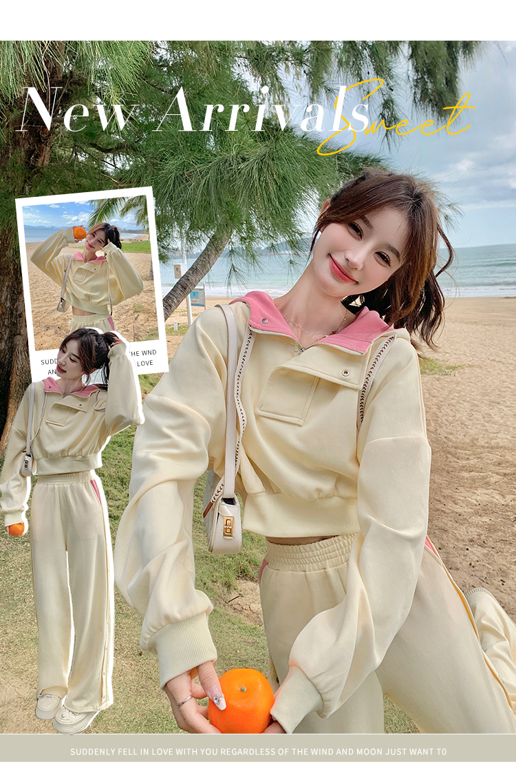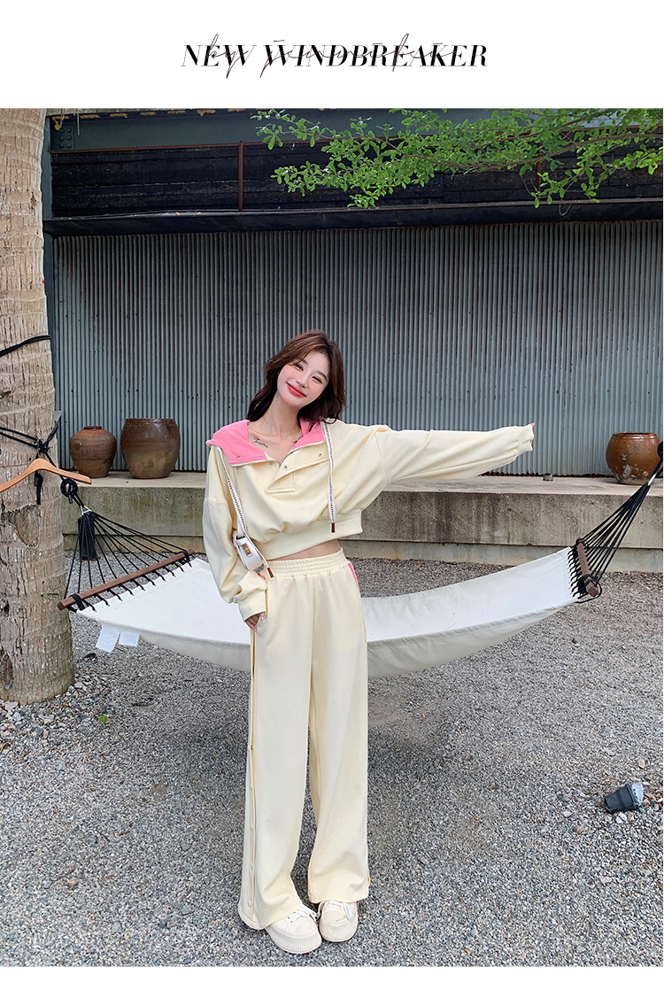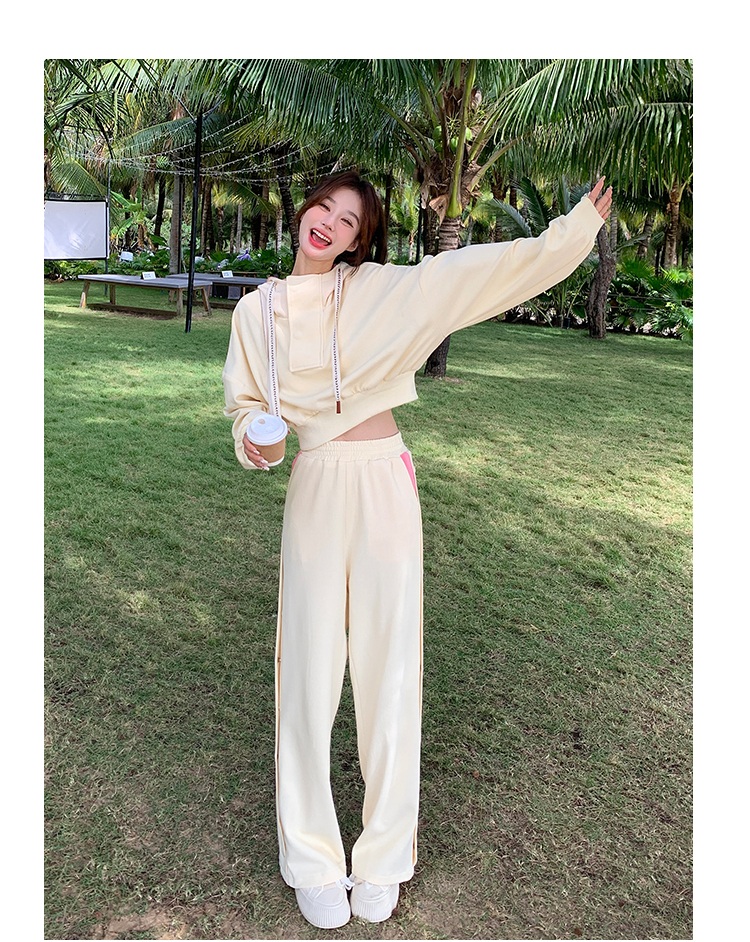 獨家訂製│2件式 韓系休閒感撞色連帽上衣+排釦造型闊腿褲(10H7266)