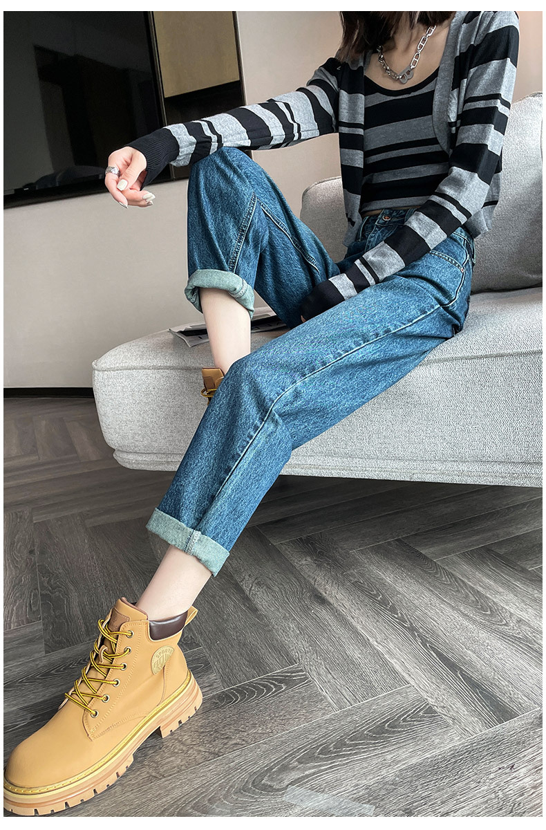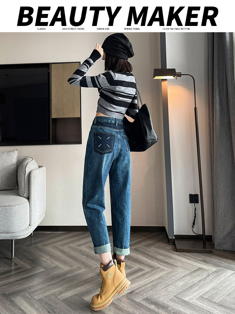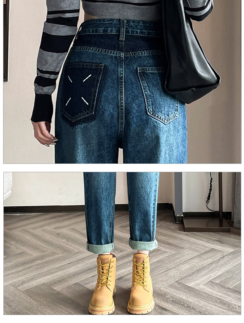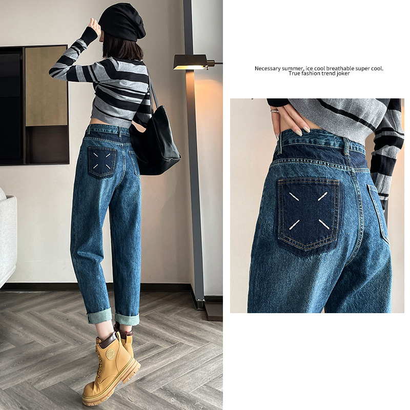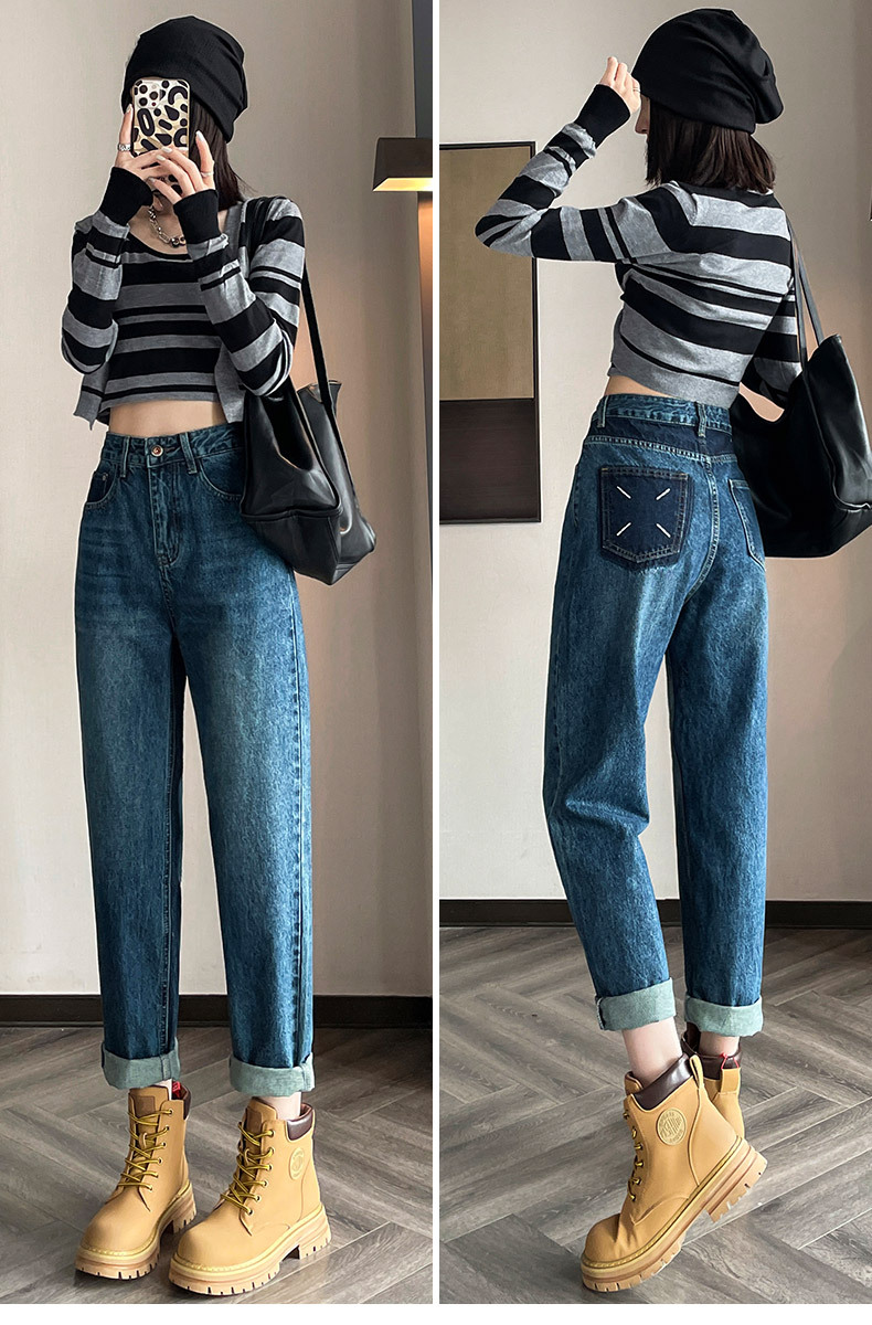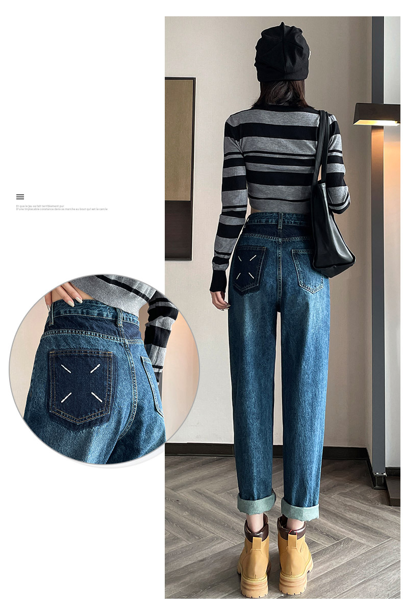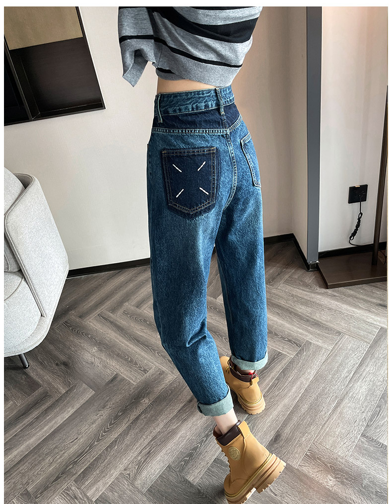 限量特惠|舒適百搭撞色口袋造型捲邊九分牛仔哈倫褲(10M2031)