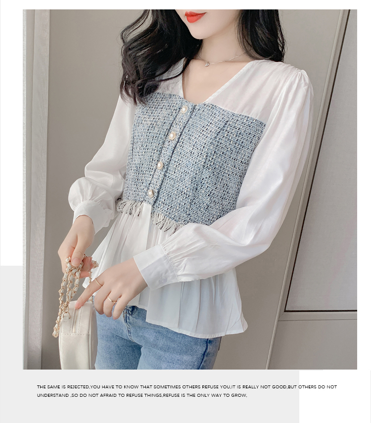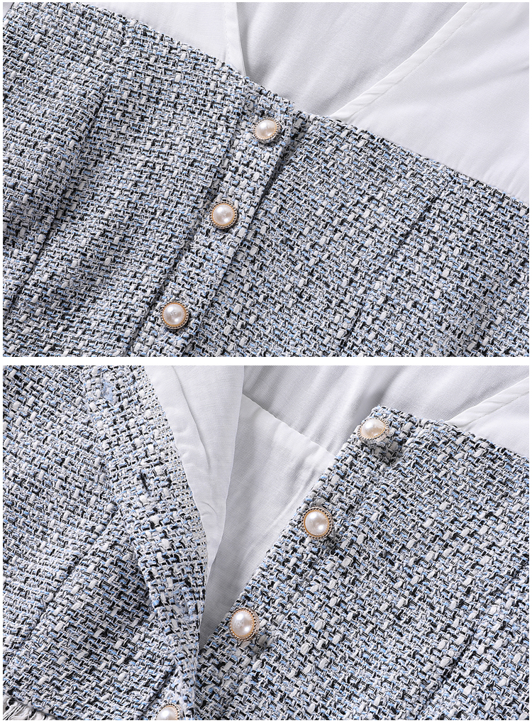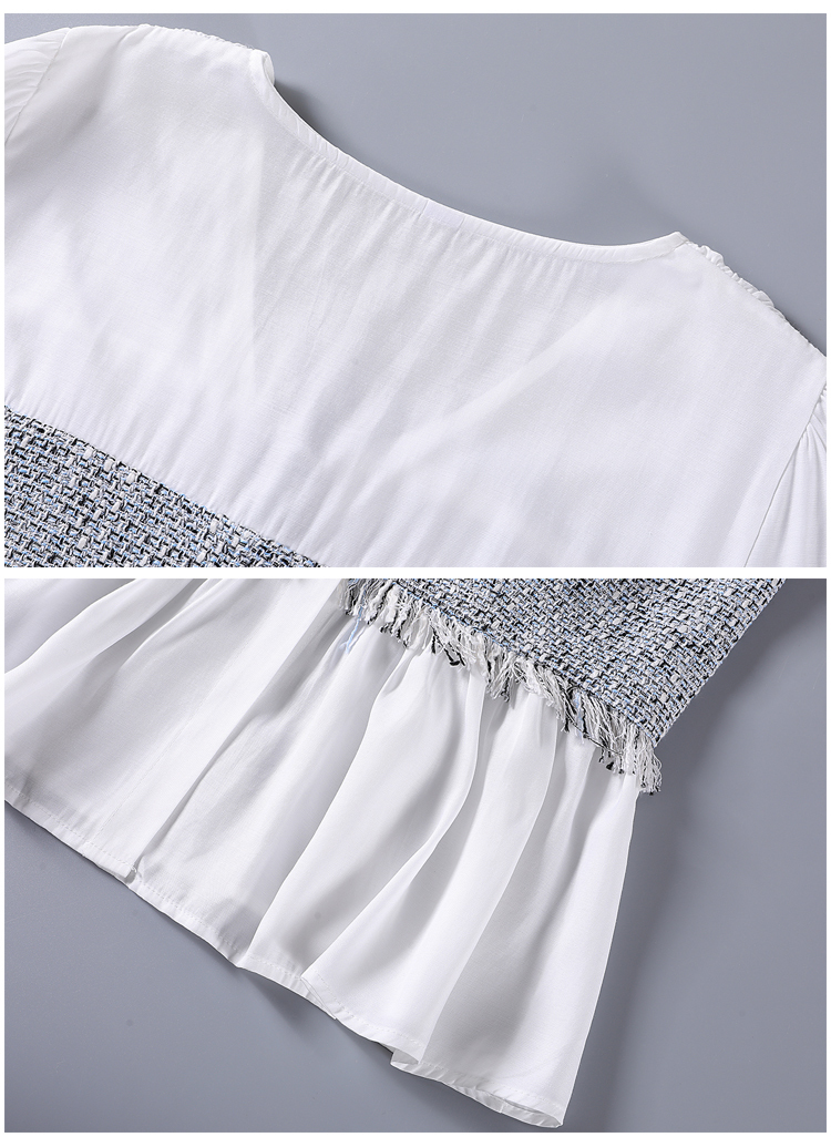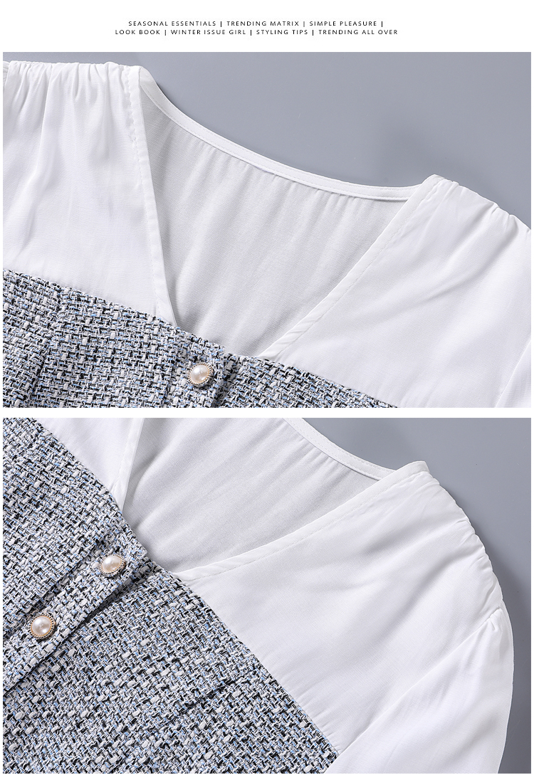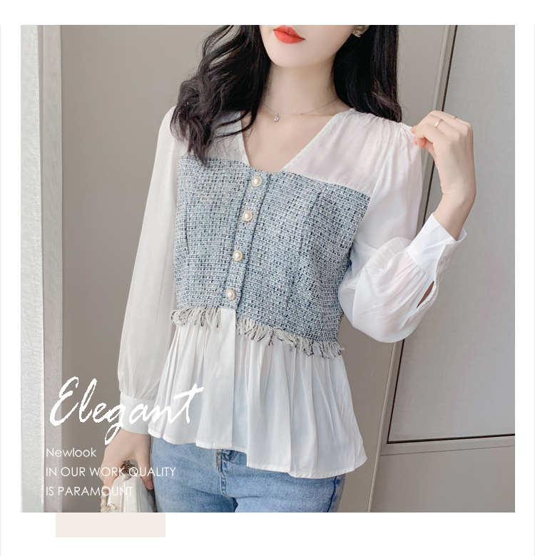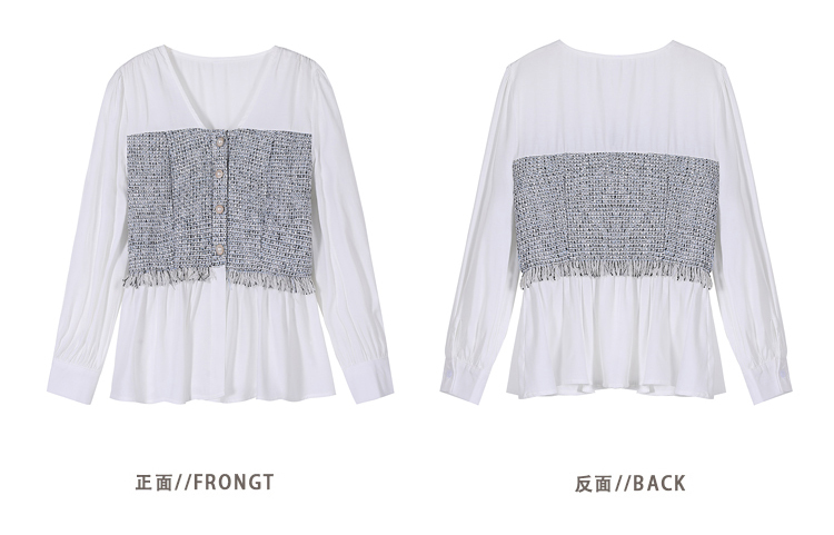 限量特惠|氣質甜美拼接粗花呢造型雪紡衫(10T9715)