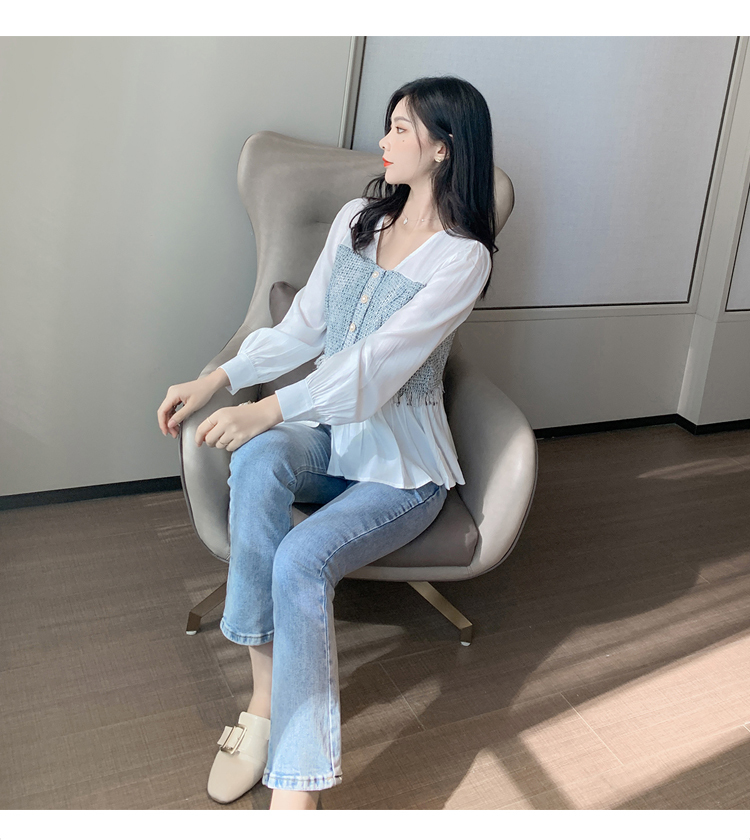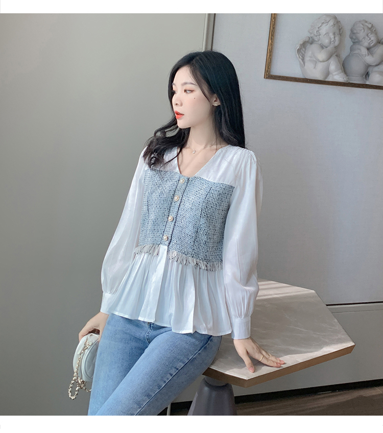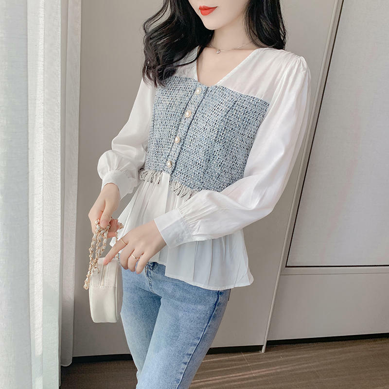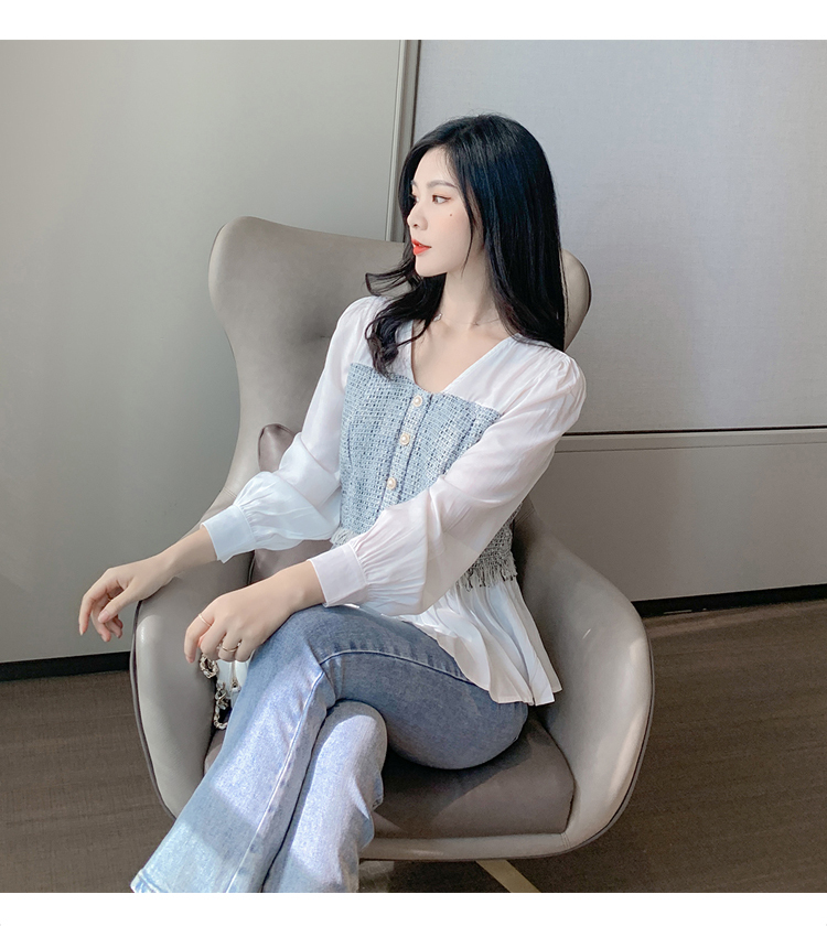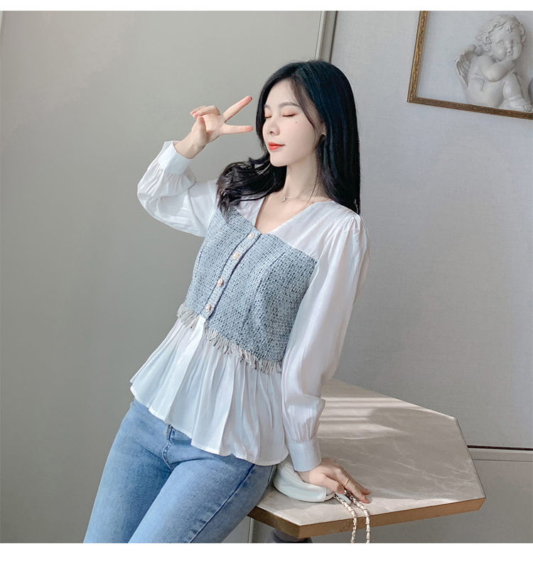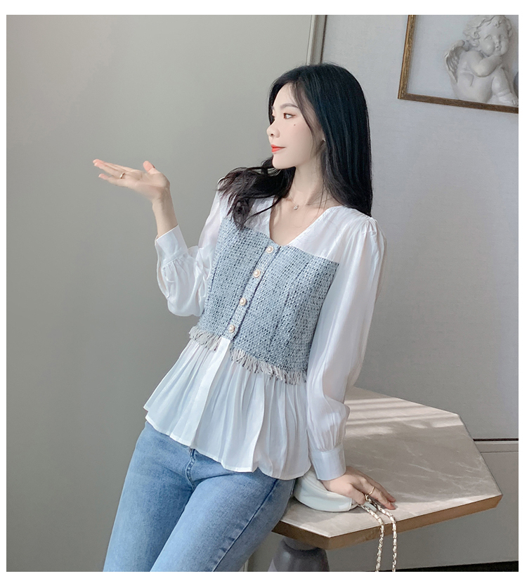 限量特惠|氣質甜美拼接粗花呢造型雪紡衫(10T9715)