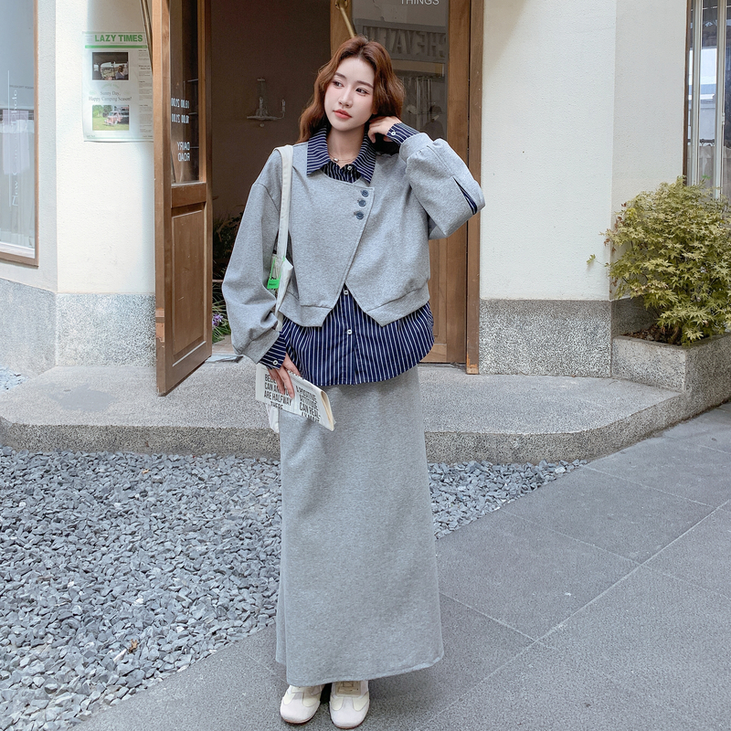 獨家訂製│2件式 假兩件式上衣+A字裙(11A1607)