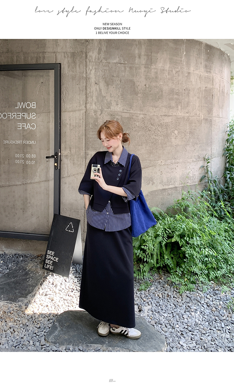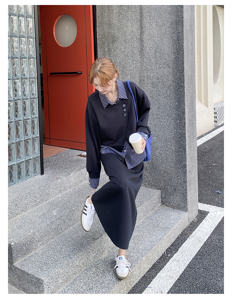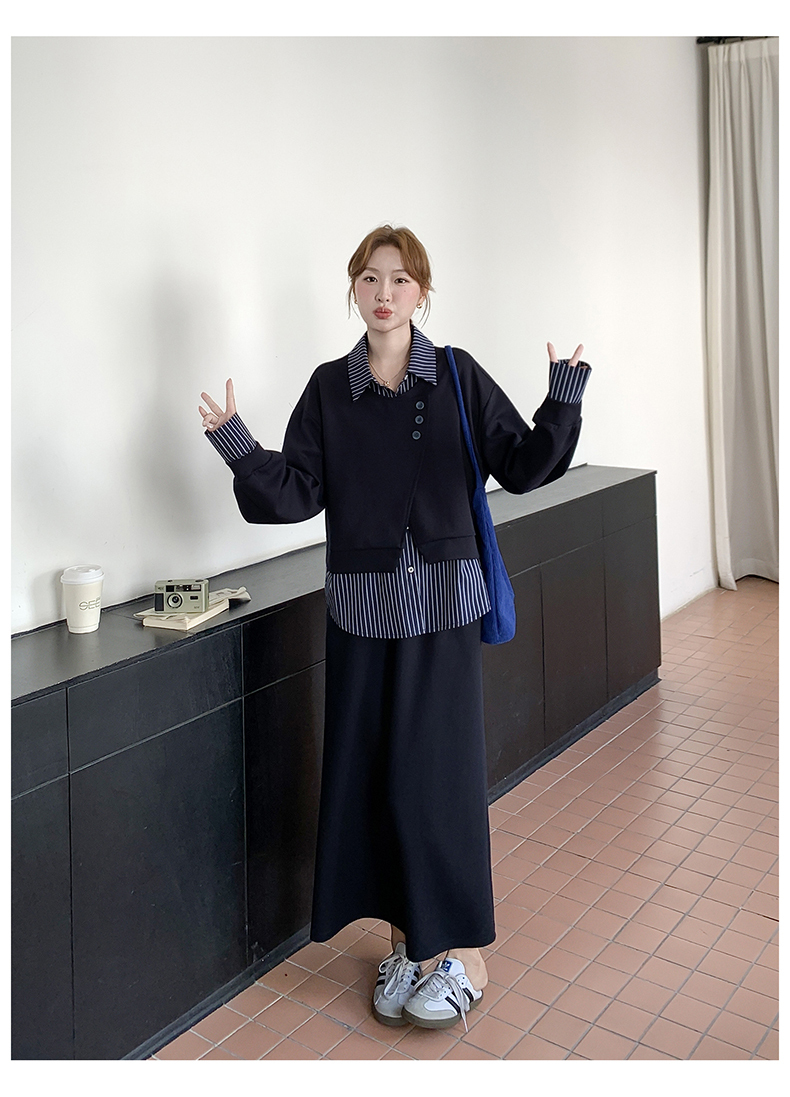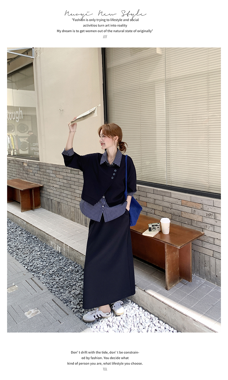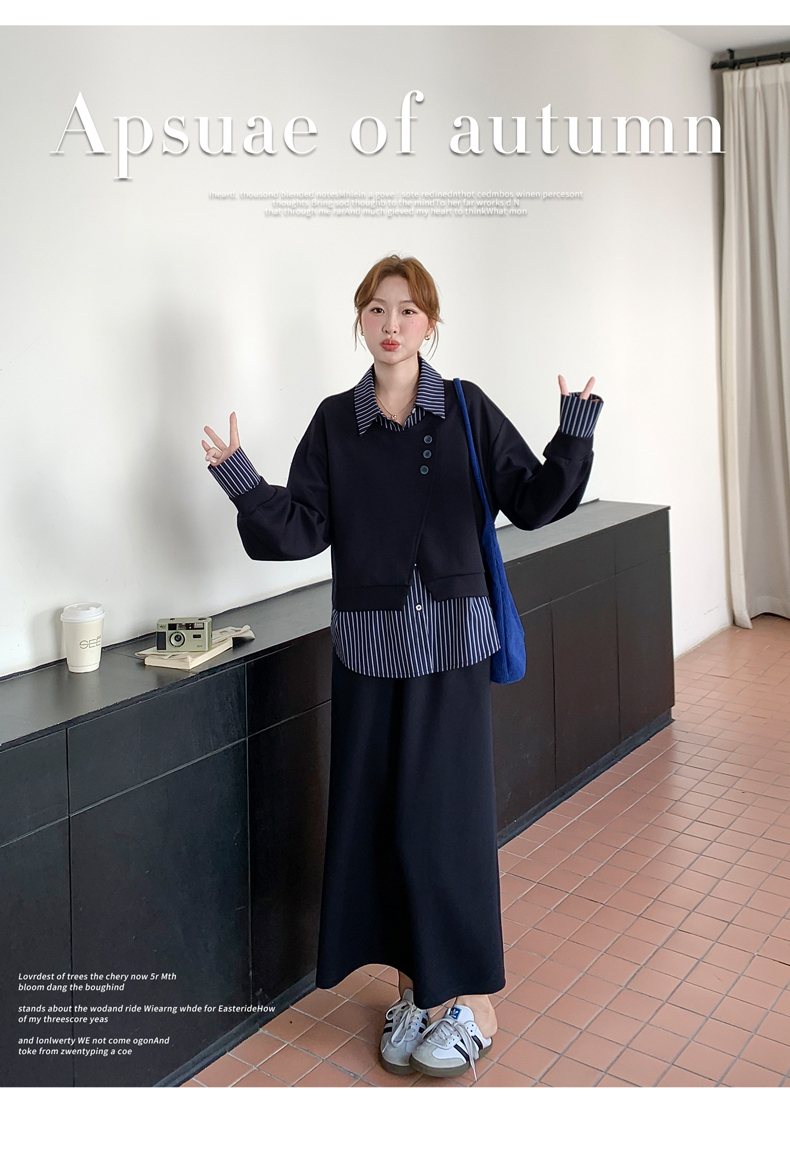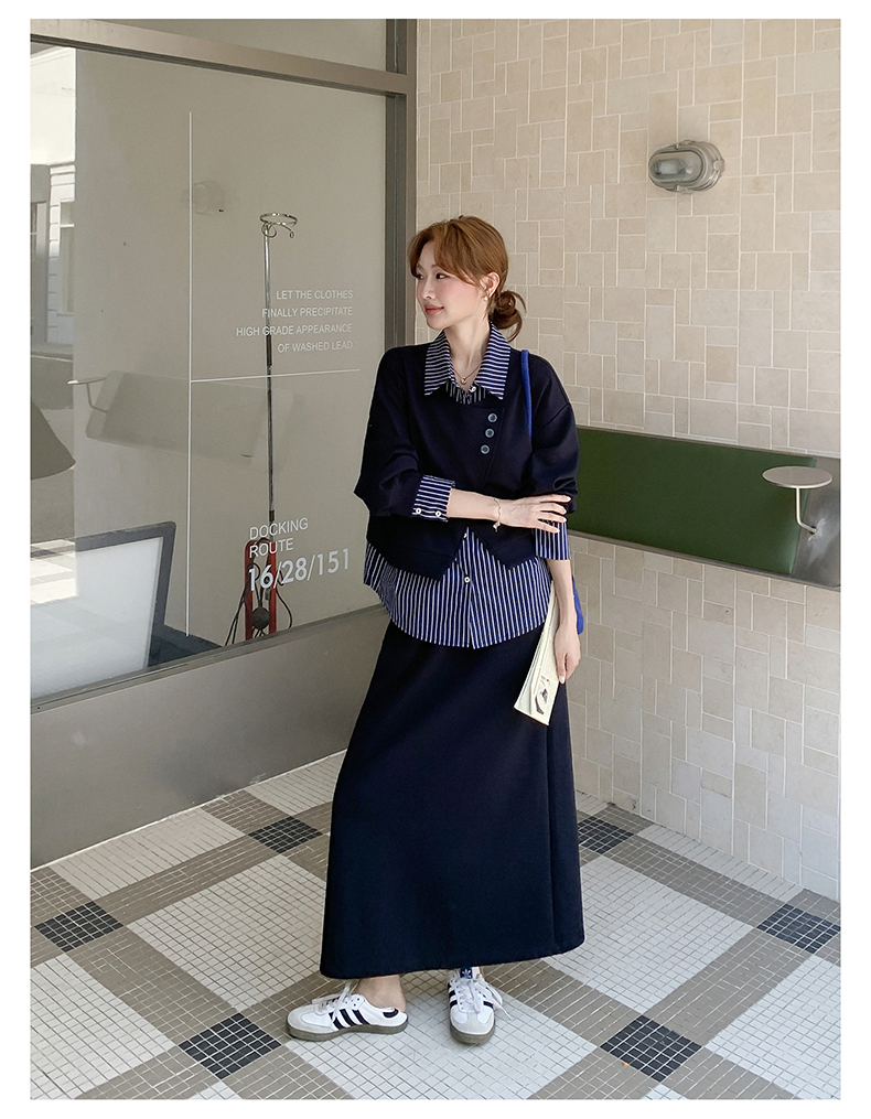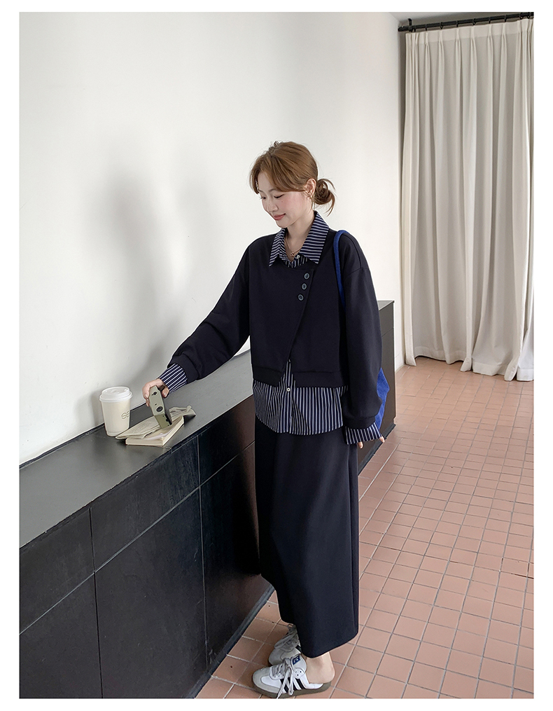 獨家訂製│2件式 條紋拼接假兩件上衣+A字裙(11A1613)