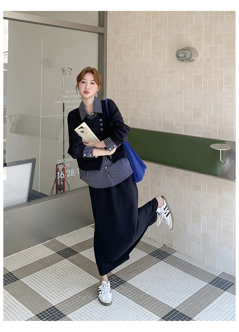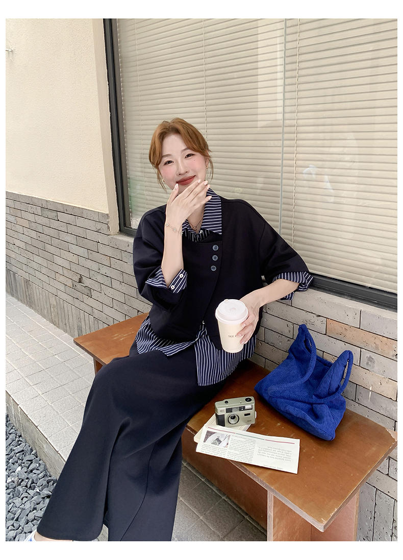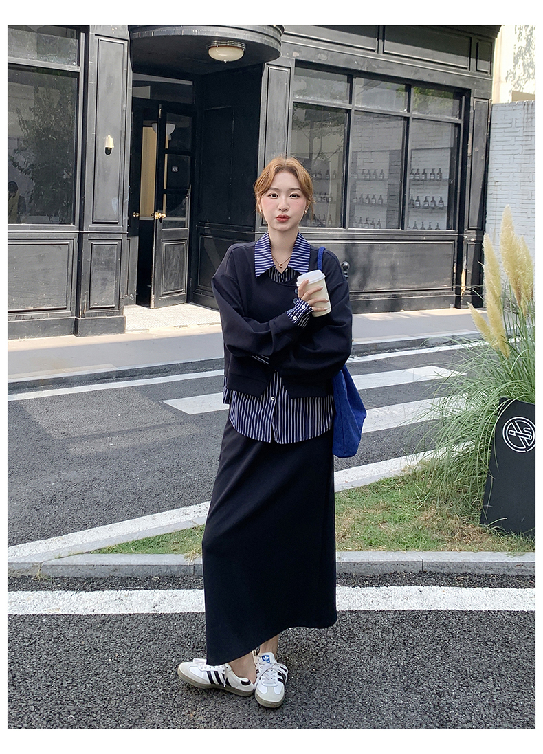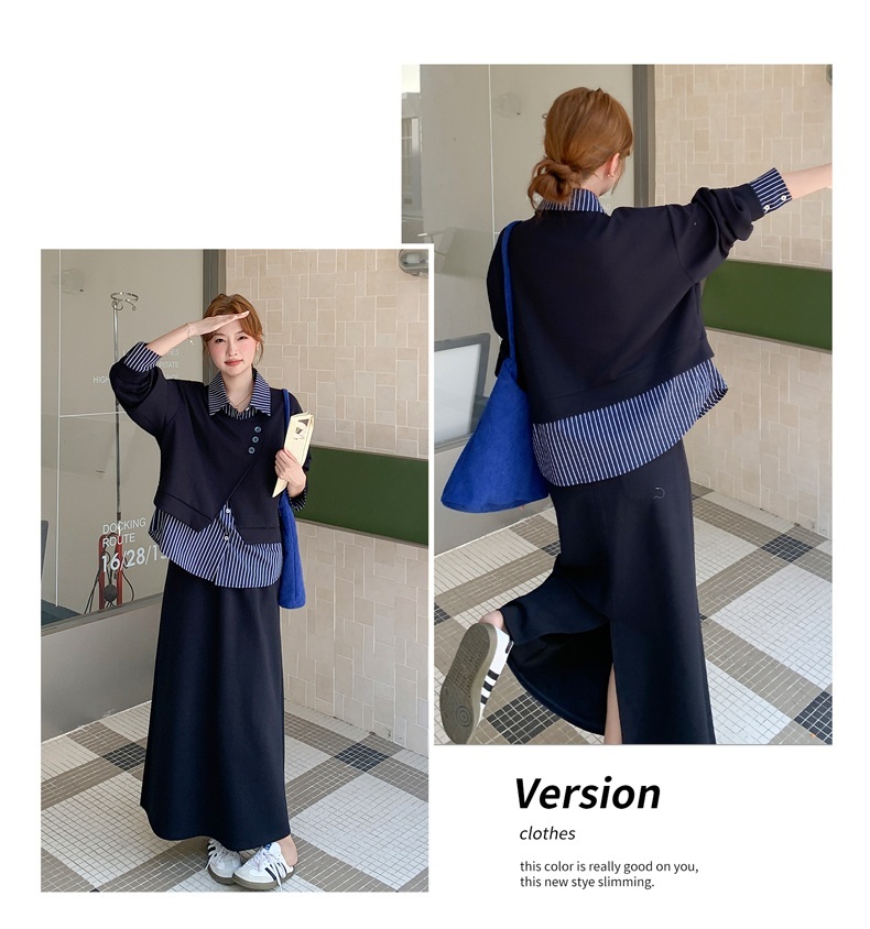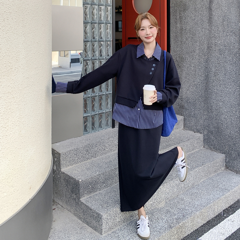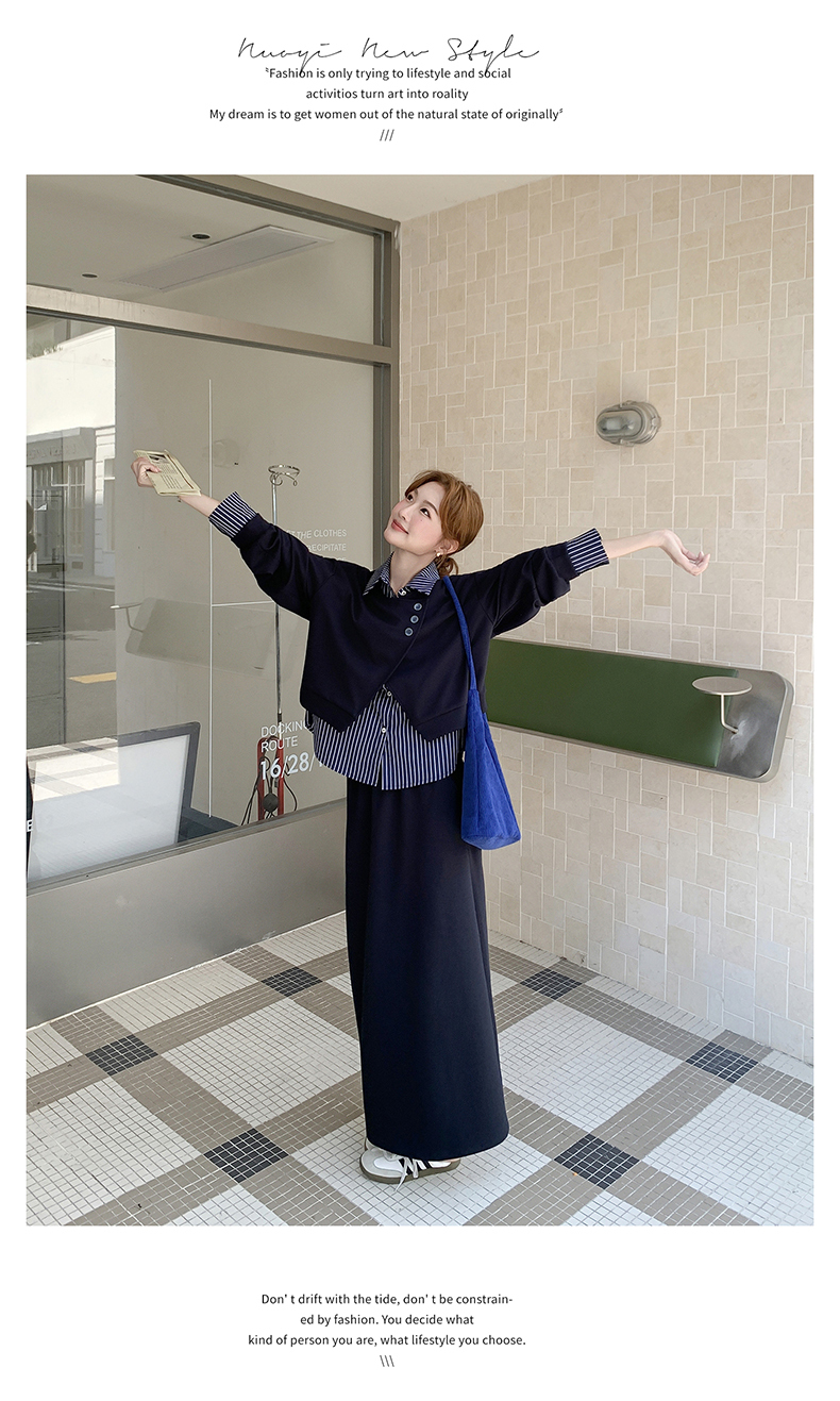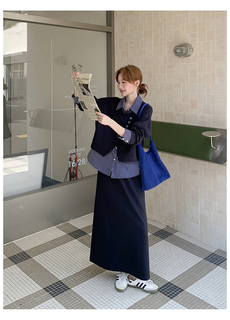 獨家訂製│2件式 條紋拼接假兩件上衣+A字裙(11A1613)