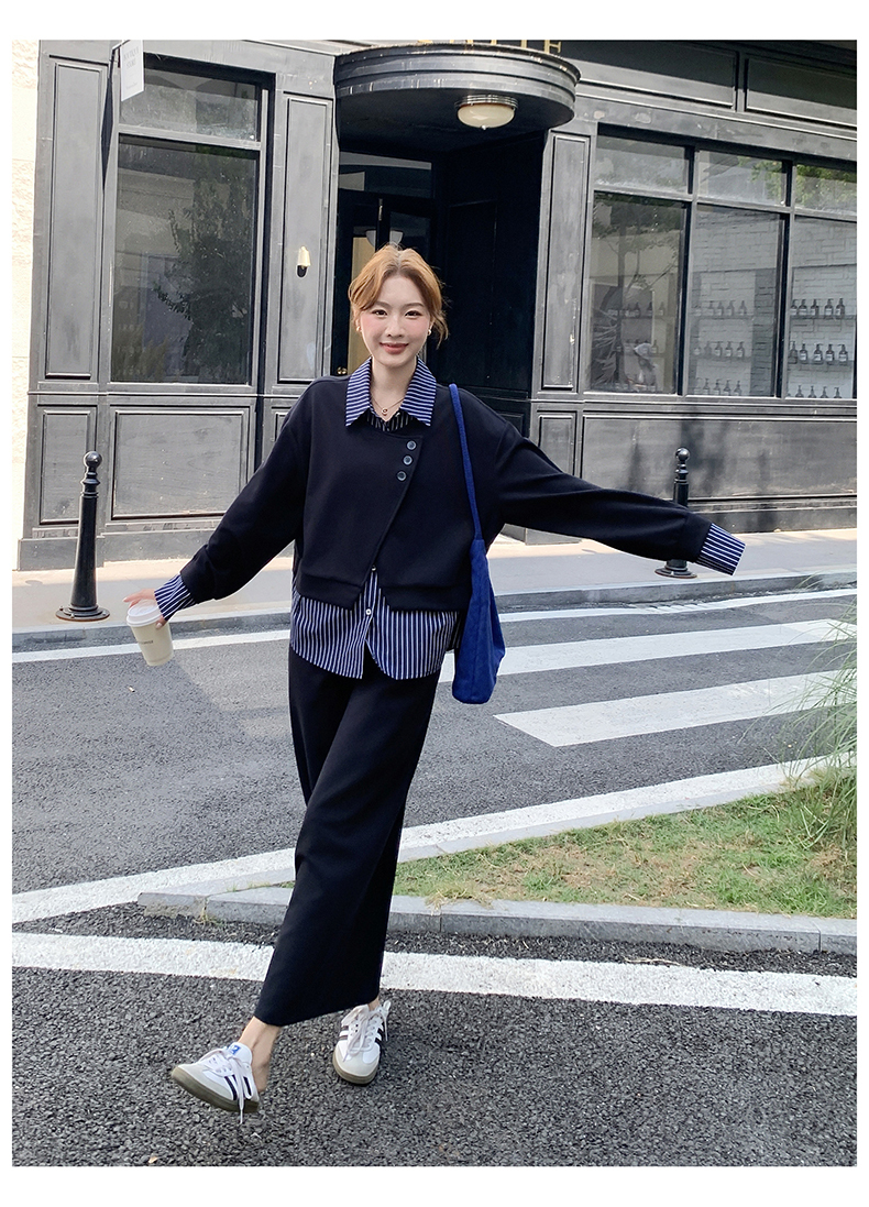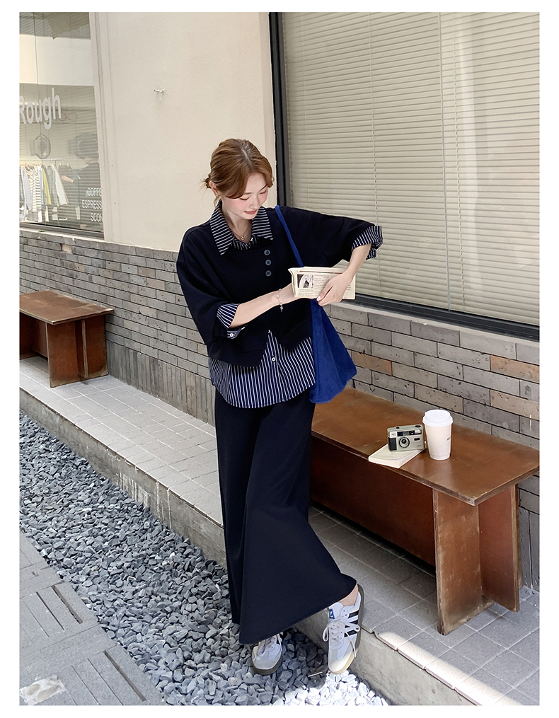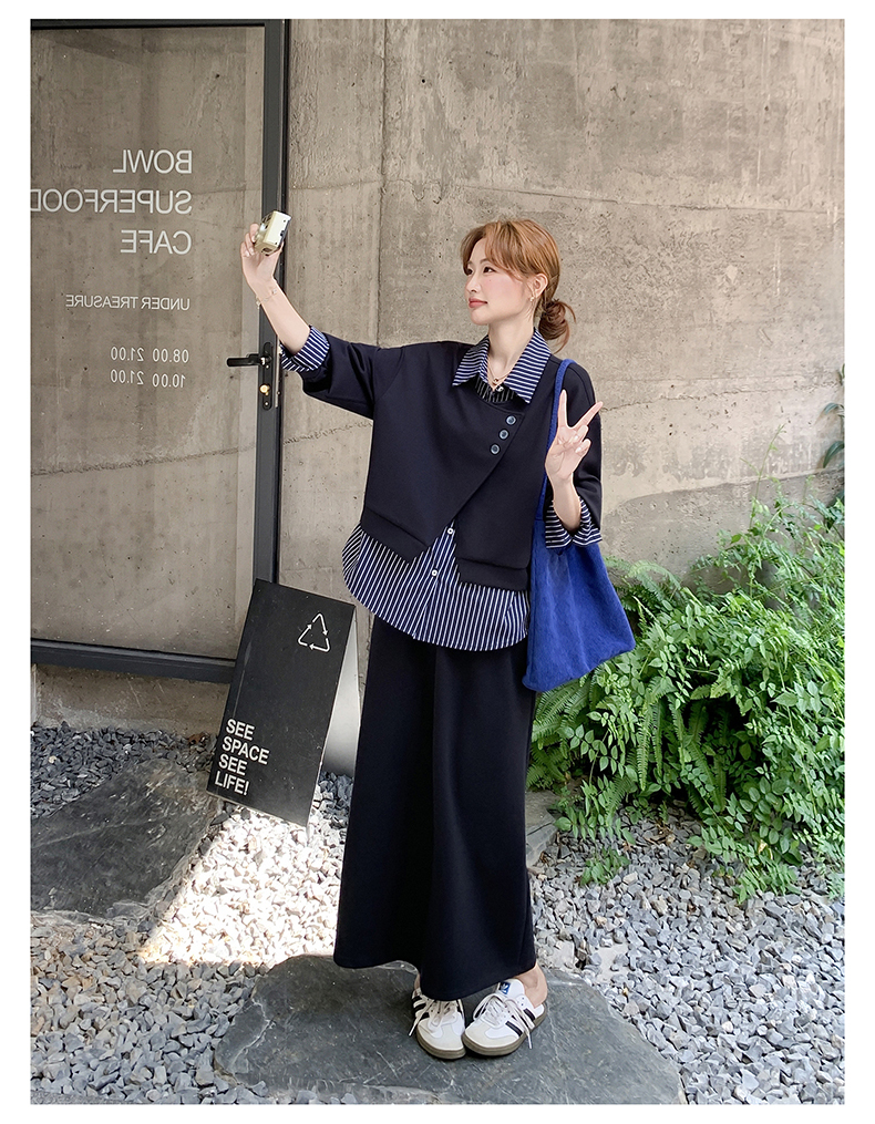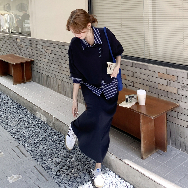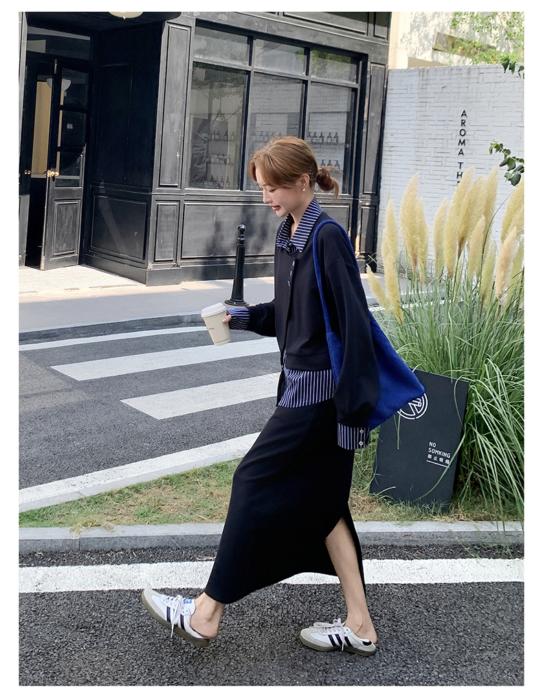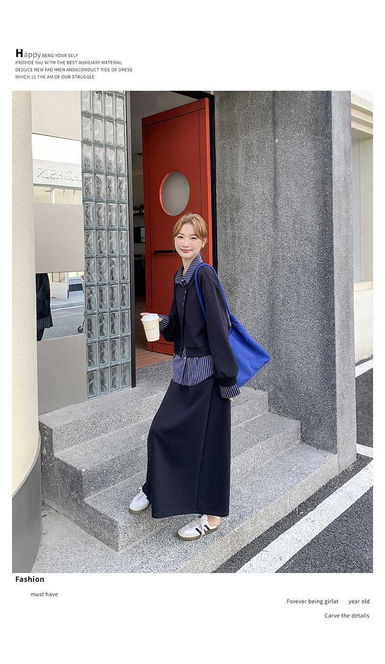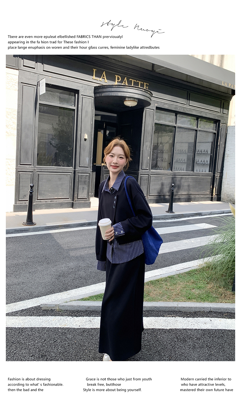 獨家訂製│2件式 條紋拼接假兩件上衣+A字裙(11A1613)