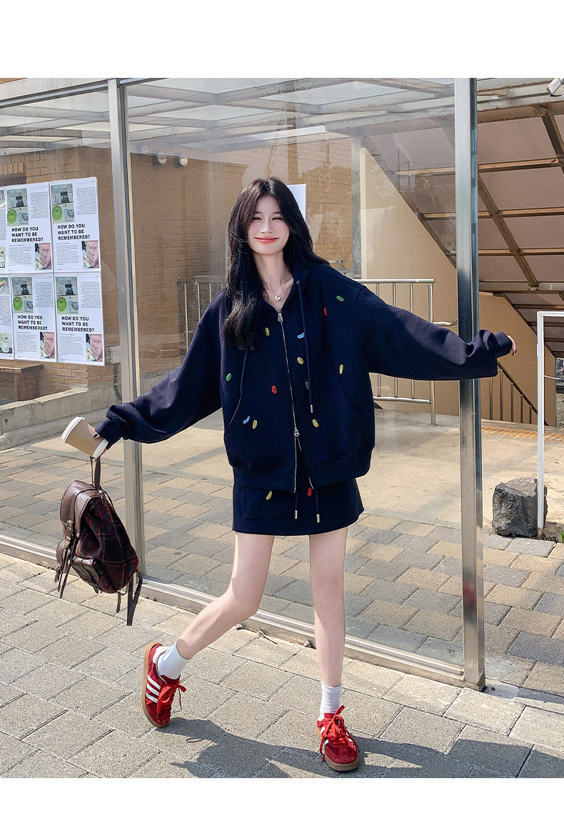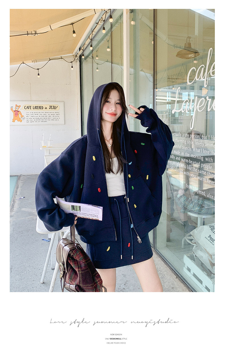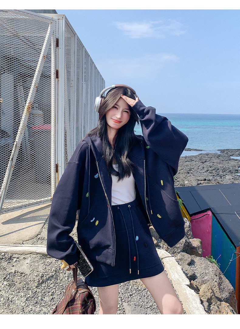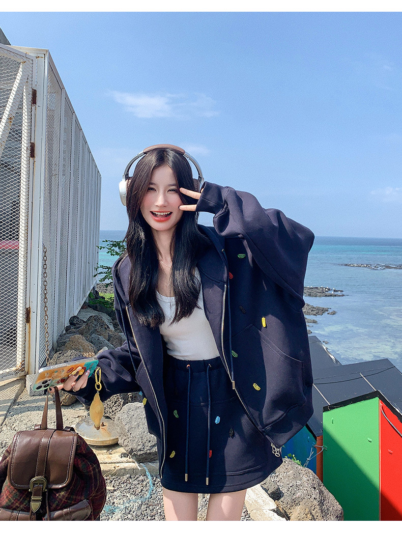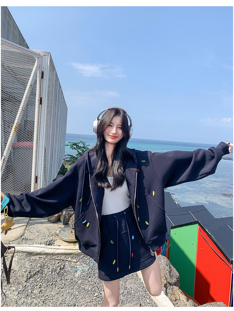 獨家訂製│2件式 繽紛編織帶造型連帽外套+A字裙(11A1629)