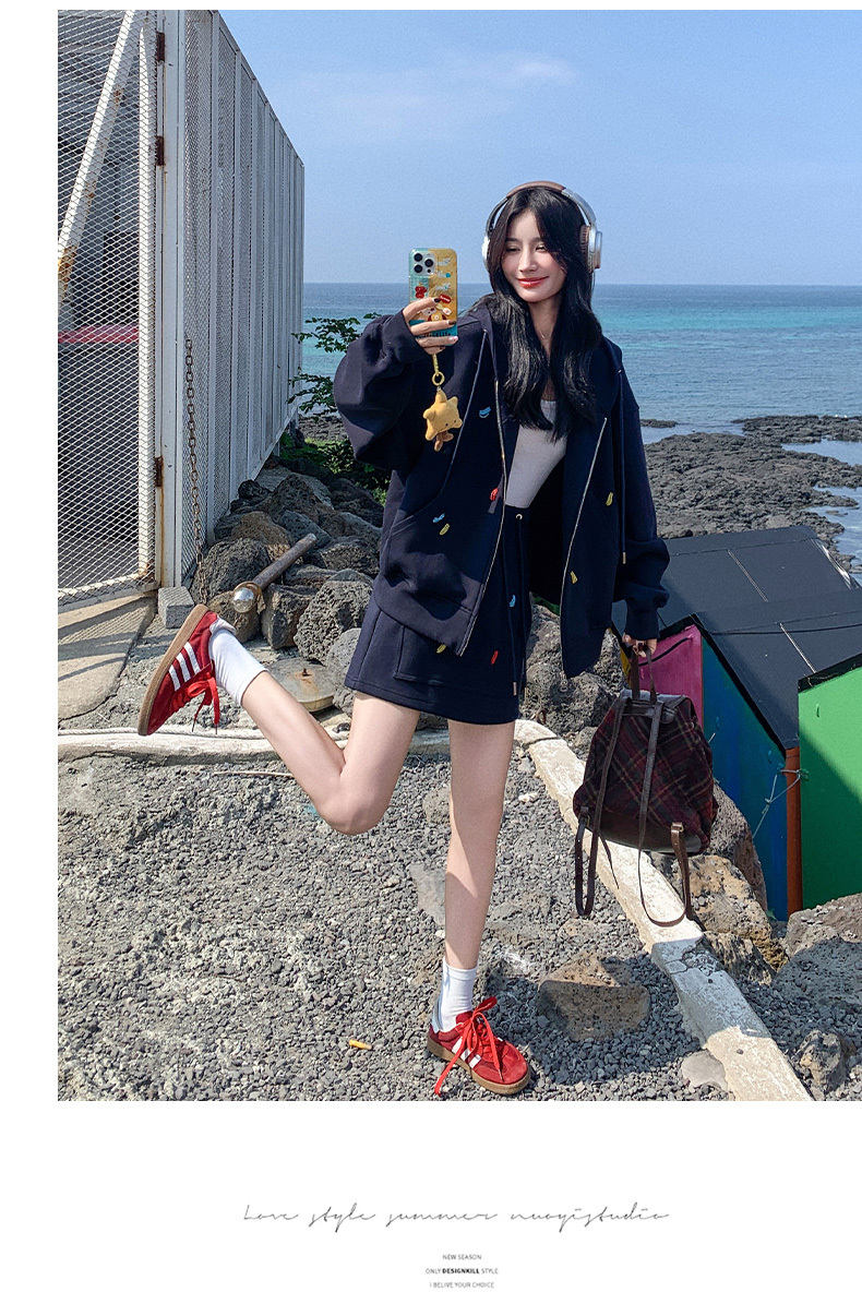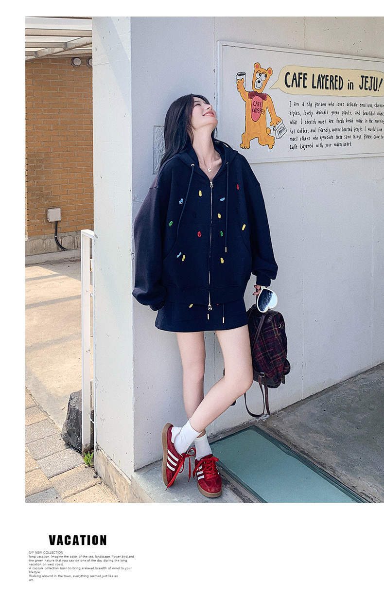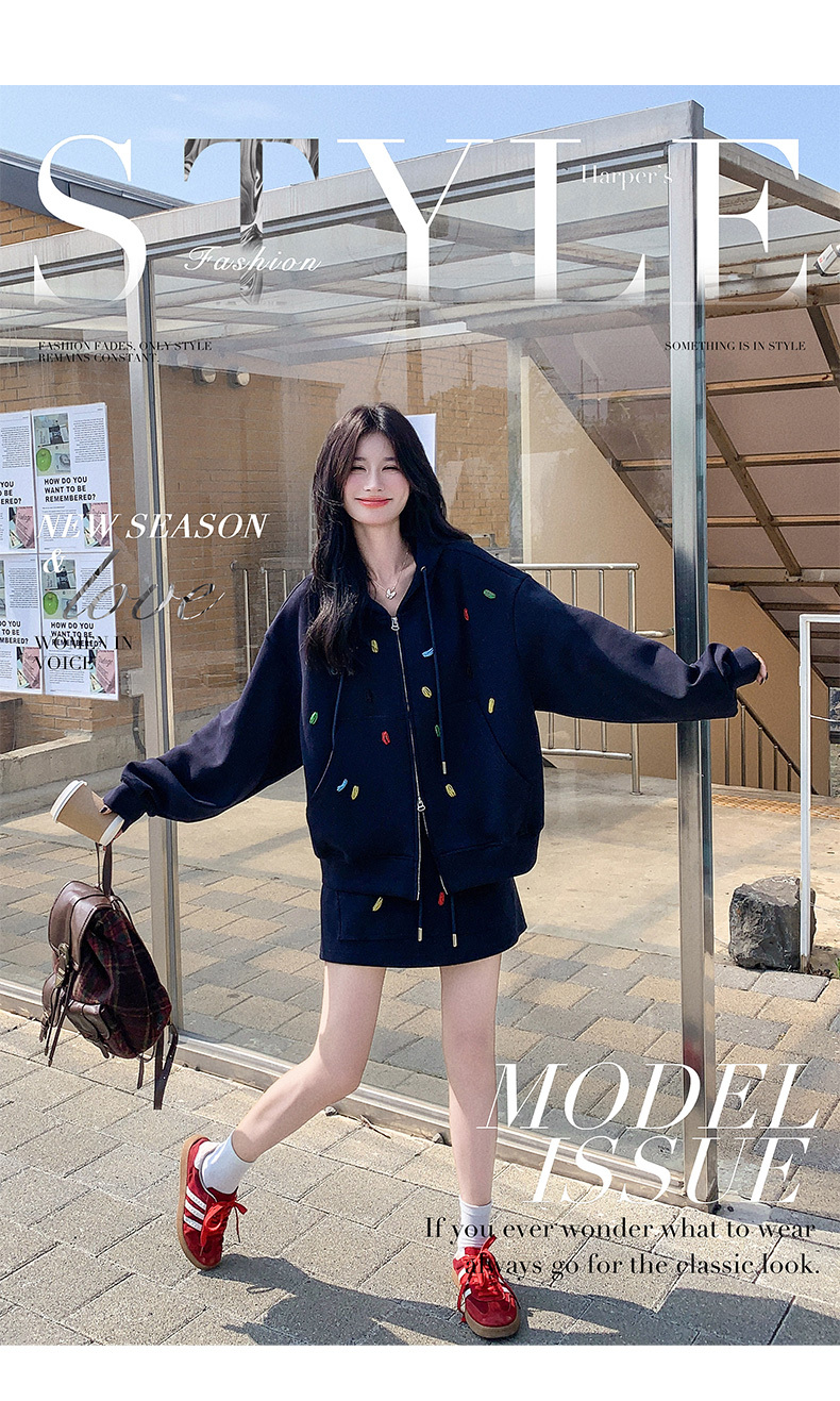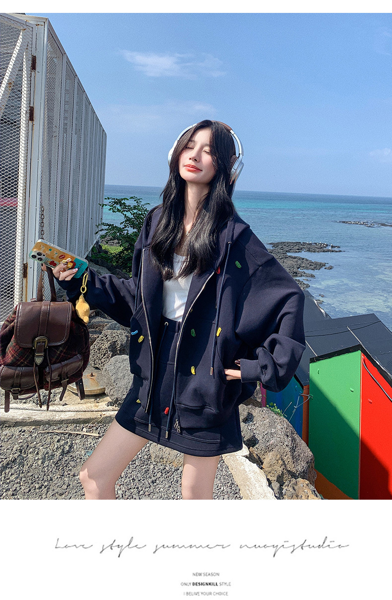 獨家訂製│2件式 繽紛編織帶造型連帽外套+A字裙(11A1629)
