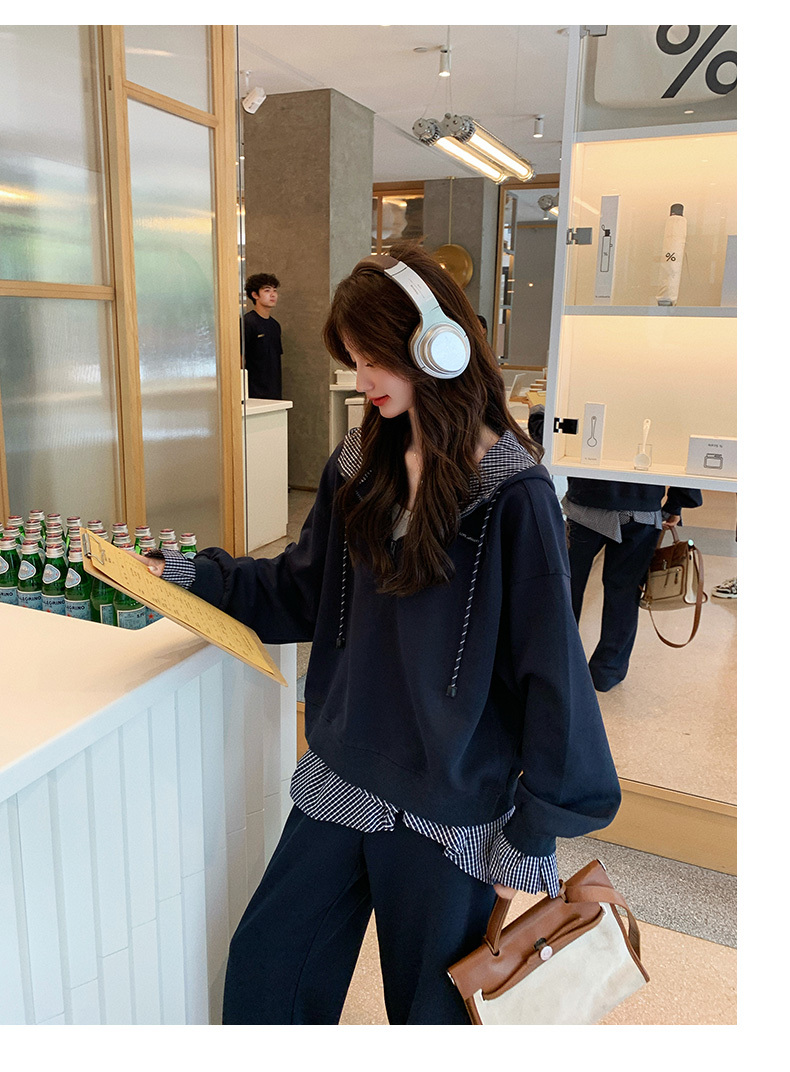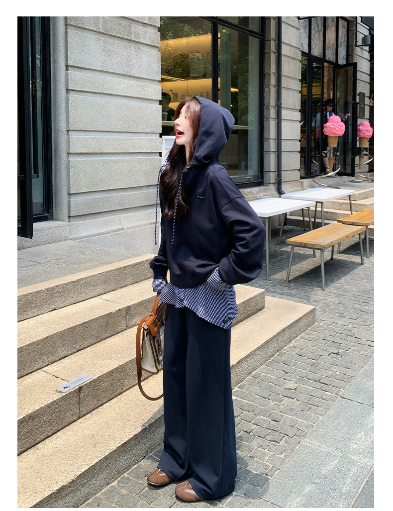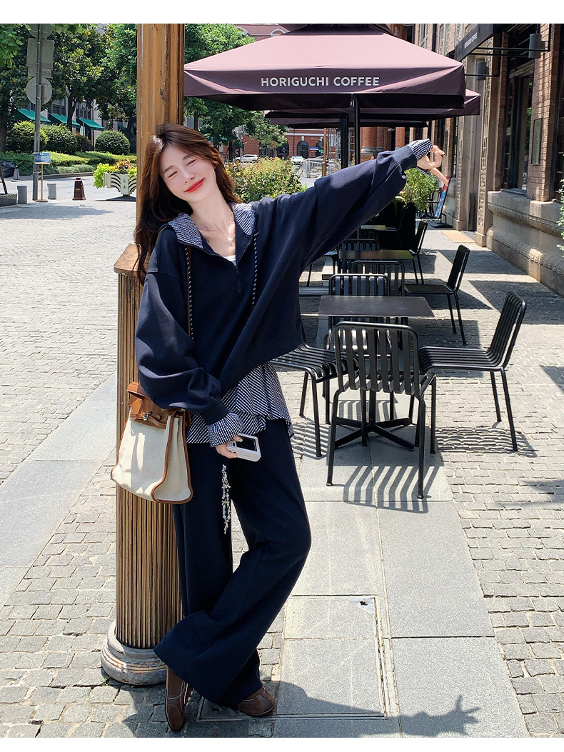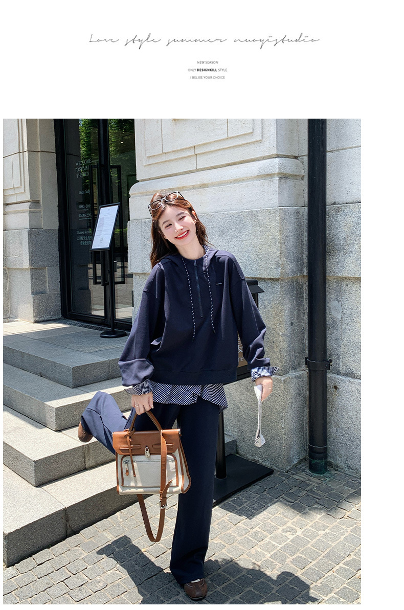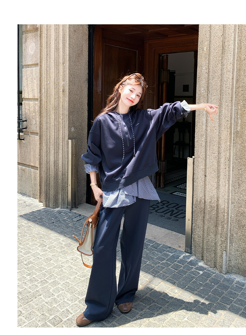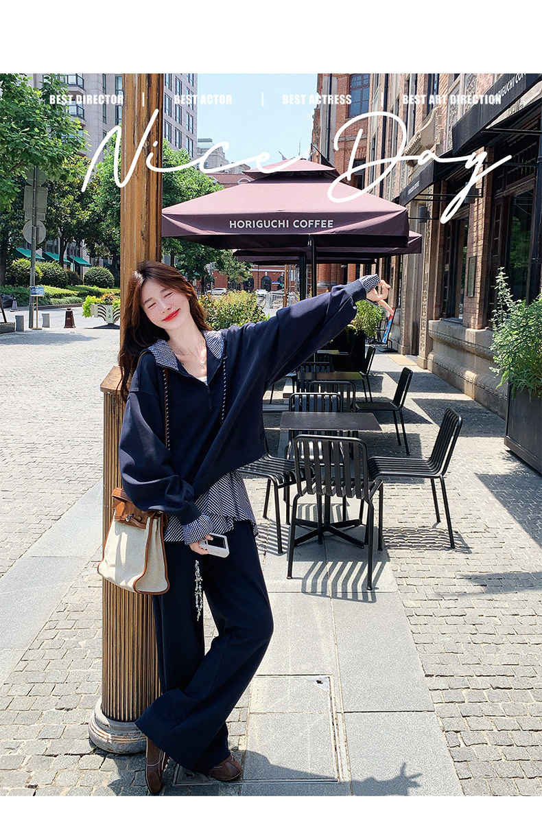 獨家訂製│2件式 撞色條紋連帽上衣+條紋拼接造型休閒褲(11A1630)