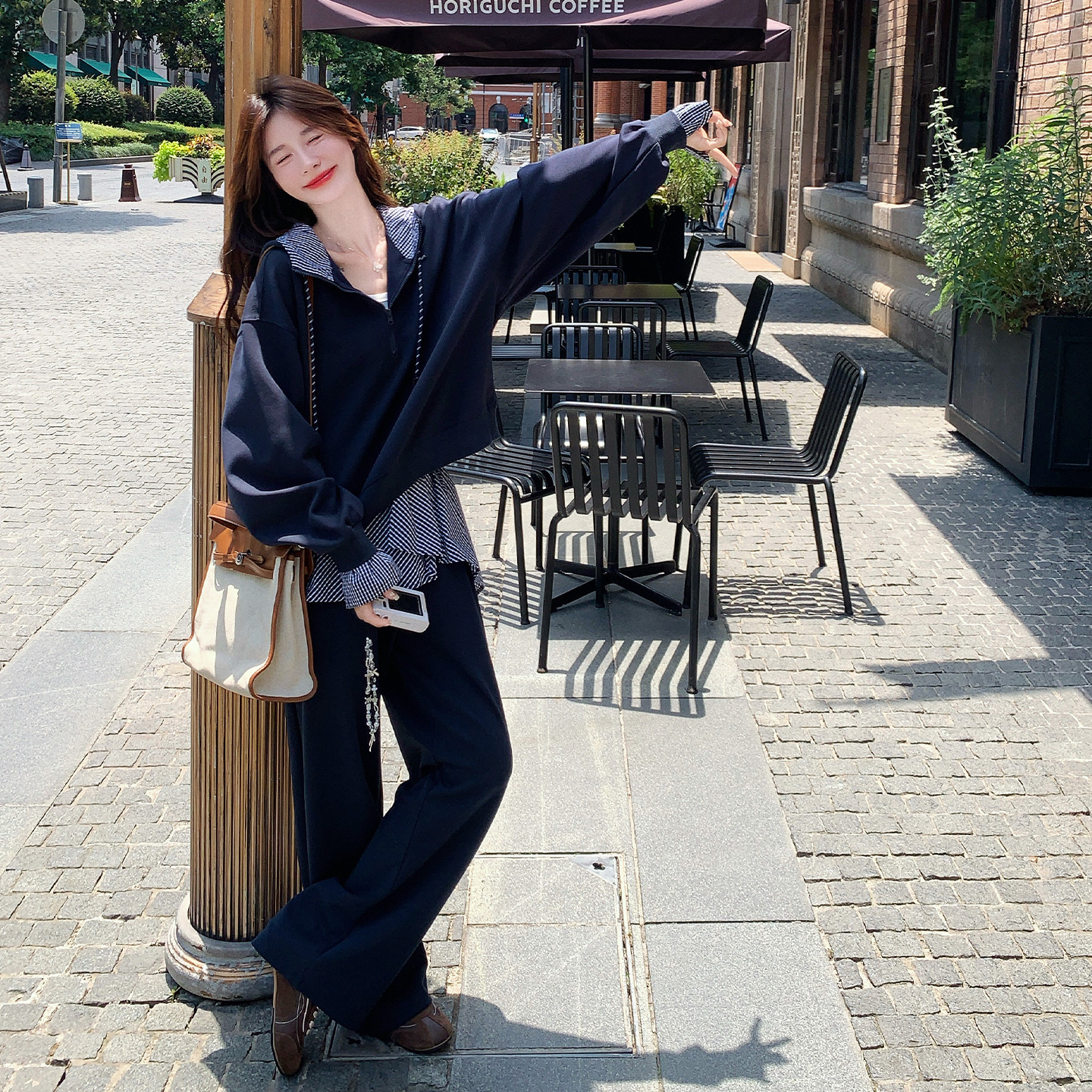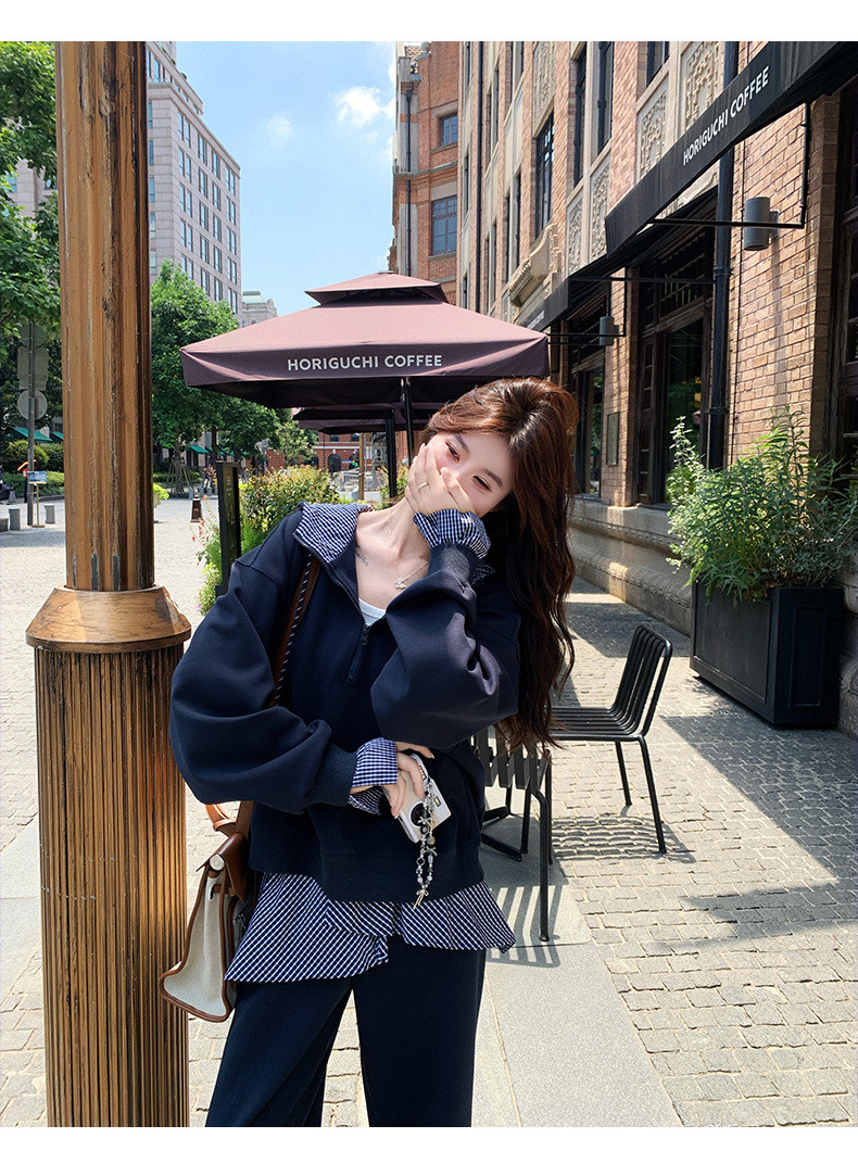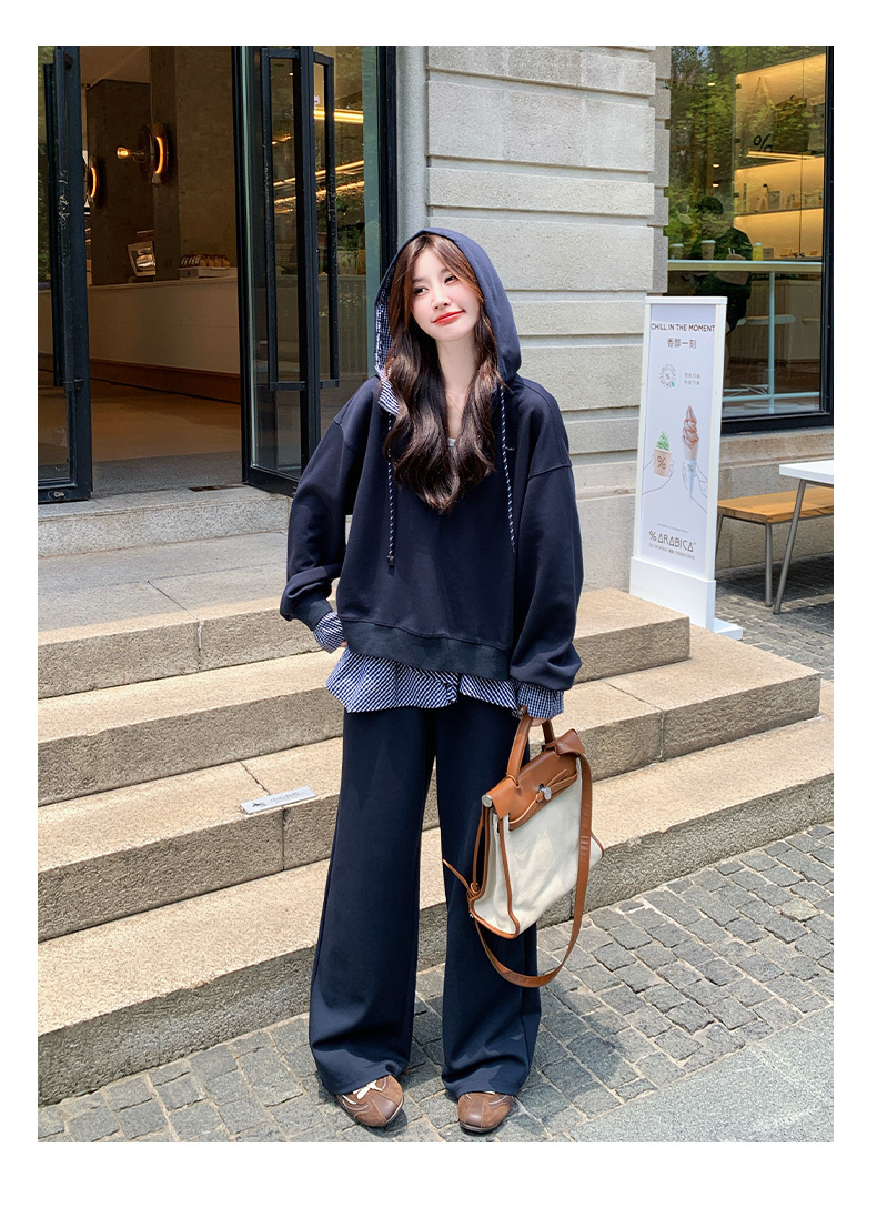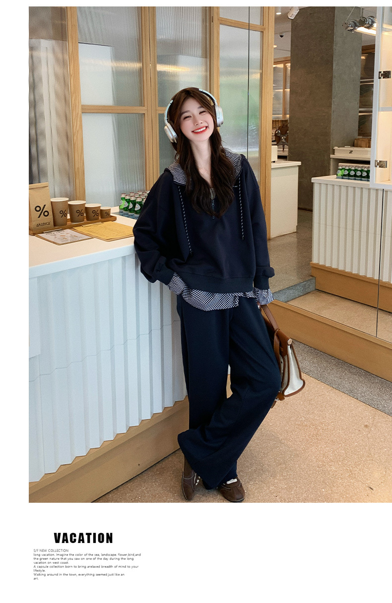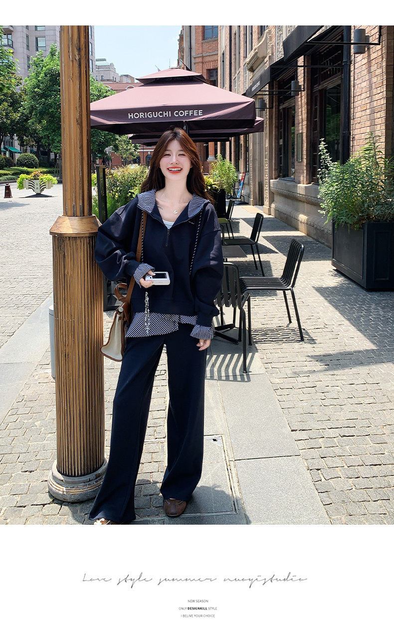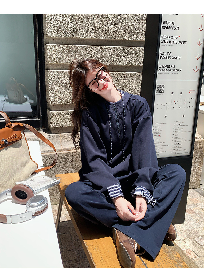 獨家訂製│2件式 撞色條紋連帽上衣+條紋拼接造型休閒褲(11A1630)