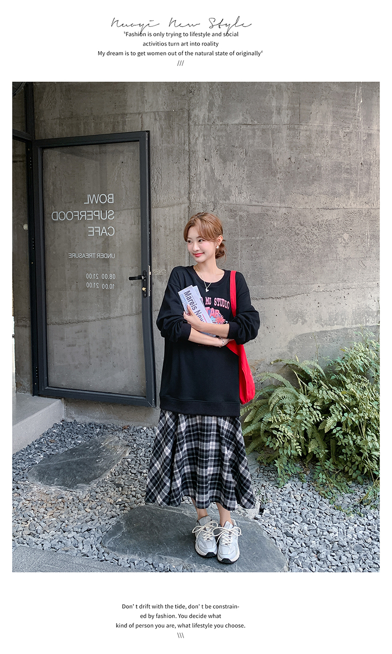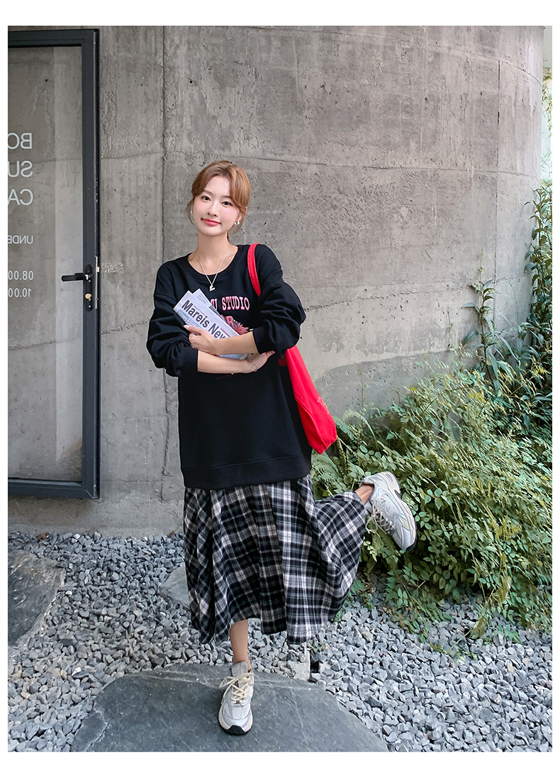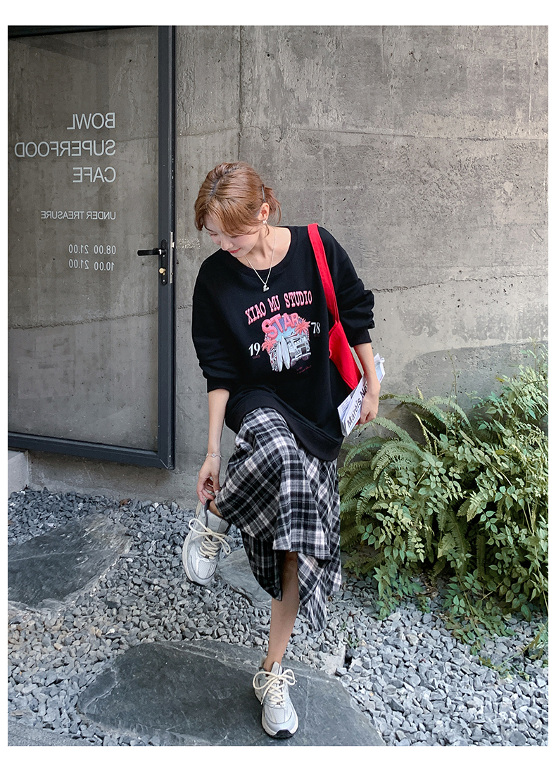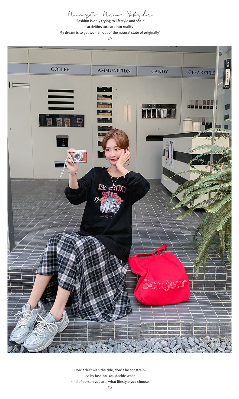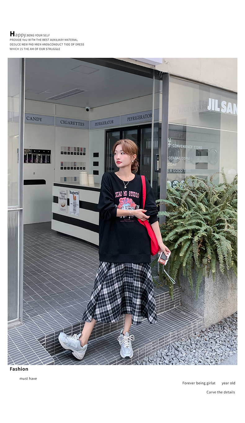 獨家訂製│假2件洋裝 休閒感格紋裙襬拼接洋裝(11A1790)
