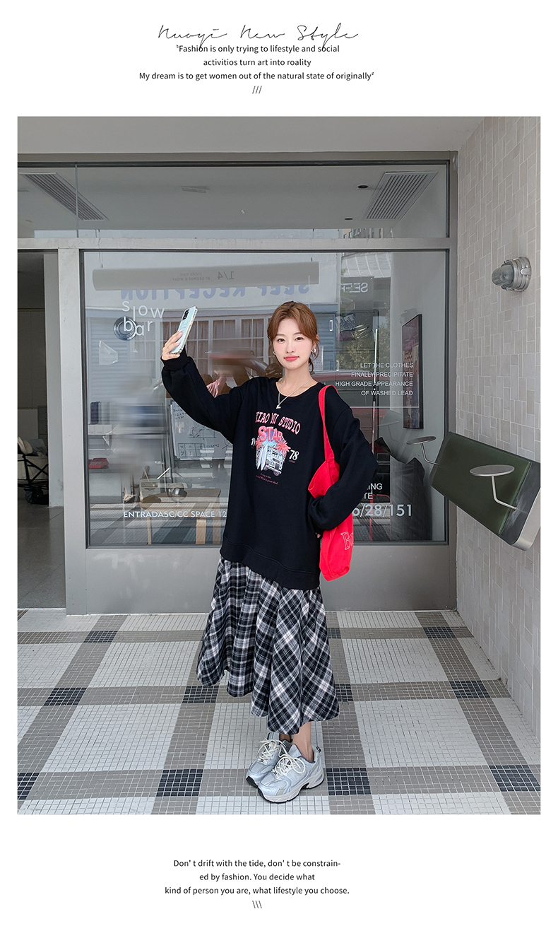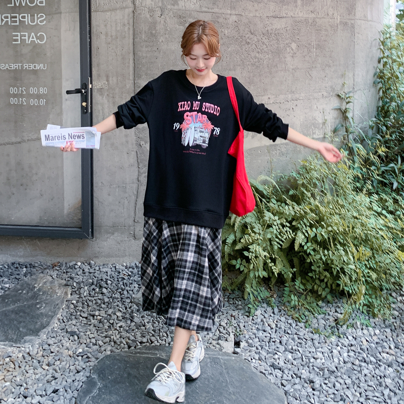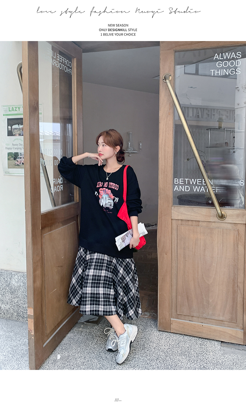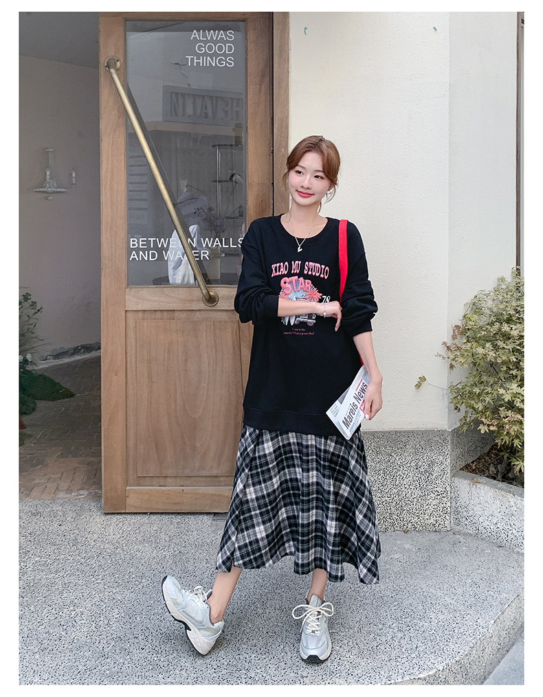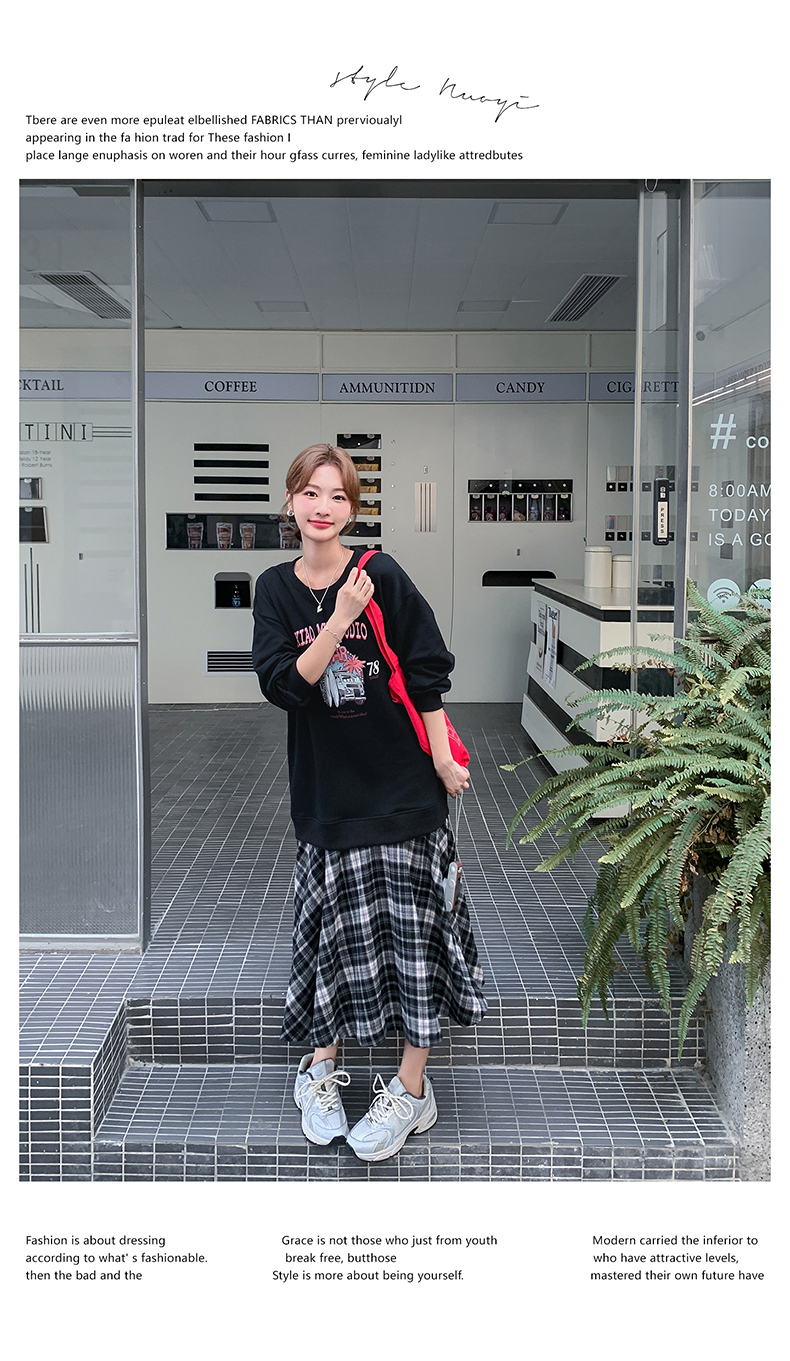 獨家訂製│假2件洋裝 休閒感格紋裙襬拼接洋裝(11A1790)